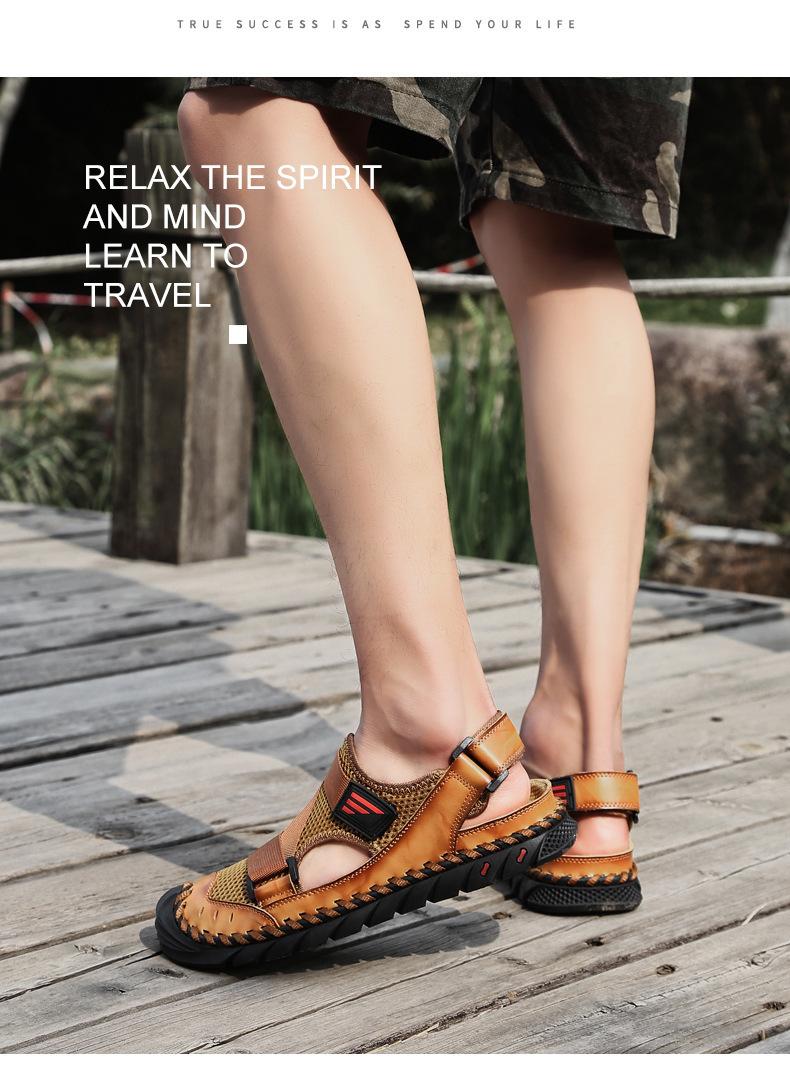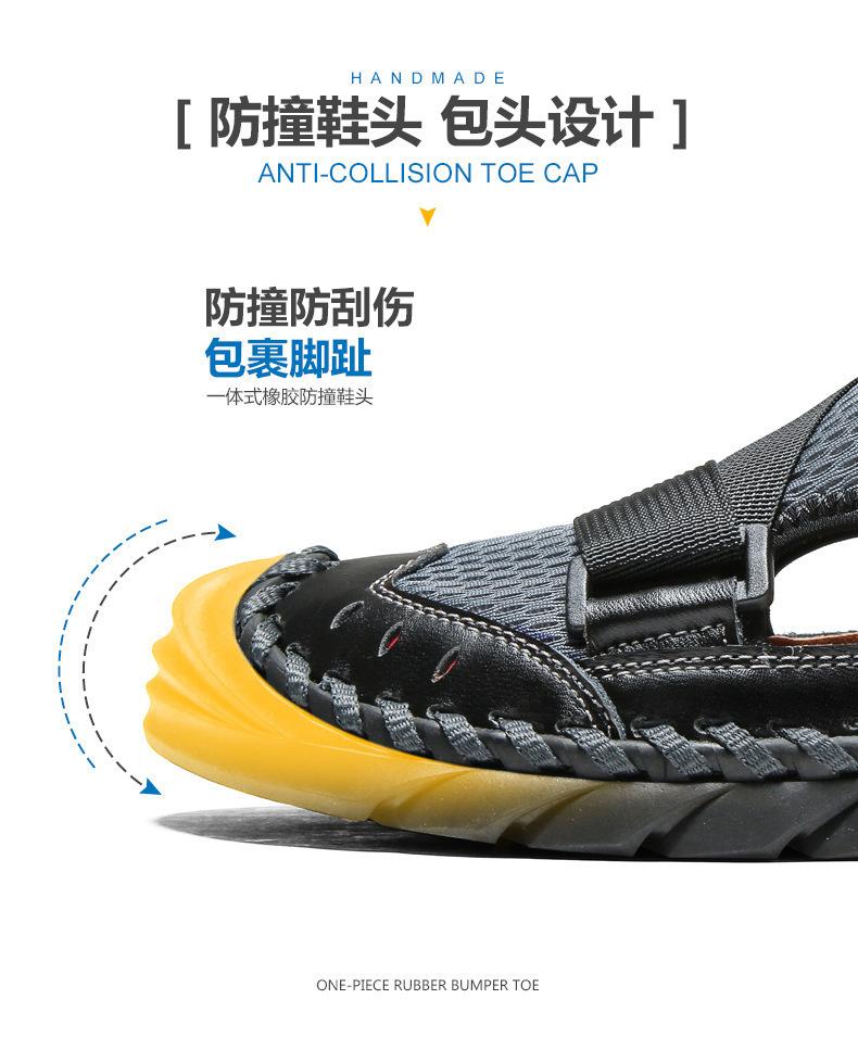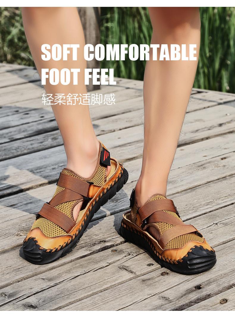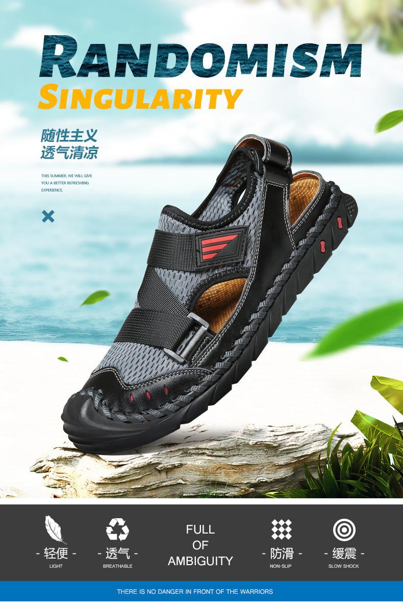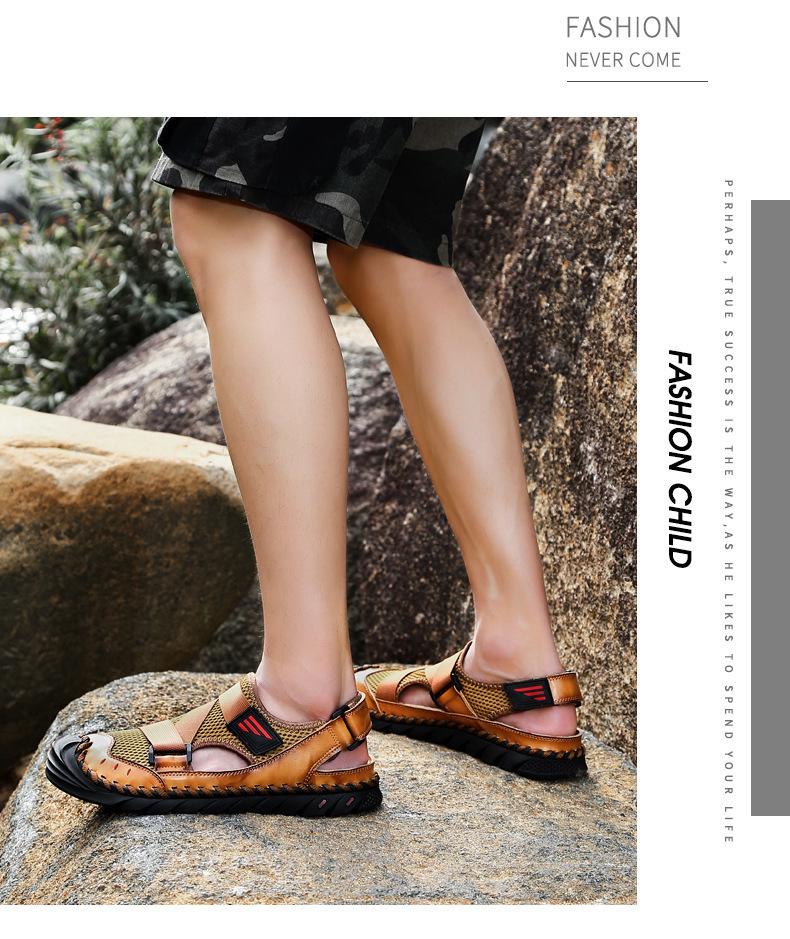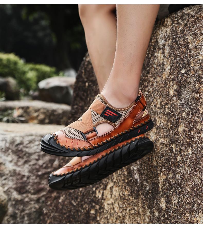 Sandalias de playa para hombre con punta cerrada y suela suave, sin cordones, de cuero, con costuras, talla grande, 2021