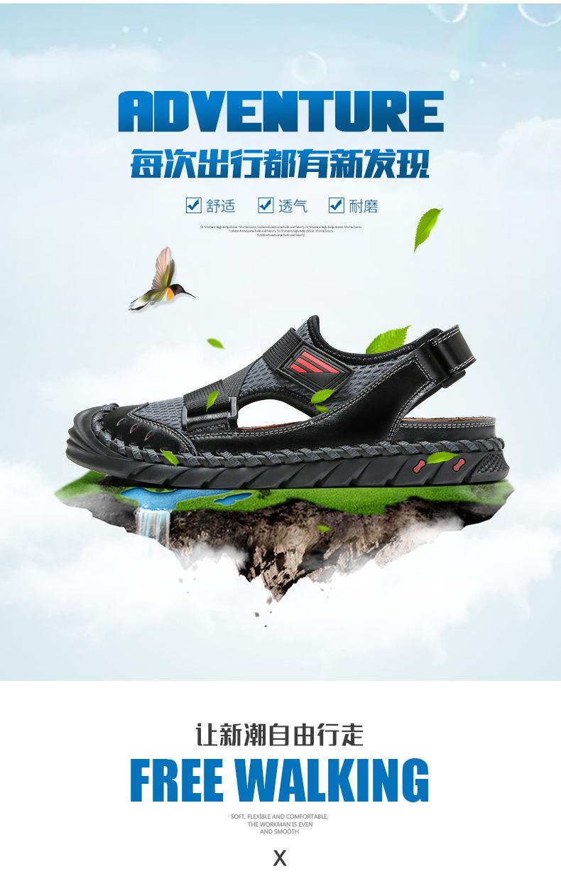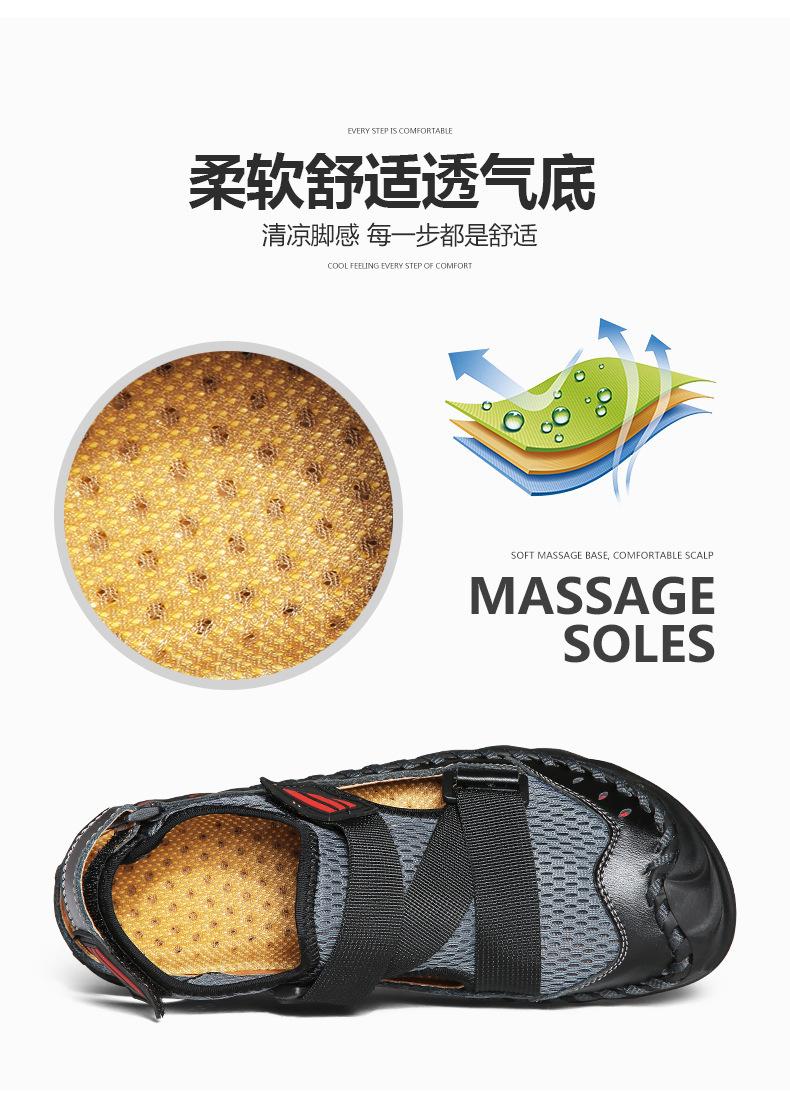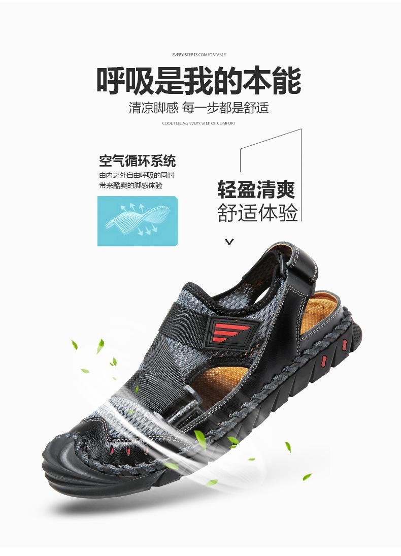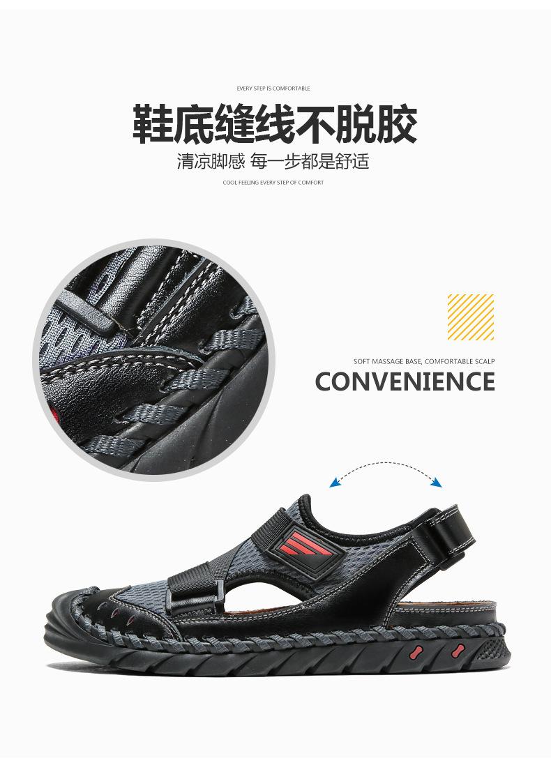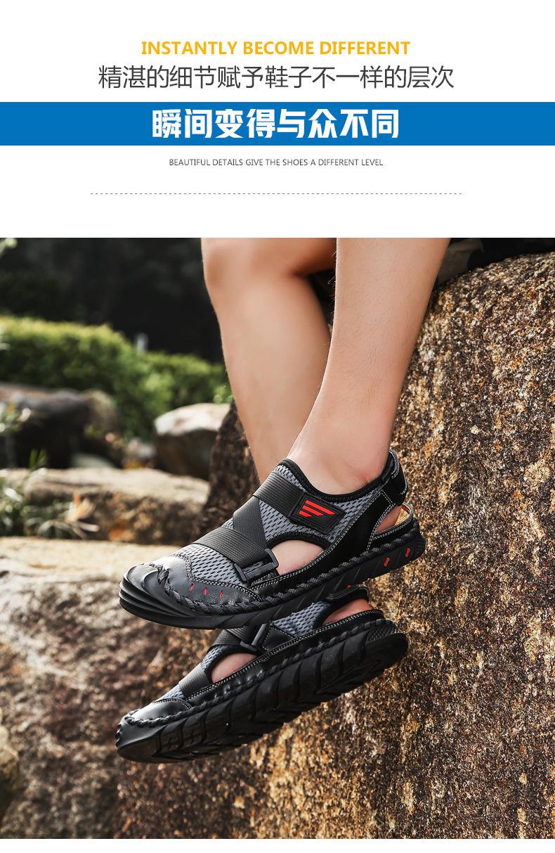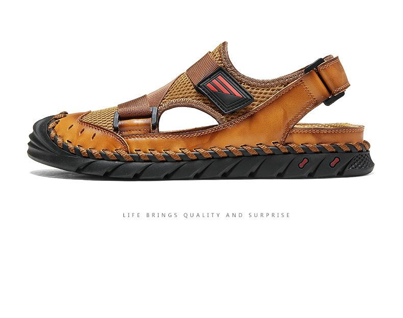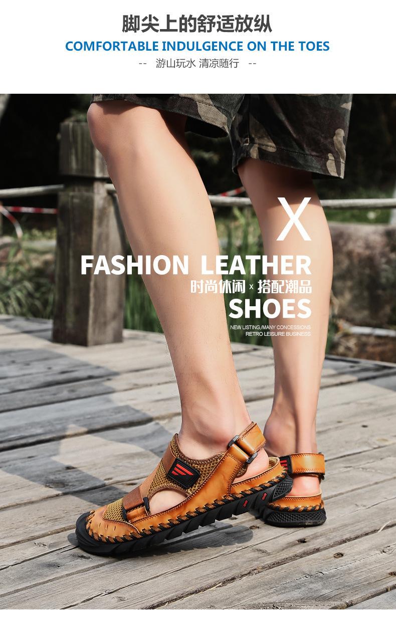 Sandalias de playa para hombre con punta cerrada y suela suave, sin cordones, de cuero, con costuras, talla grande, 2021