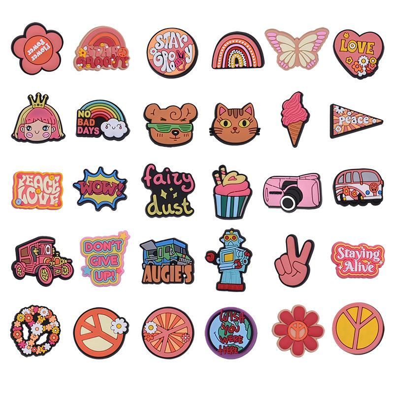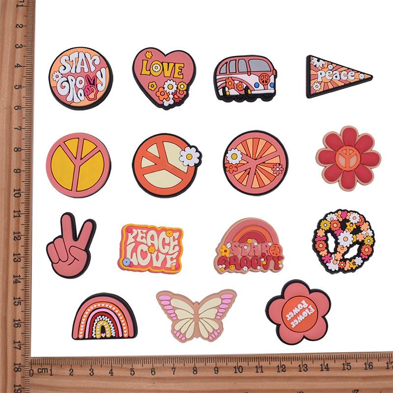 Zapatos de goma suave de PVC con hebilla decorativa y diseño de amor y paz, con flores, accesorios para zapatos DIY, en stock, venta al por mayor en Amazon.