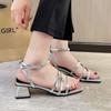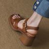 Sandalias retro cruzadas de punta abierta y tacón grueso para mujer 2023 nuevas de tacón medio con una tira y suela gruesa de suela blanda para mujer