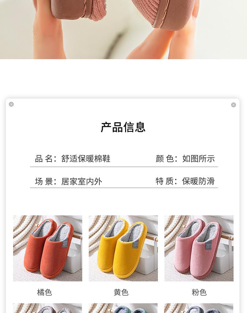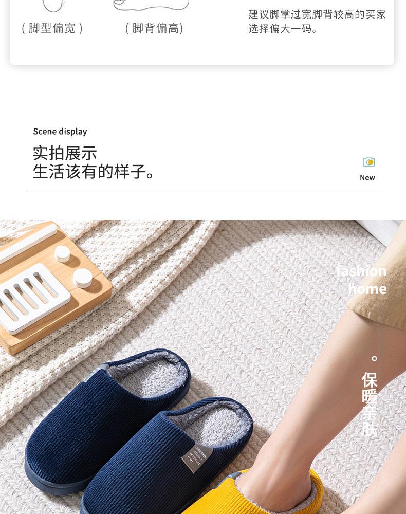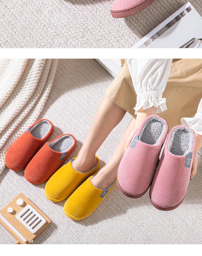Pantuflas de Algodón para Mujer en Otoño e Invierno, Pantuflas de Casa para Pareja, Zapatos de Confinamiento para Interior, Zapatos de Algodón Cálido, Pantuflas de Algodón Felpa Antideslizantes, Simples