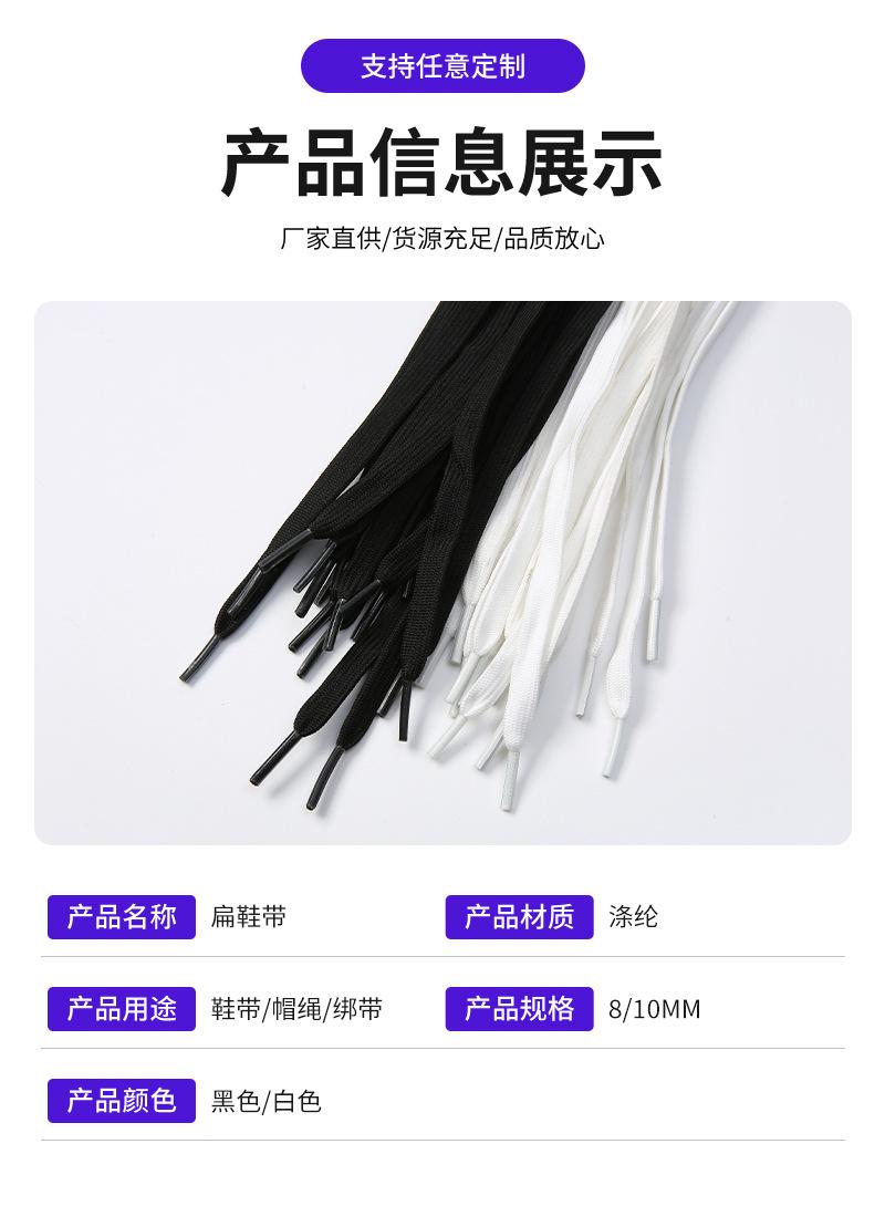 Cuerda Negra Blanca de 8 mm-10 mm Cordón Hueco para Zapatos Cuerda para Sombrero Cordón Plano Cordón Blanco Cordón Plano de Doble Capa