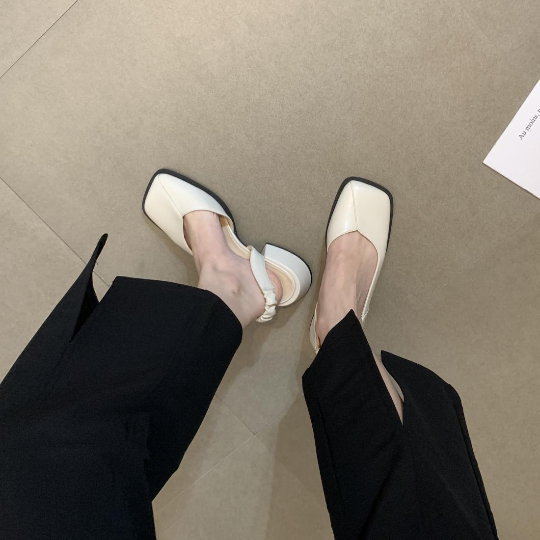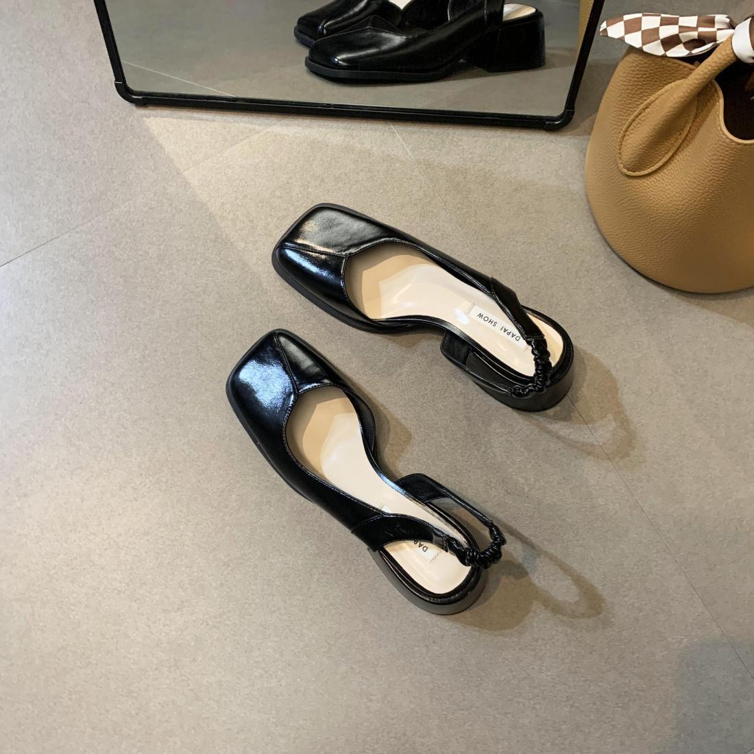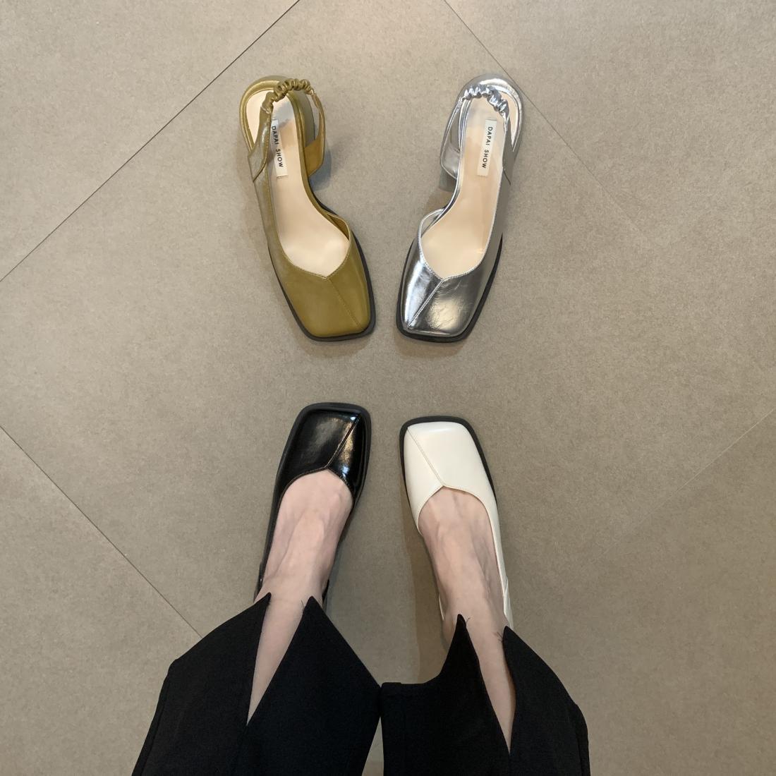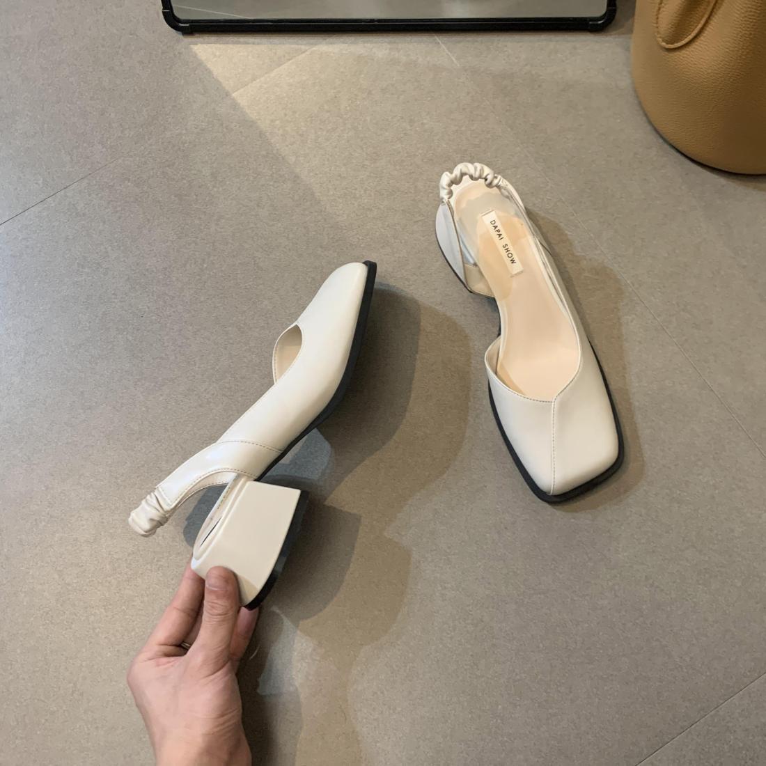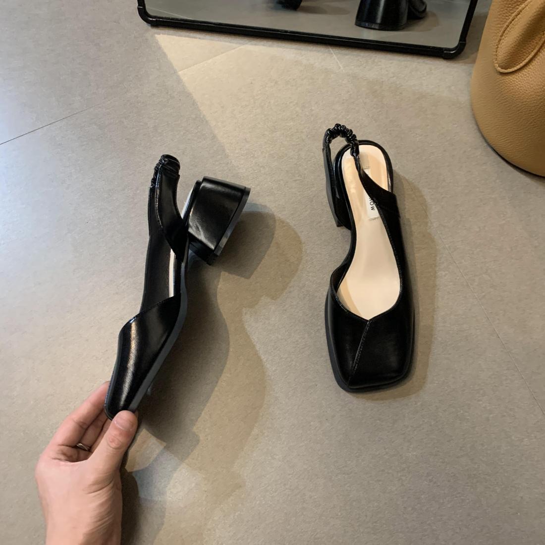 Sandalias Baotou para Mujer, Primavera y Verano 2025 Nuevo Estilo Coreano Moda Retro Tacón Medio Tacón Grueso Estilo Hada Sandalias Francesas de Mujer