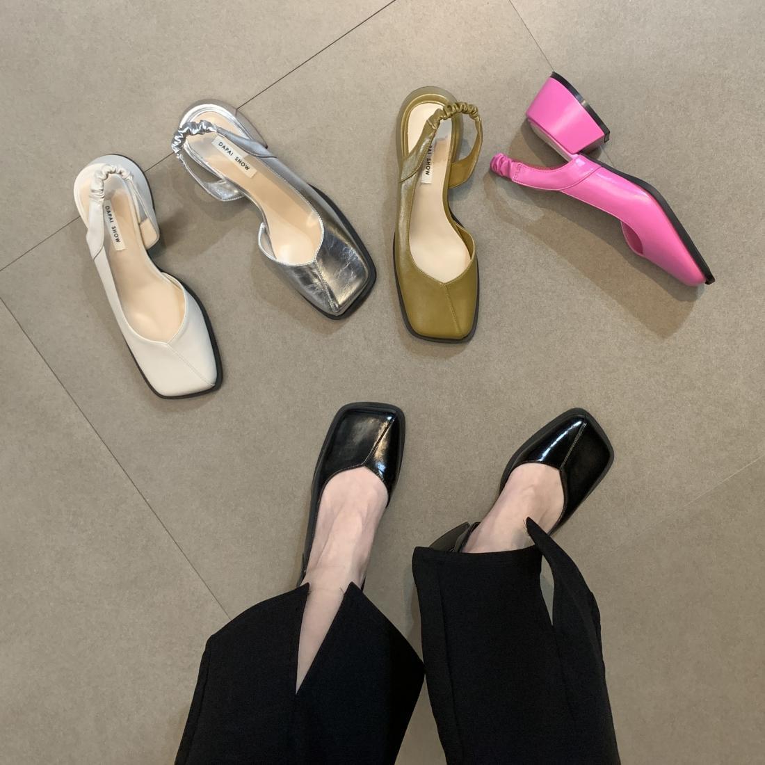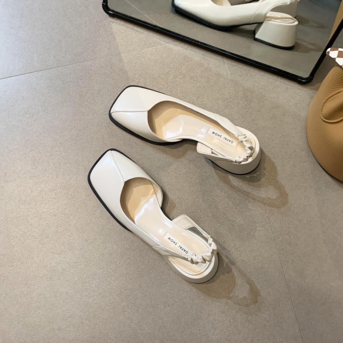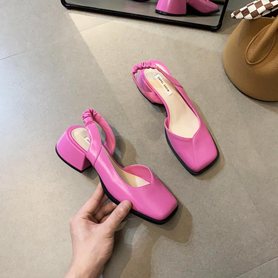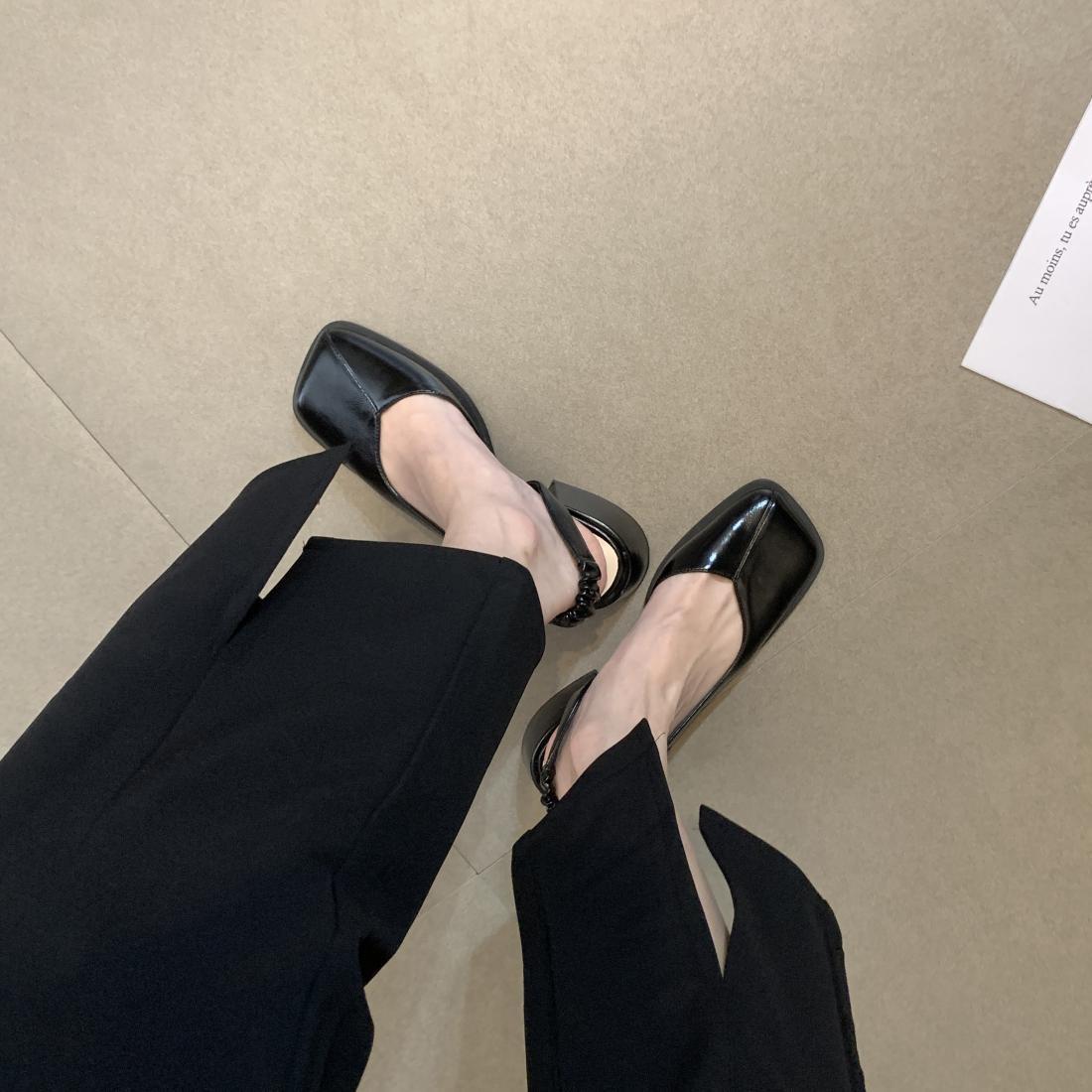 Sandalias Baotou para Mujer, Primavera y Verano 2025 Nuevo Estilo Coreano Moda Retro Tacón Medio Tacón Grueso Estilo Hada Sandalias Francesas de Mujer
