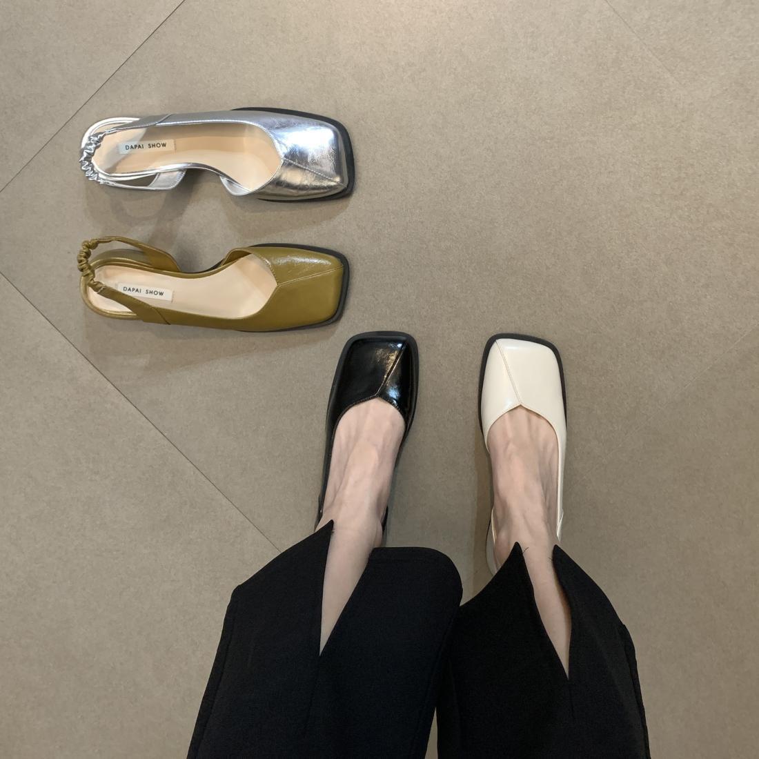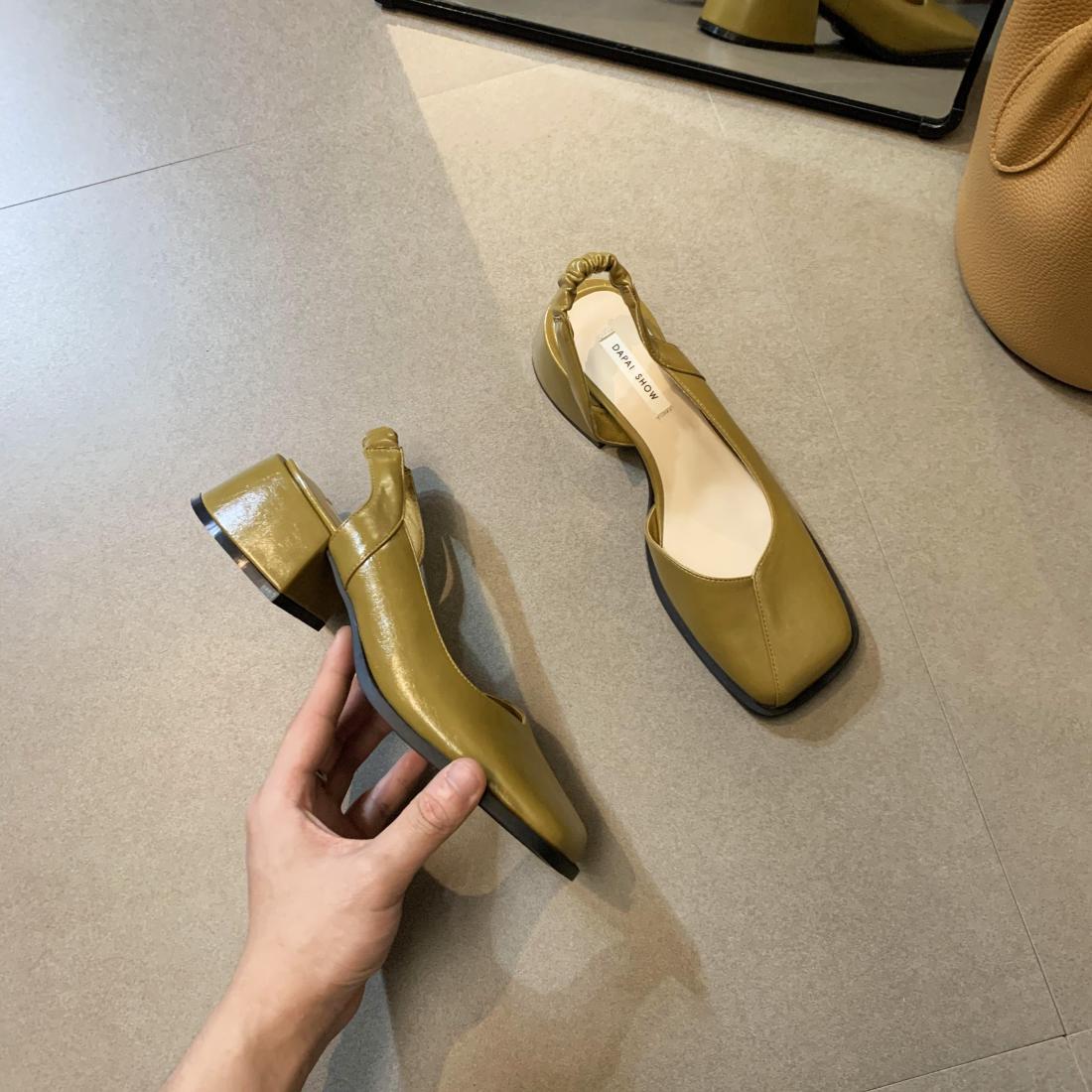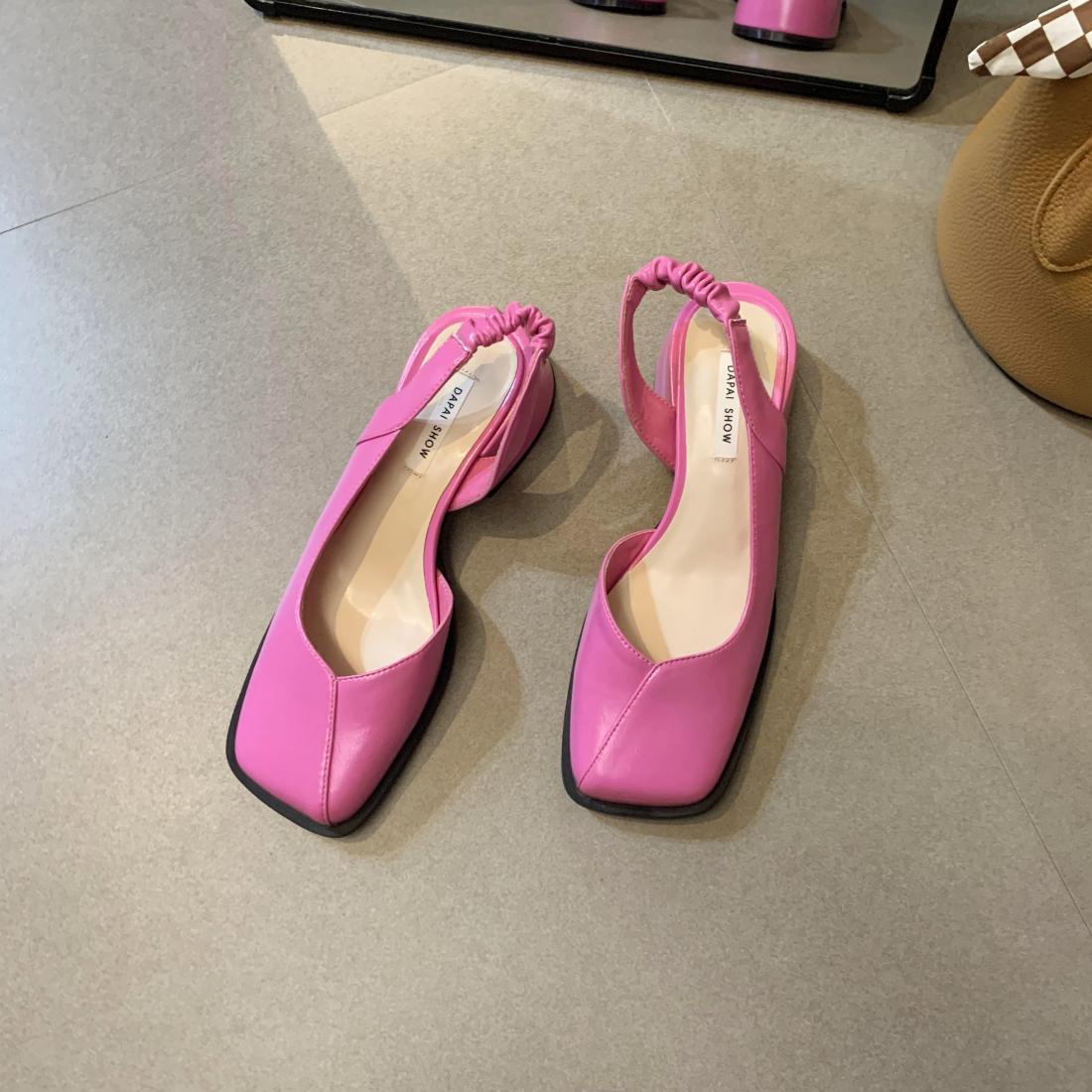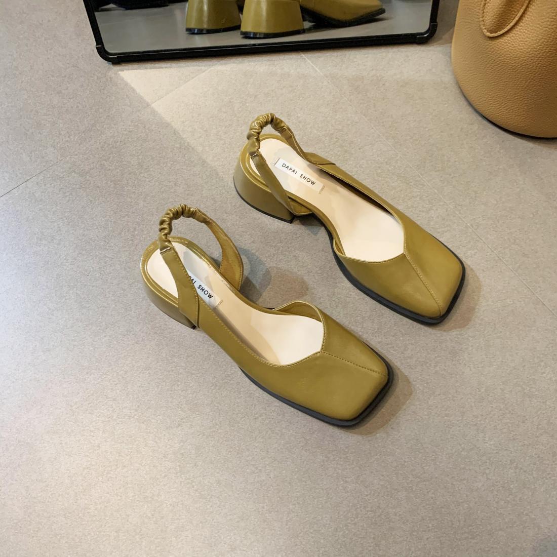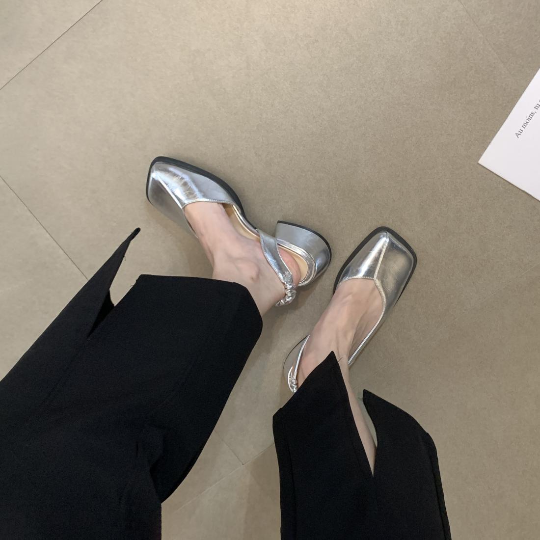 Sandalias Baotou para Mujer, Primavera y Verano 2025 Nuevo Estilo Coreano Moda Retro Tacón Medio Tacón Grueso Estilo Hada Sandalias Francesas de Mujer