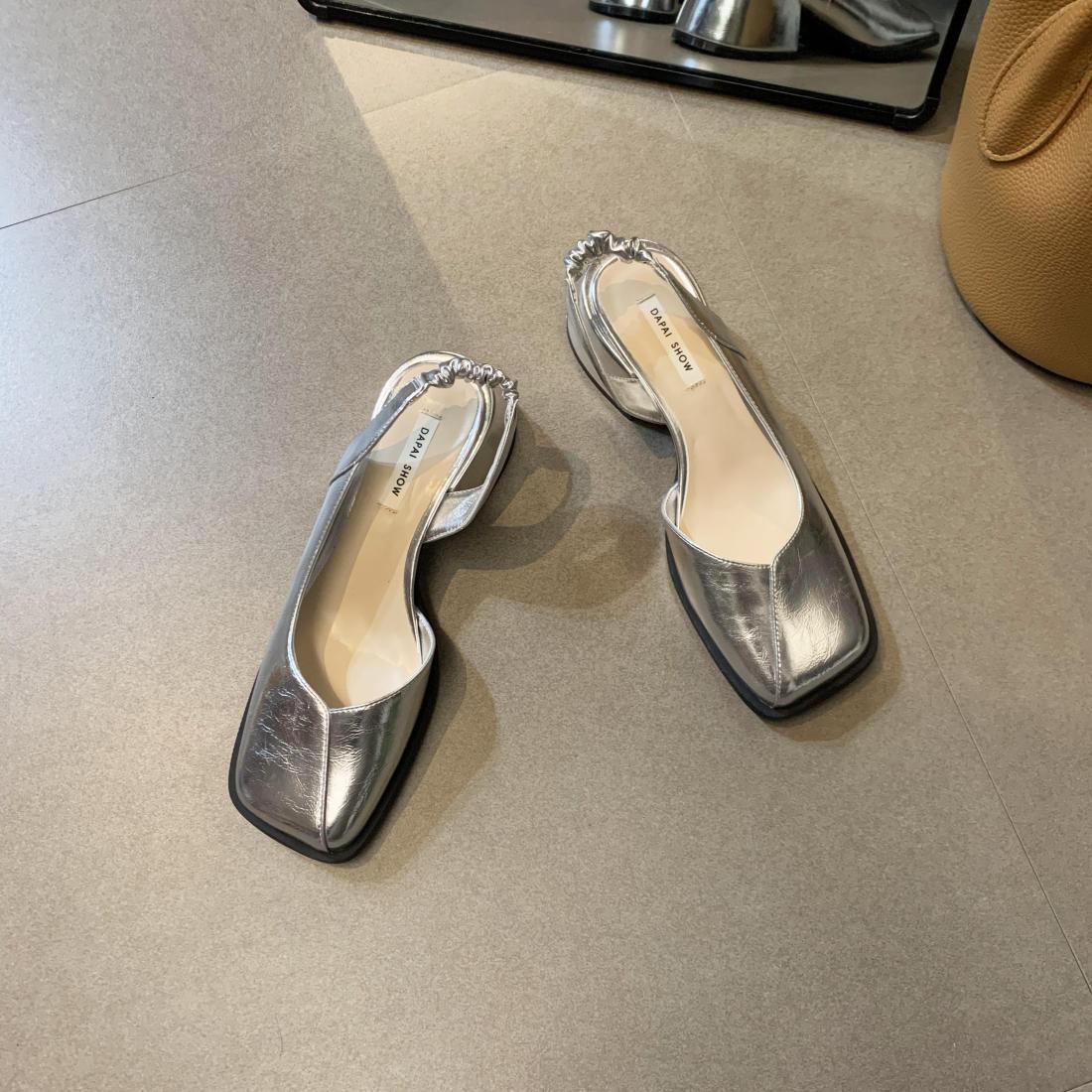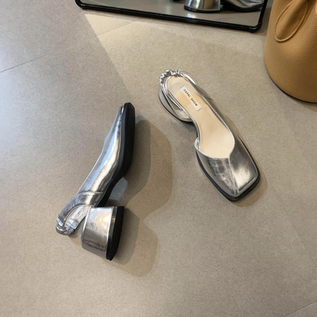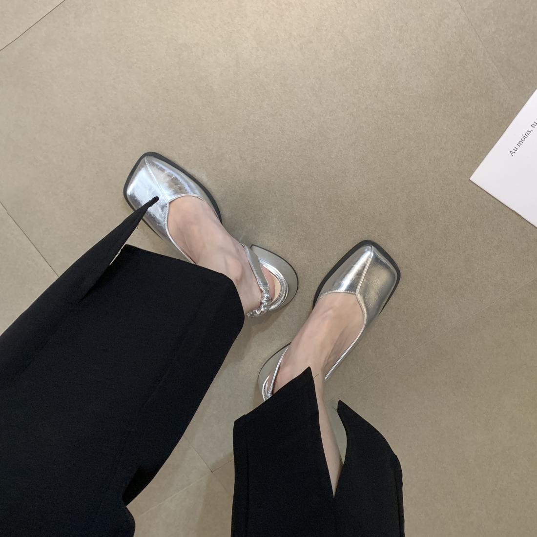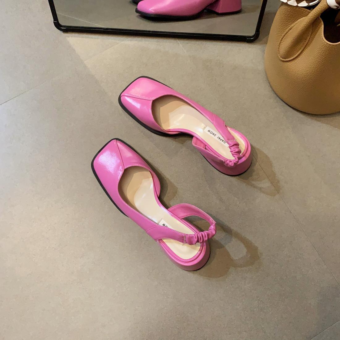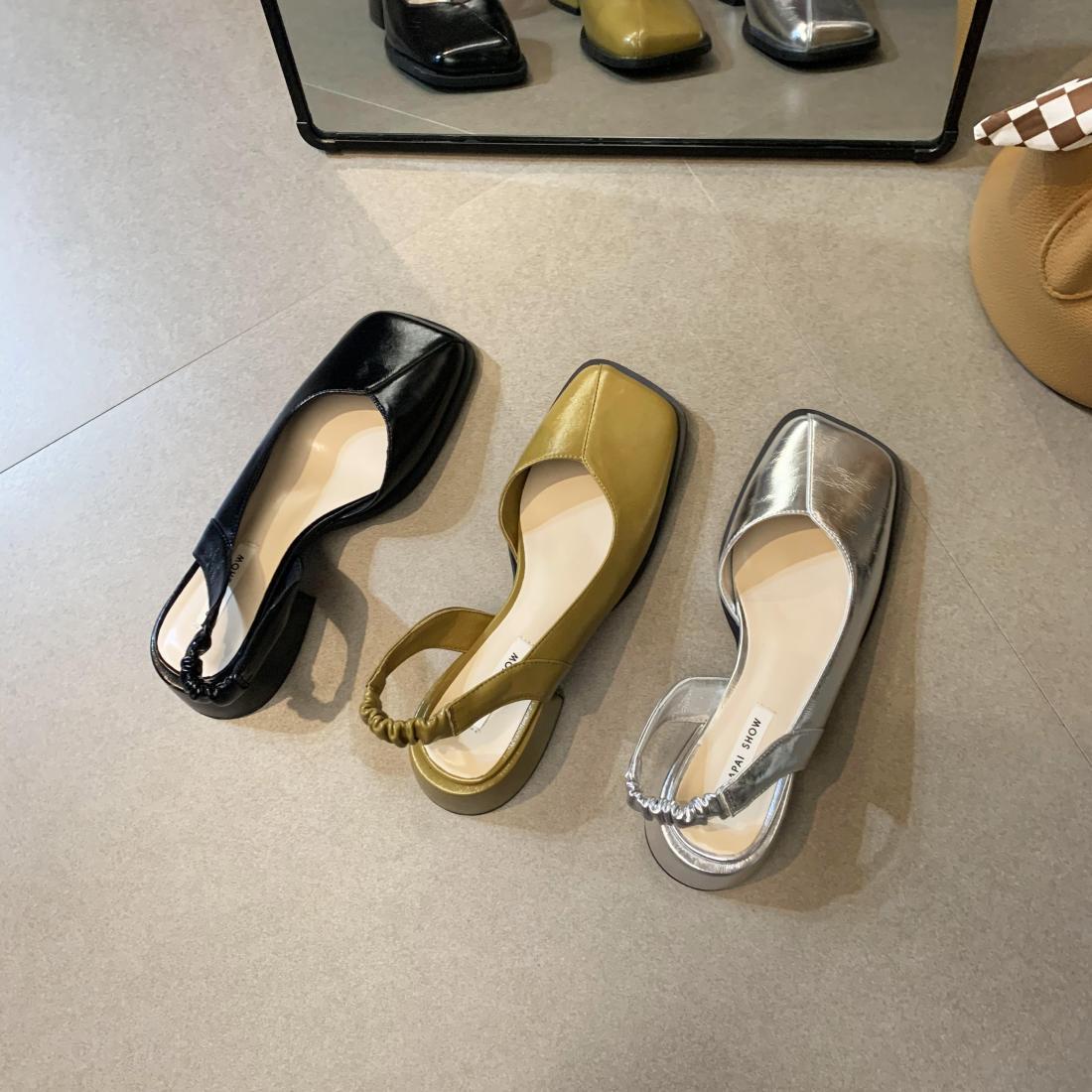 Sandalias Baotou para Mujer, Primavera y Verano 2025 Nuevo Estilo Coreano Moda Retro Tacón Medio Tacón Grueso Estilo Hada Sandalias Francesas de Mujer
