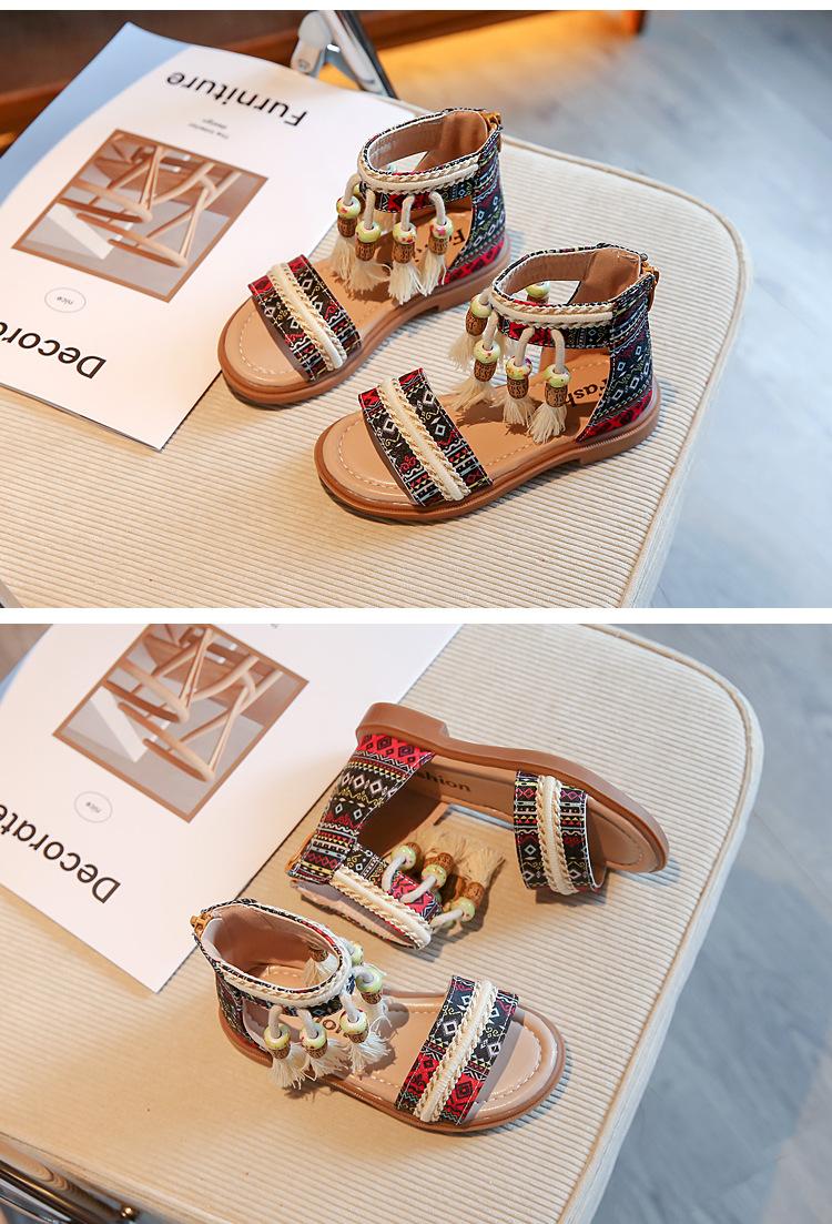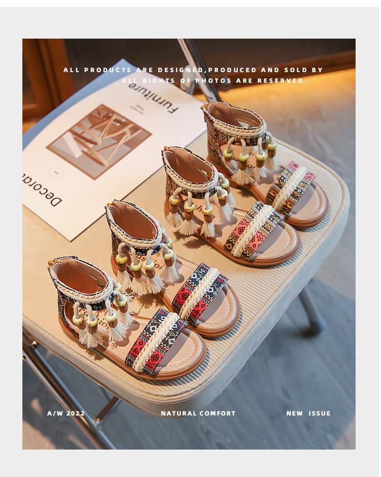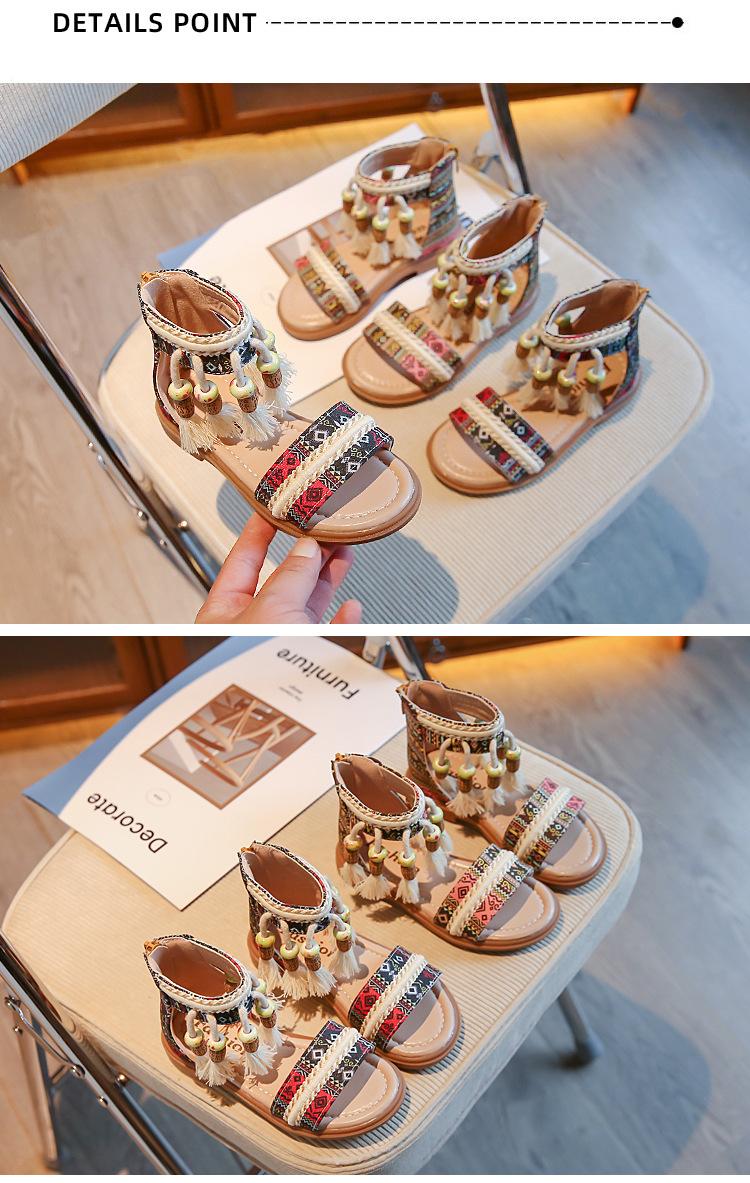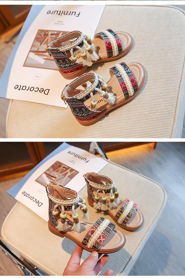 Sandalias para Niñas 2025 Verano Nueva Moda Más Fáciles de Combinar Zapatos de Princesa Estilo Étnico Zapatos con Borlas para Niños Suela Blanda