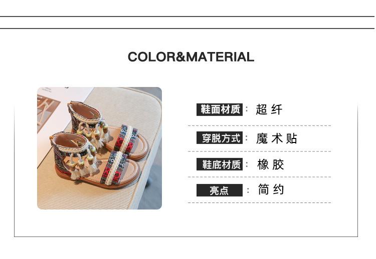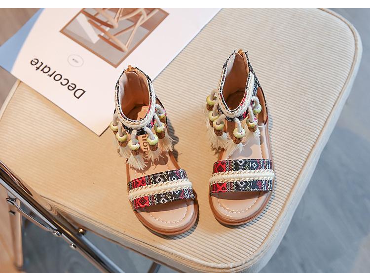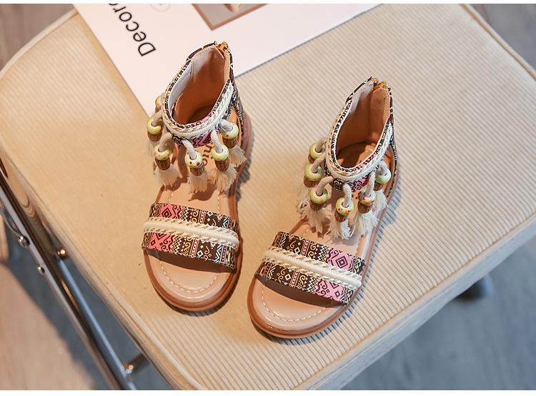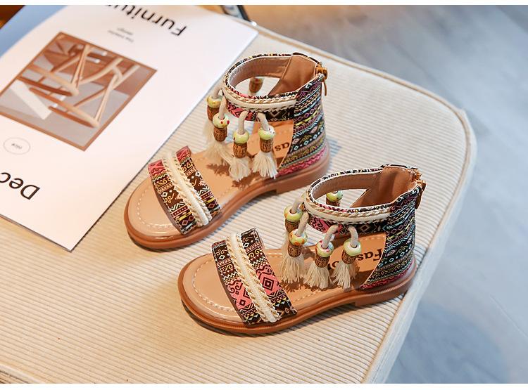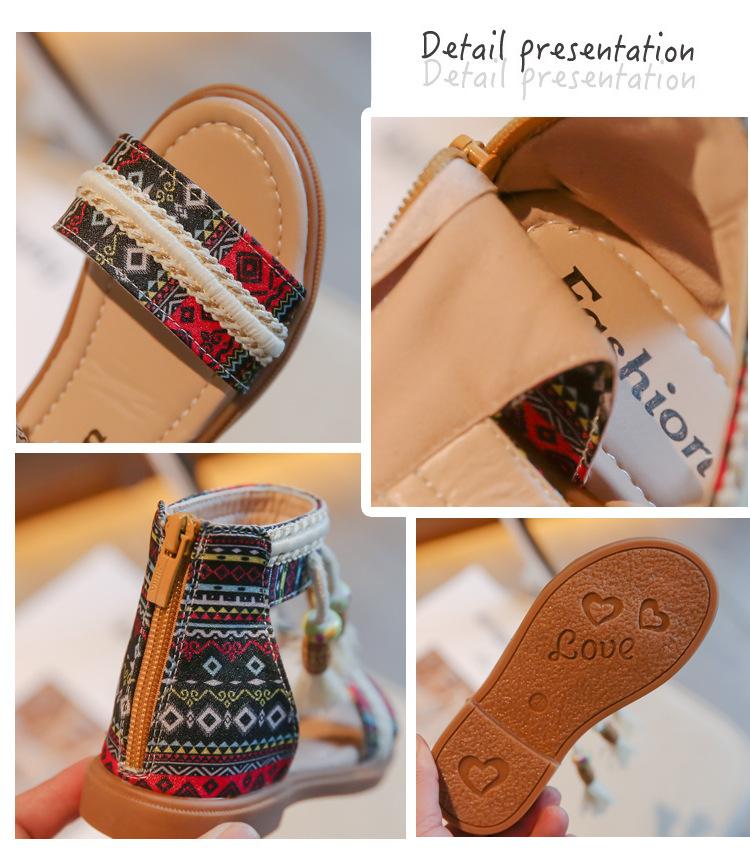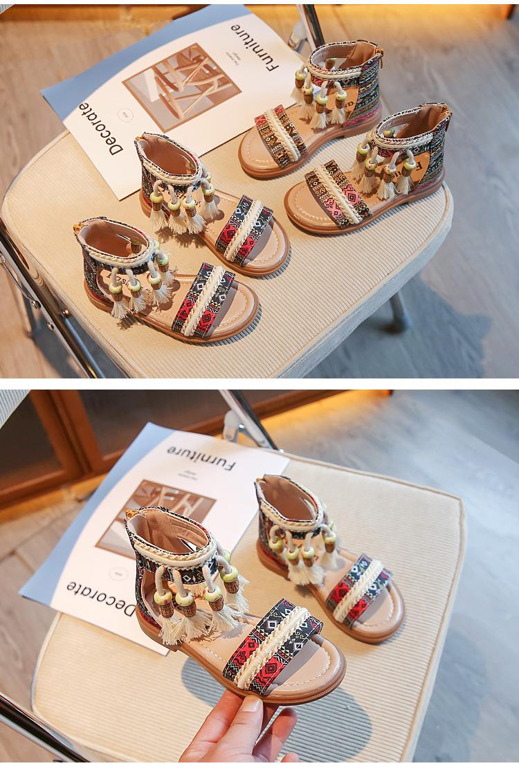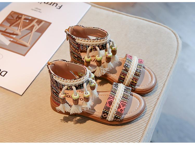 Sandalias para Niñas 2025 Verano Nueva Moda Más Fáciles de Combinar Zapatos de Princesa Estilo Étnico Zapatos con Borlas para Niños Suela Blanda