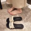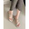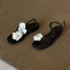 Sandalias romanas sencillas con diseño de huevo de paloma para mujer, ropa exterior de verano 2023, sandalias francesas planas con diamantes de imitación de hadas