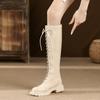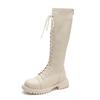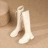 Botas de Caballero Blanco para Mujer, Botas Largas con Cordones Estilo Británico para Mujer, Botas Versátiles de Suela Gruesa para Mujer Otoño e Invierno 2022, Antideslizantes y Resistentes al Desgaste