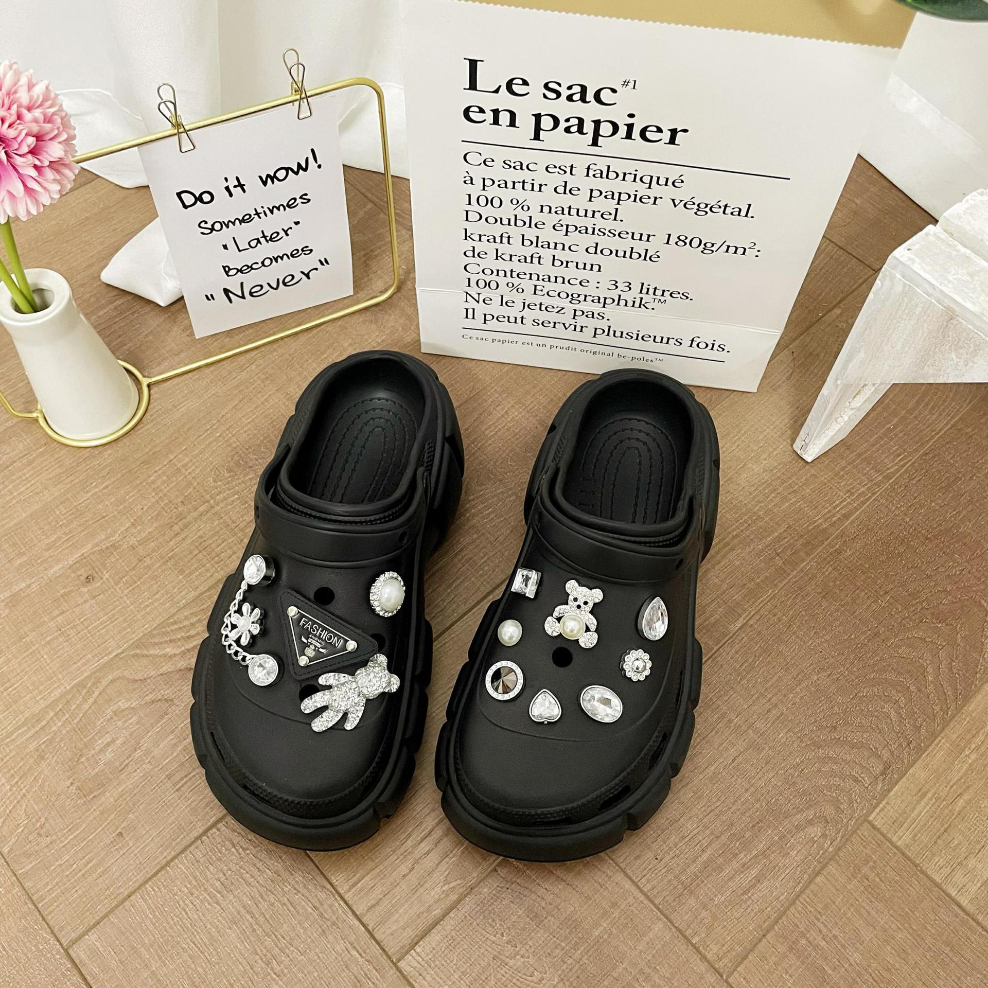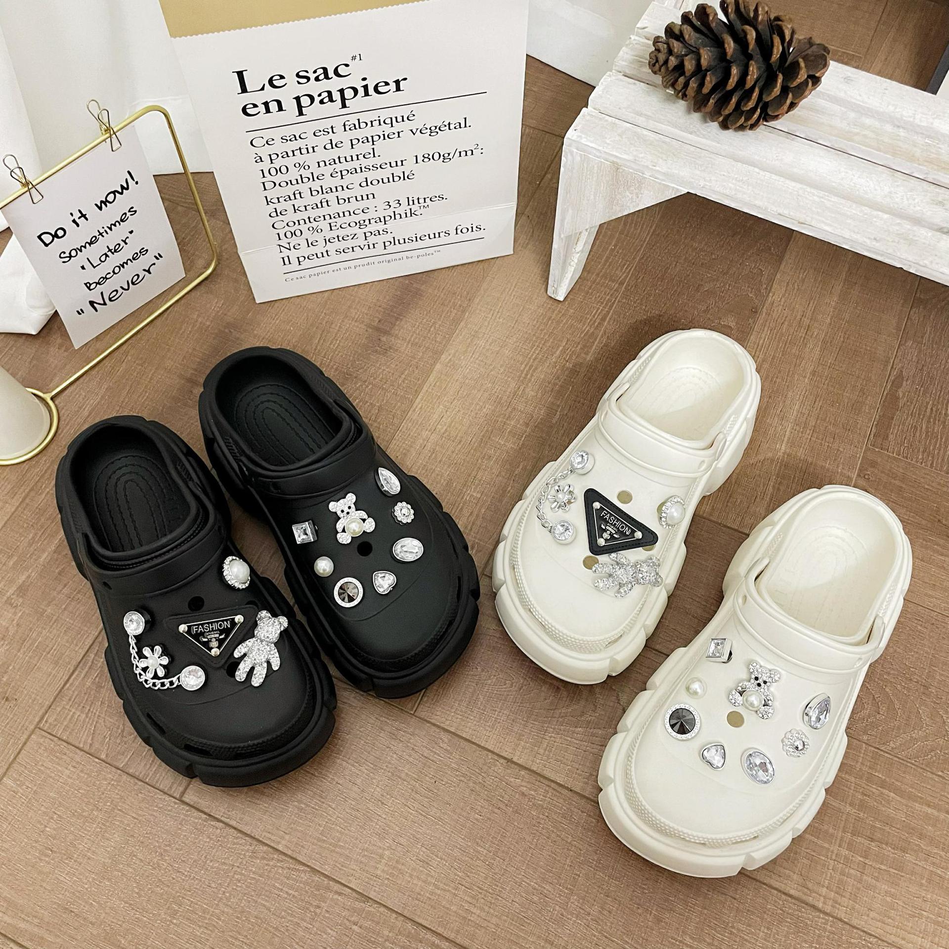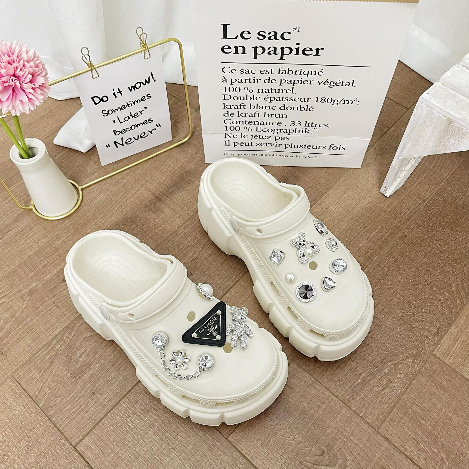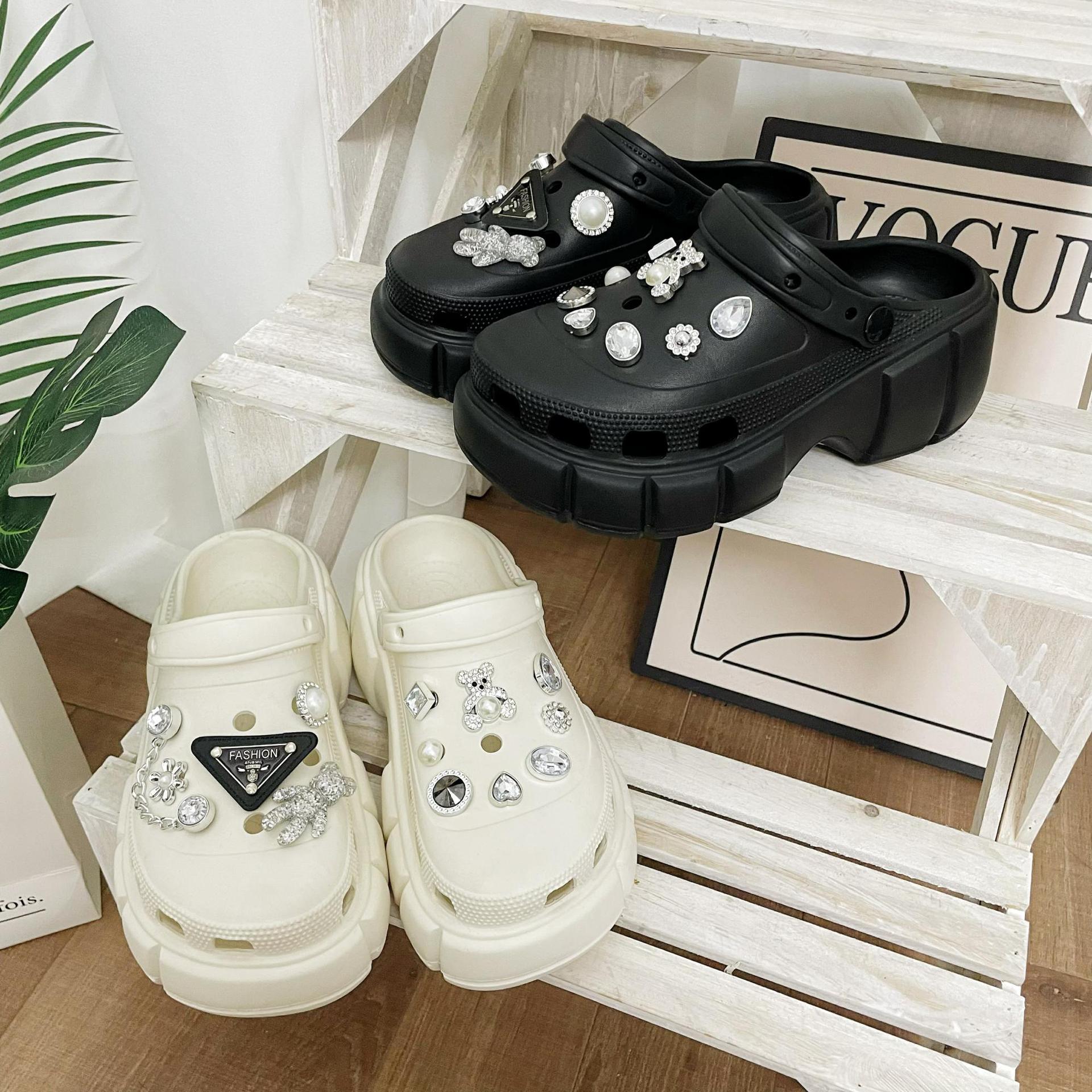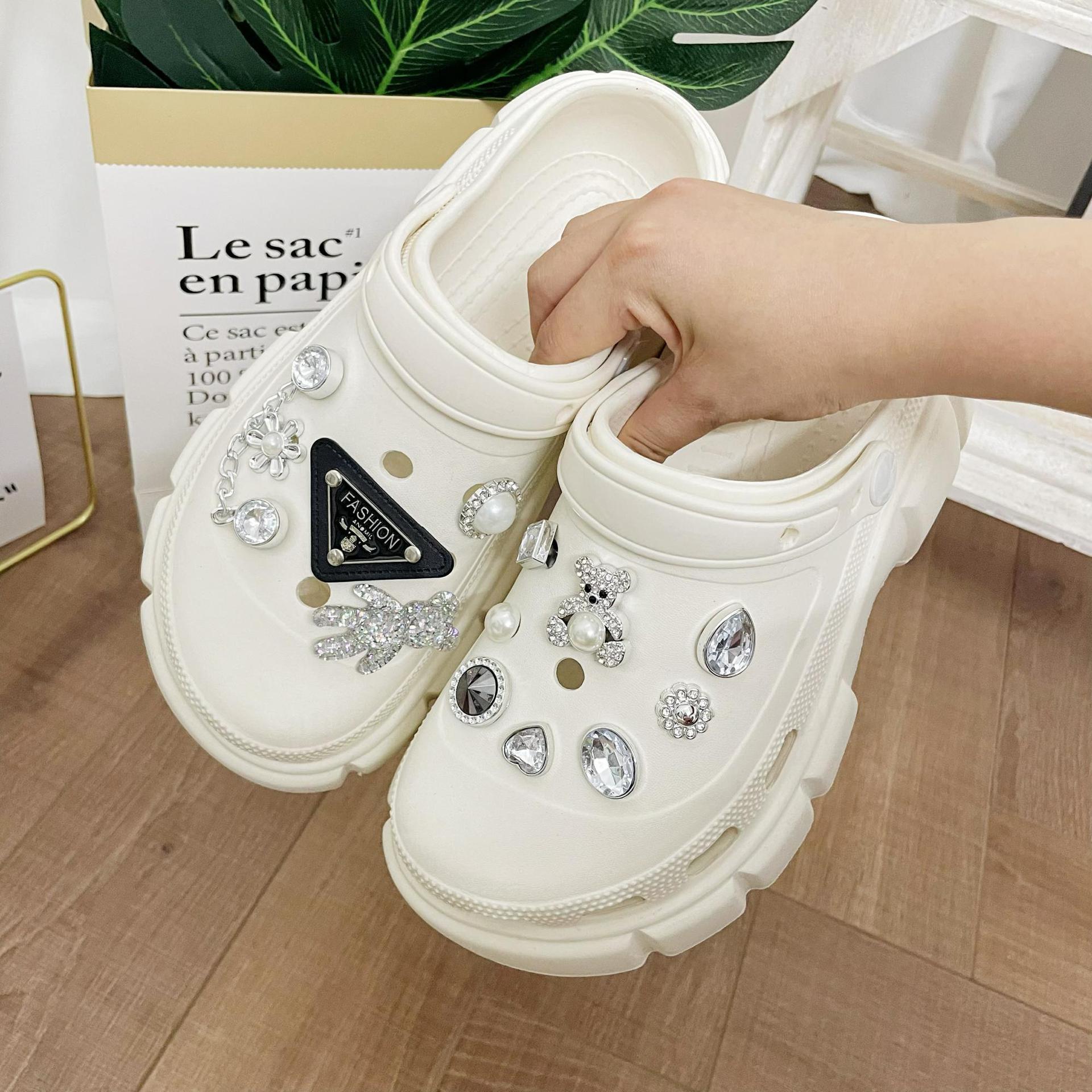 DIY Accesorios Zapatos con Agujeros Flor para Zapatos DIY Marca Triángulo Perla Oso Hecho a Mano Pedrería Creativo Decoración Hebilla para Zapatos