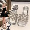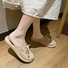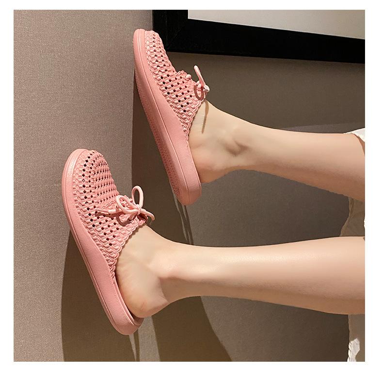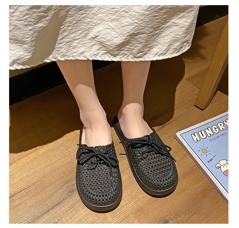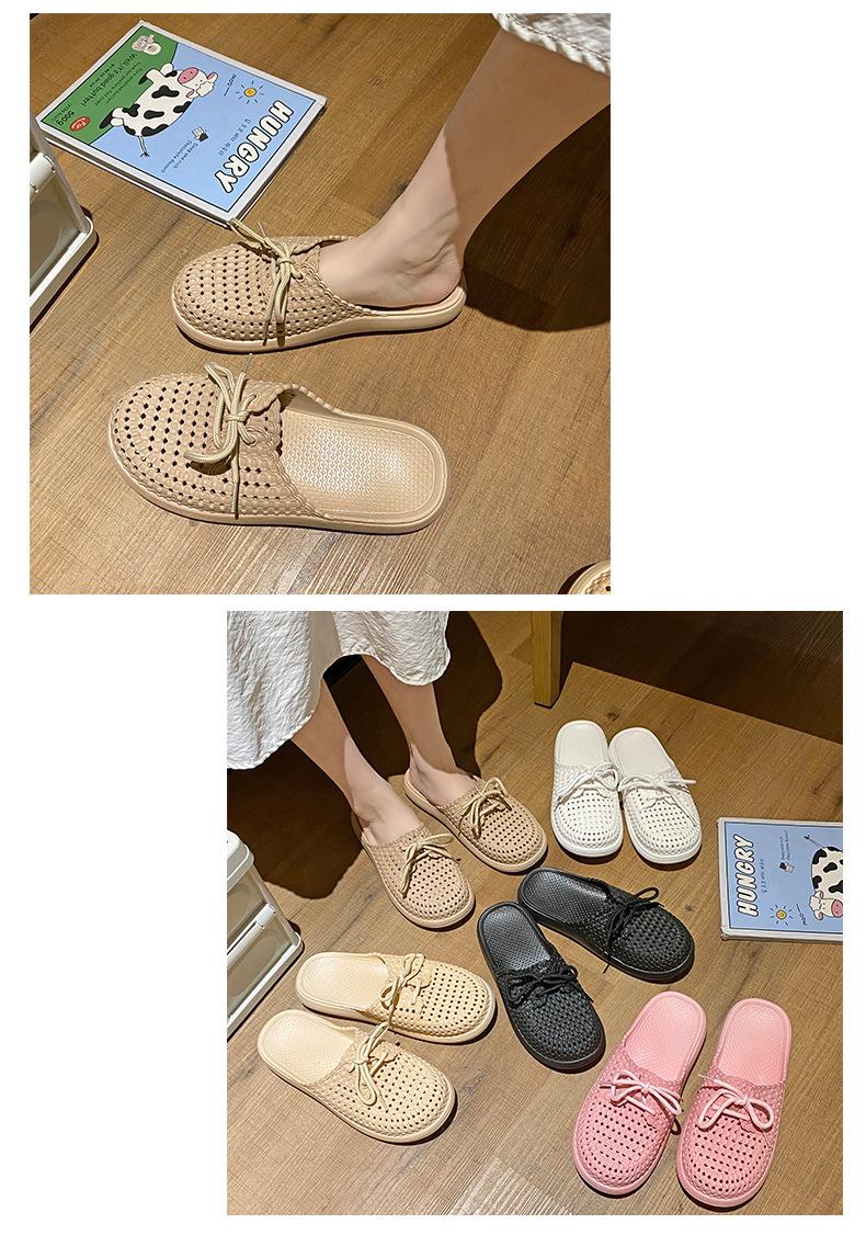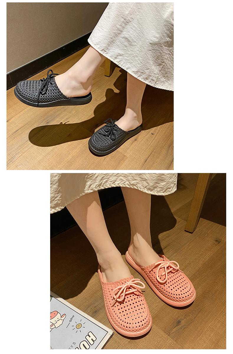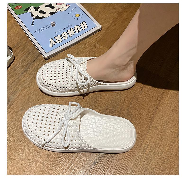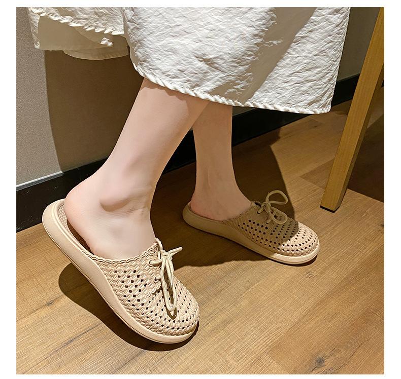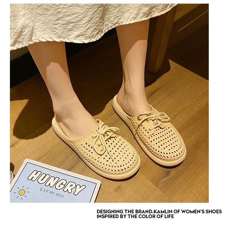 Sandalias y pantuflas de verano 2024 para mujer, con cordones en la punta, para uso exterior, zapatos de playa con agujeros, pantuflas planas y bonitas.