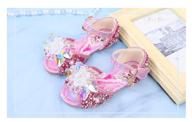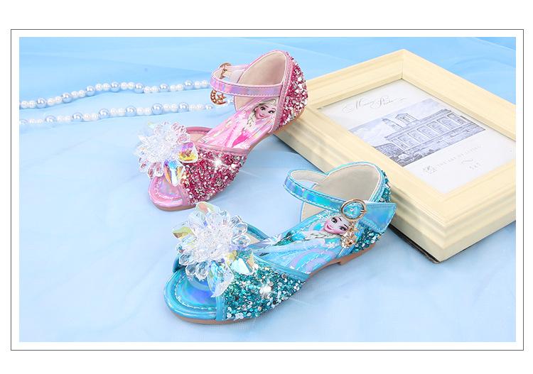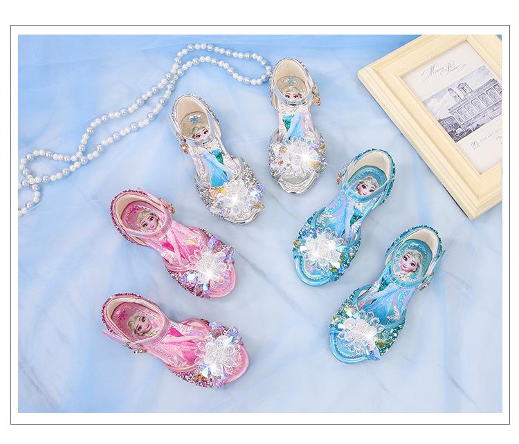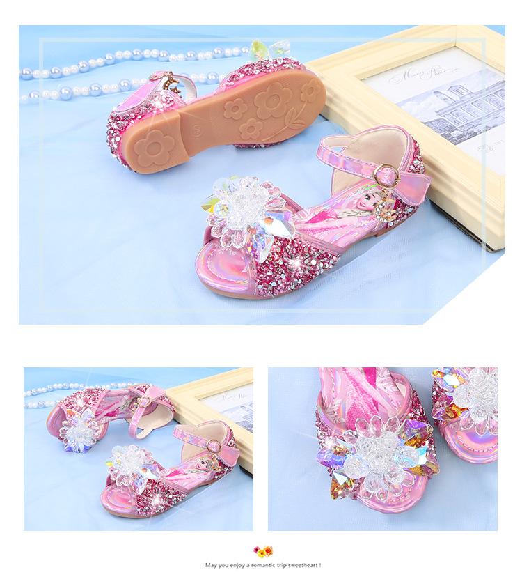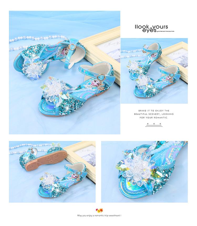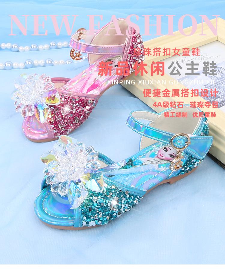 Zapatos de Princesa para Niñas con Pedrería Linda 2024 Primavera y Verano Nuevo Estilo Velcro de una Palabra Zapatos de Princesa Elsa para Niños Zapatos para Actuación