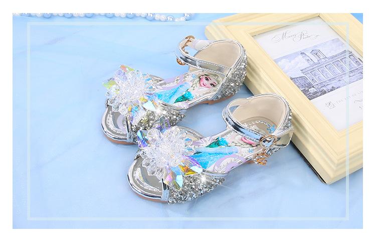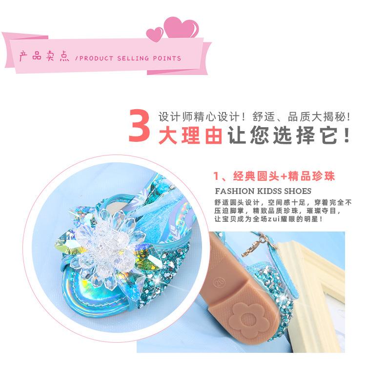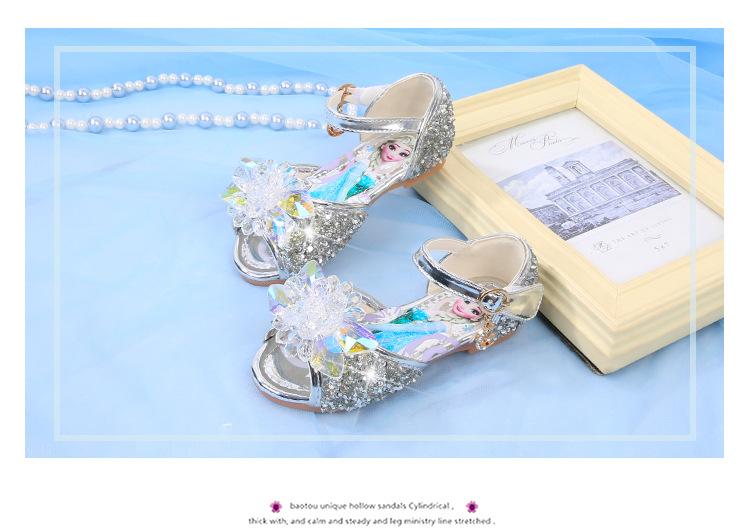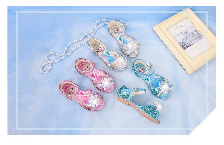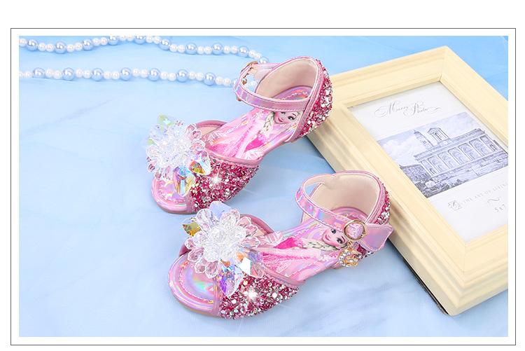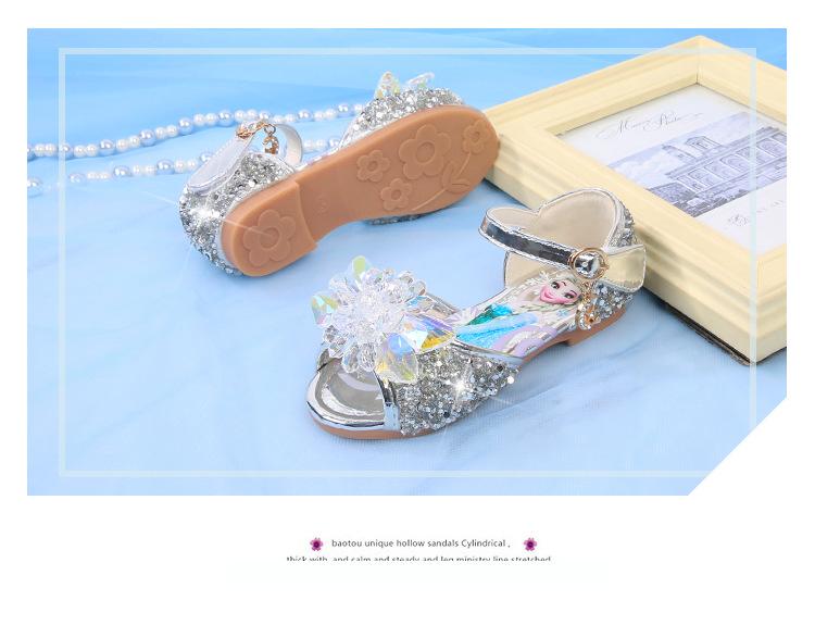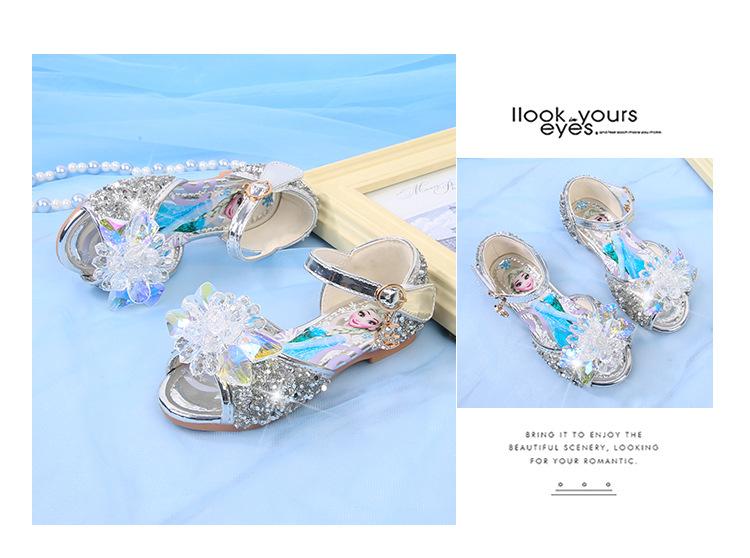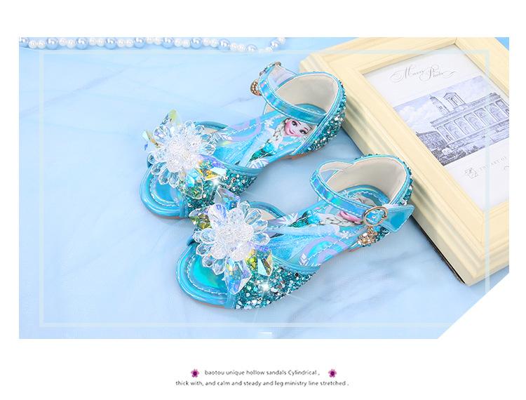 Zapatos de Princesa para Niñas con Pedrería Linda 2024 Primavera y Verano Nuevo Estilo Velcro de una Palabra Zapatos de Princesa Elsa para Niños Zapatos para Actuación