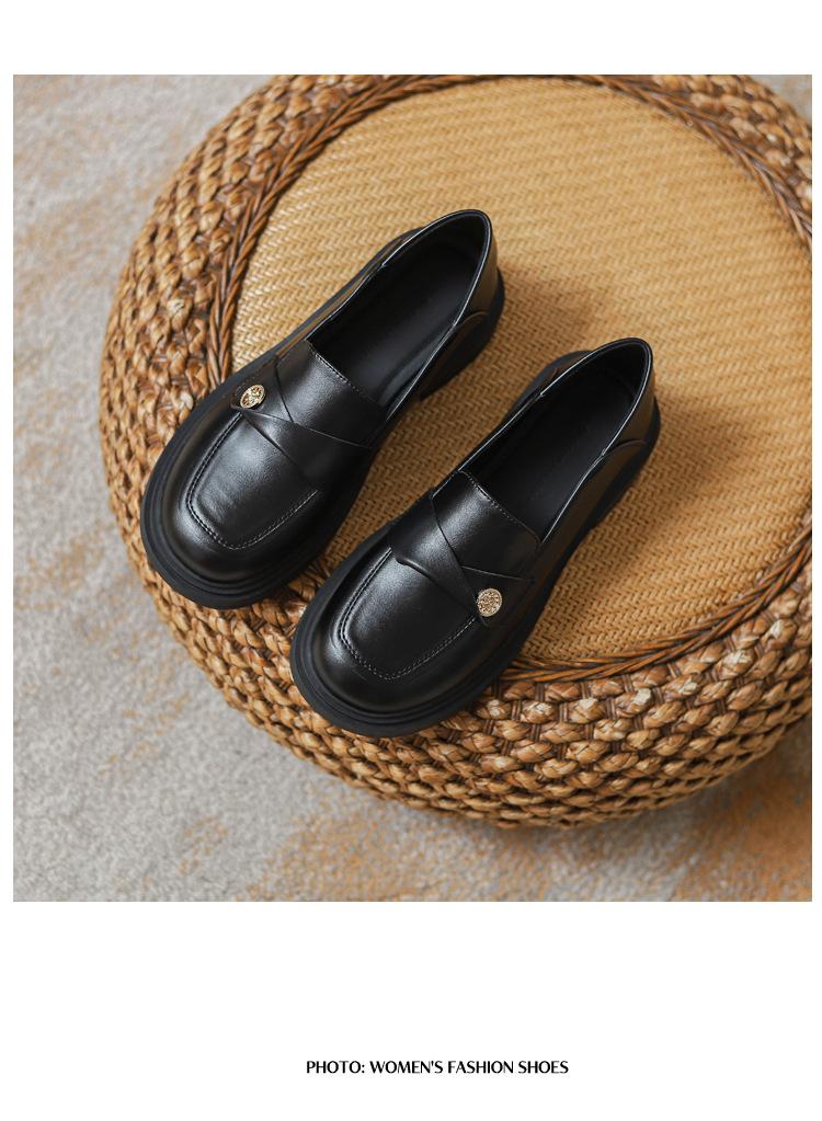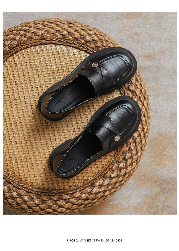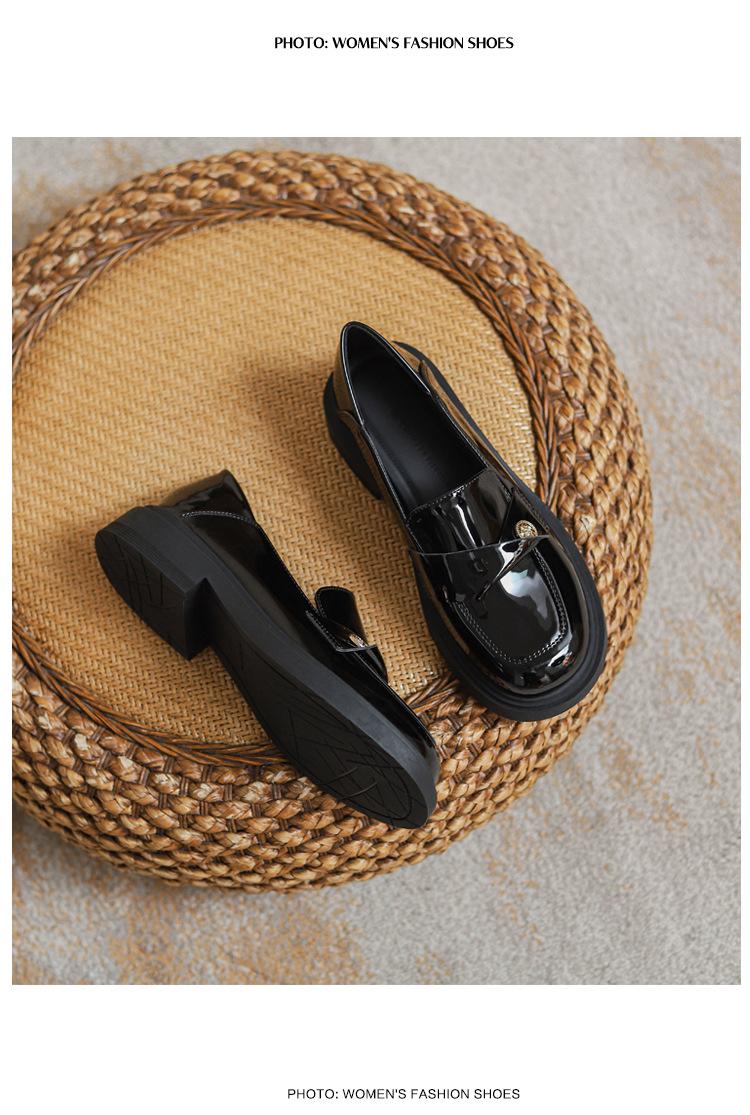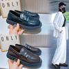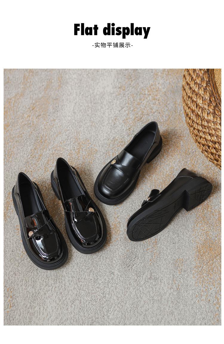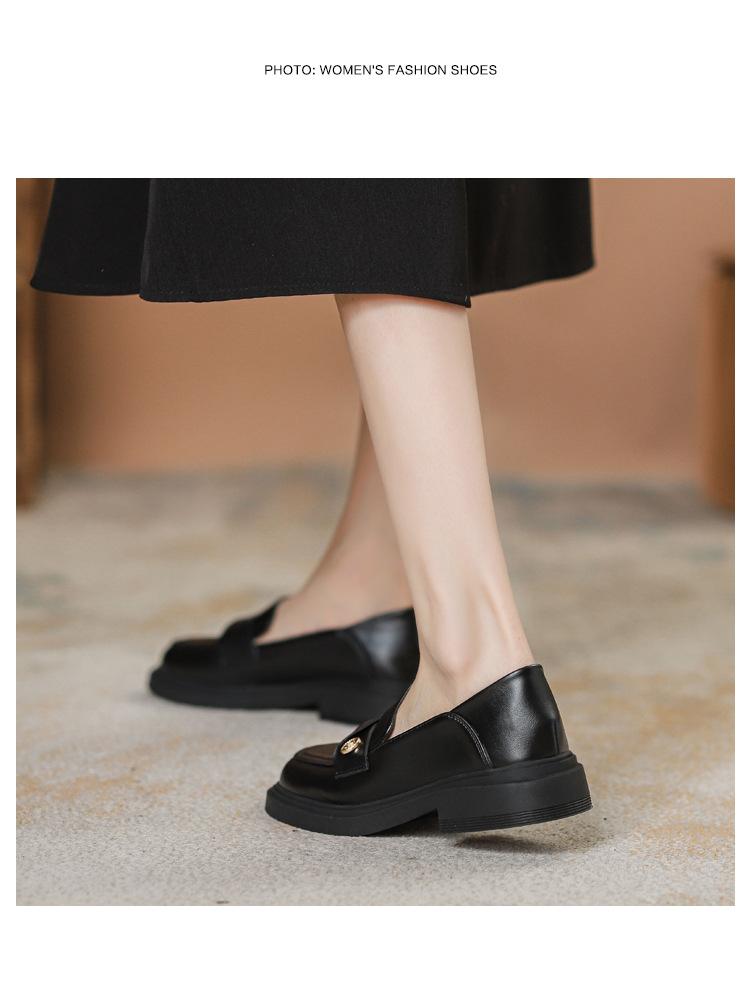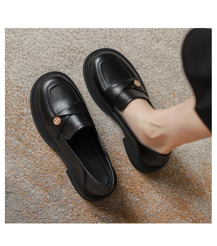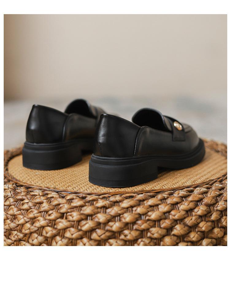 Mocasines gruesos de suela plana para mujer 2025 Otoño e Invierno Nuevo estilo Cuero genuino Estilo británico Zapatos de cuero pequeños populares Flats negros