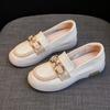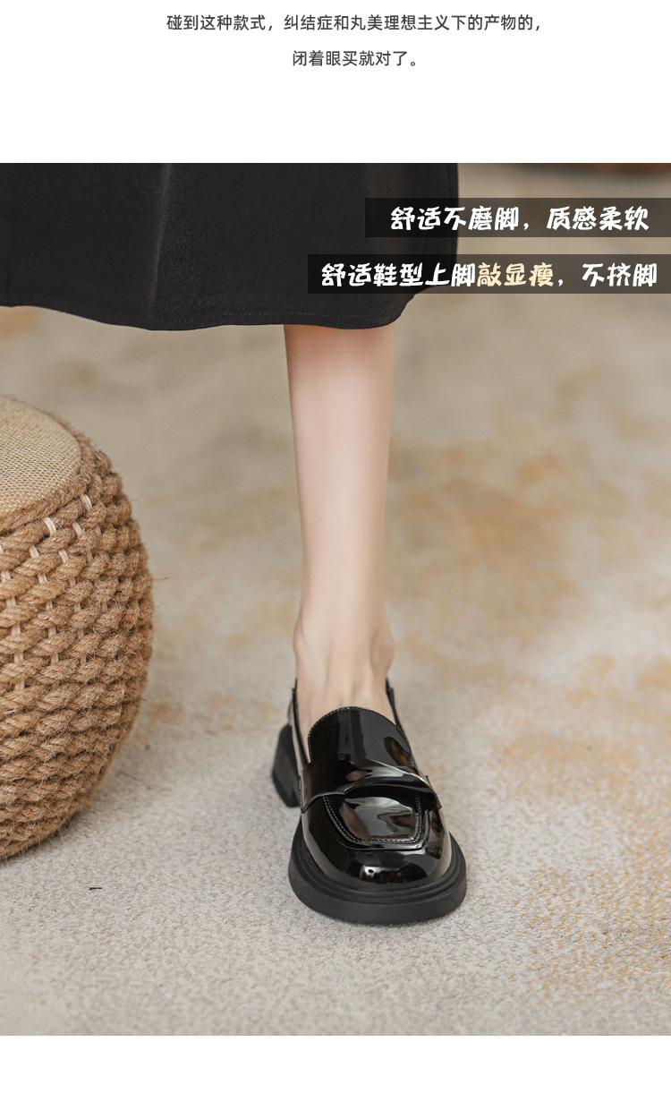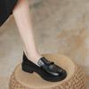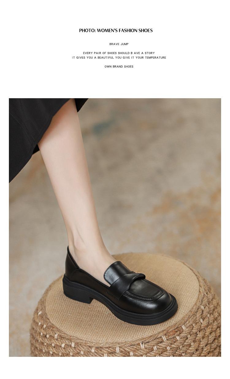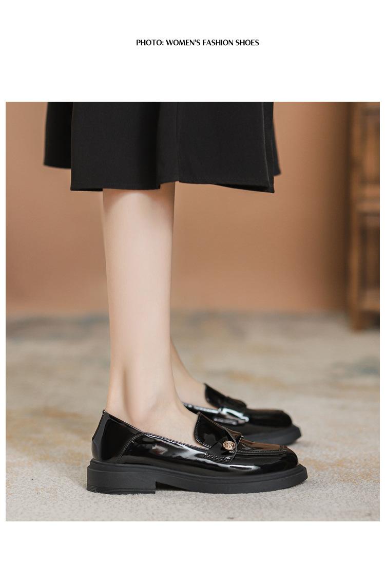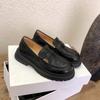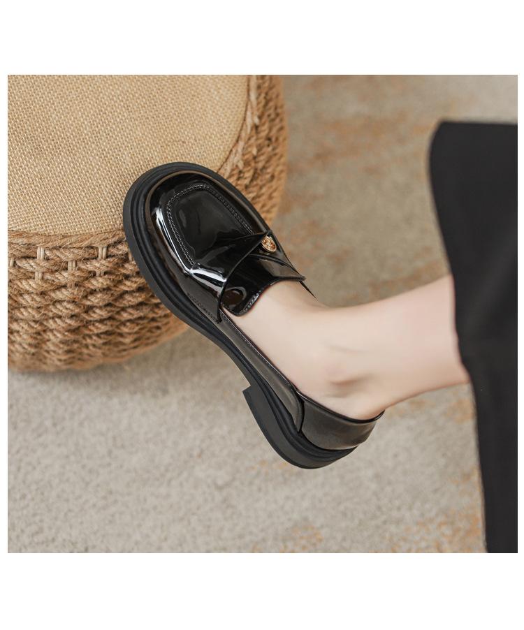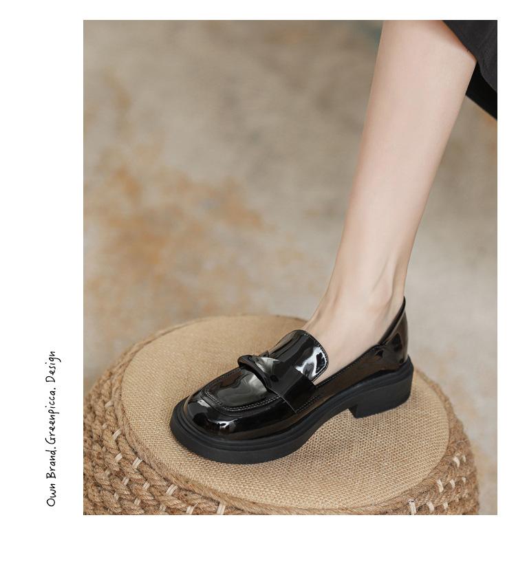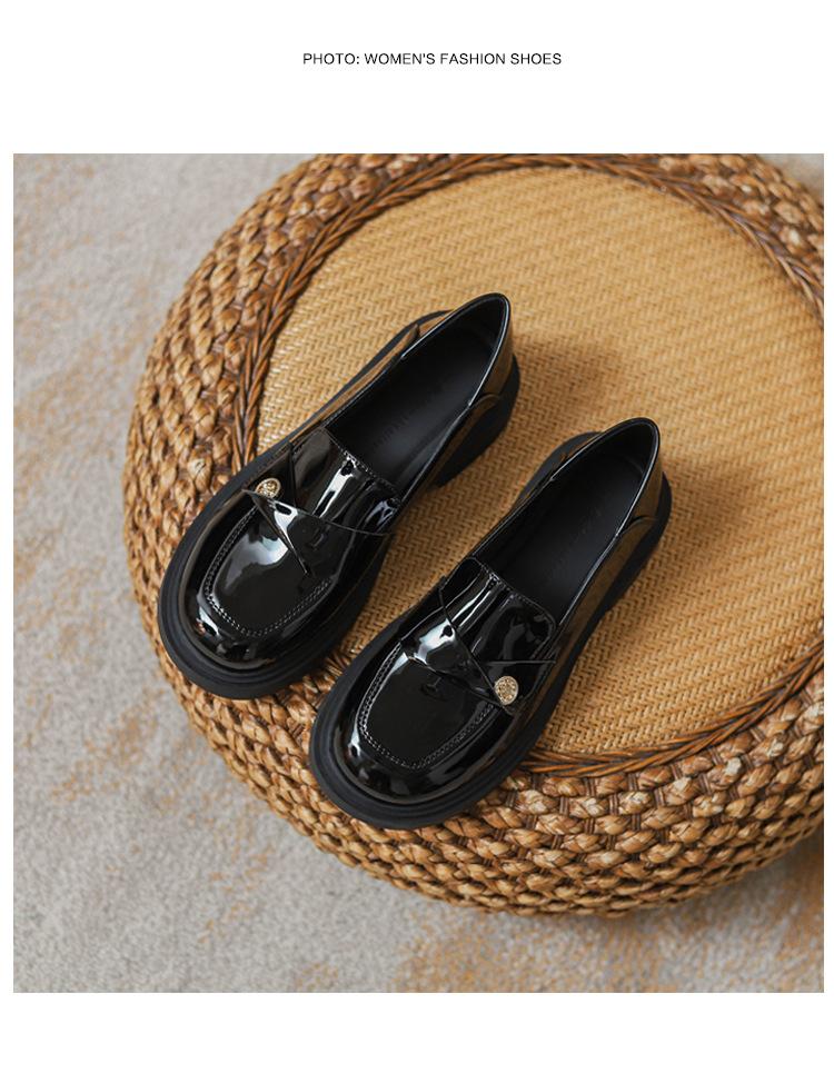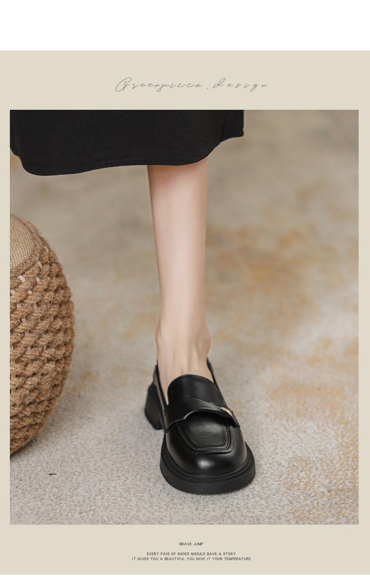 Mocasines gruesos de suela plana para mujer 2025 Otoño e Invierno Nuevo estilo Cuero genuino Estilo británico Zapatos de cuero pequeños populares Flats negros