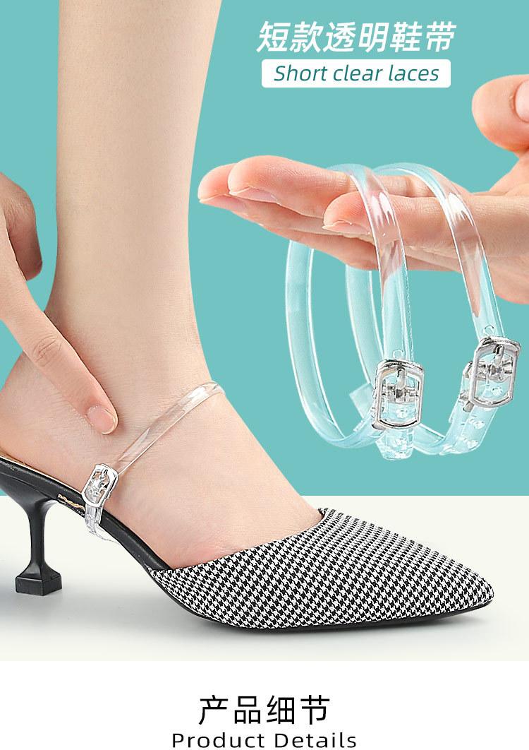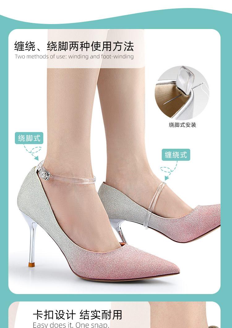 Para evitar que los zapatos se caigan del talón, ate los cordones de los zapatos con tacones altos alrededor del tobillo, transparentes, multifuncionales e invisibles.