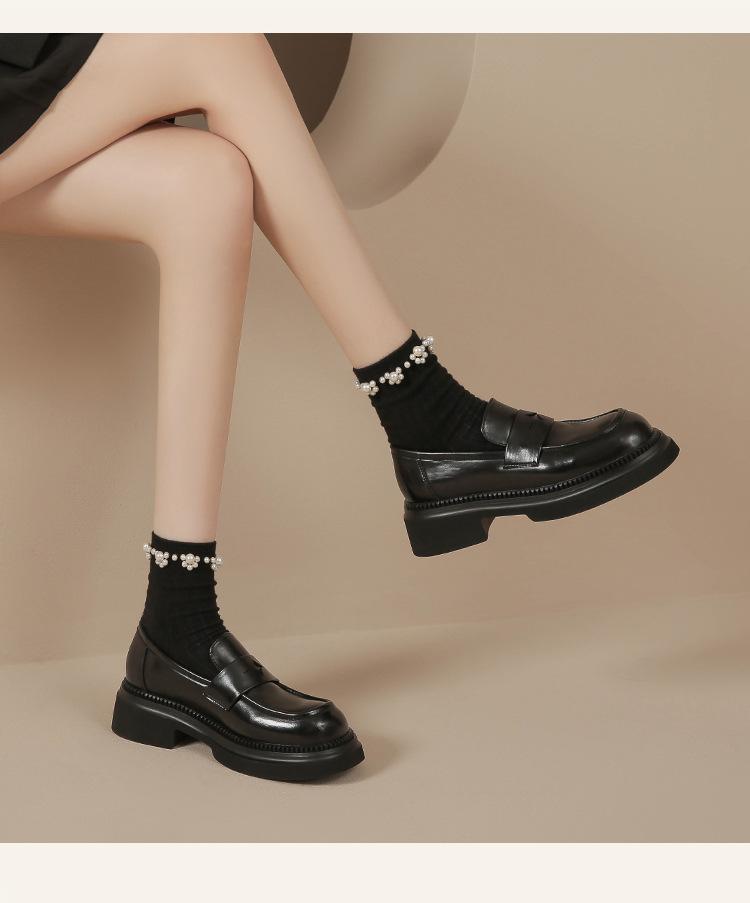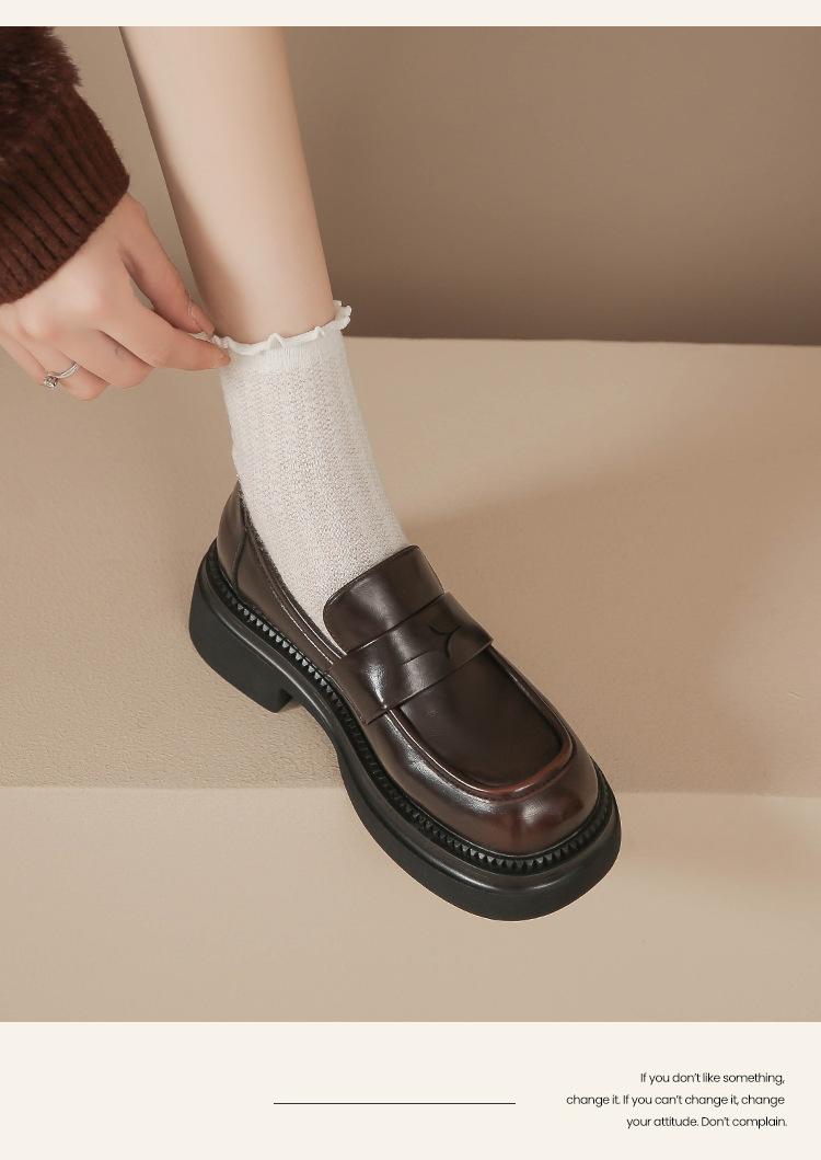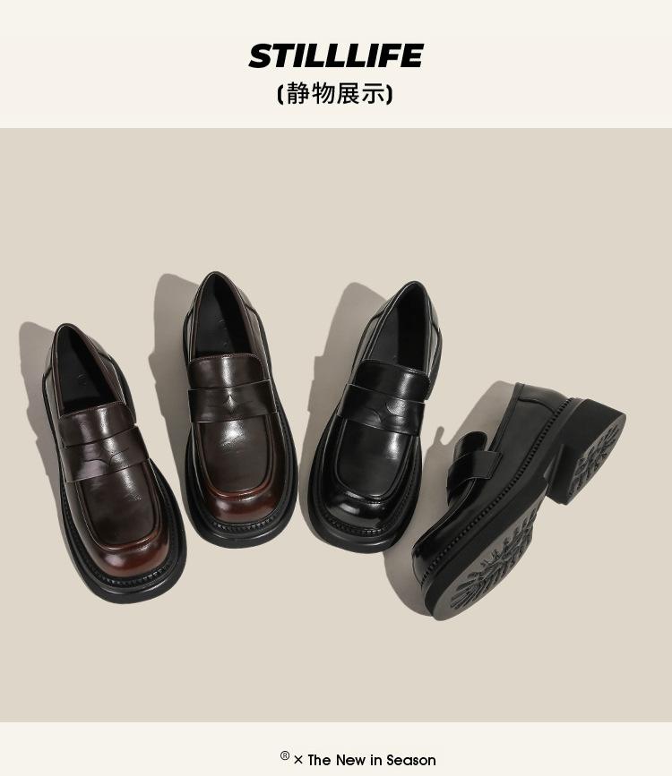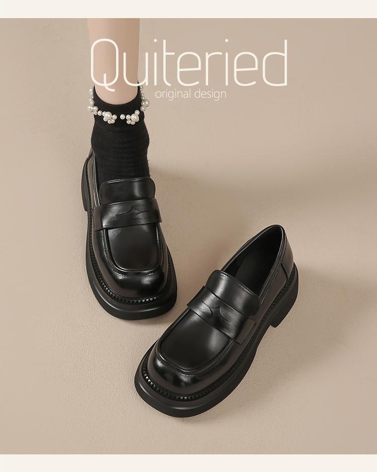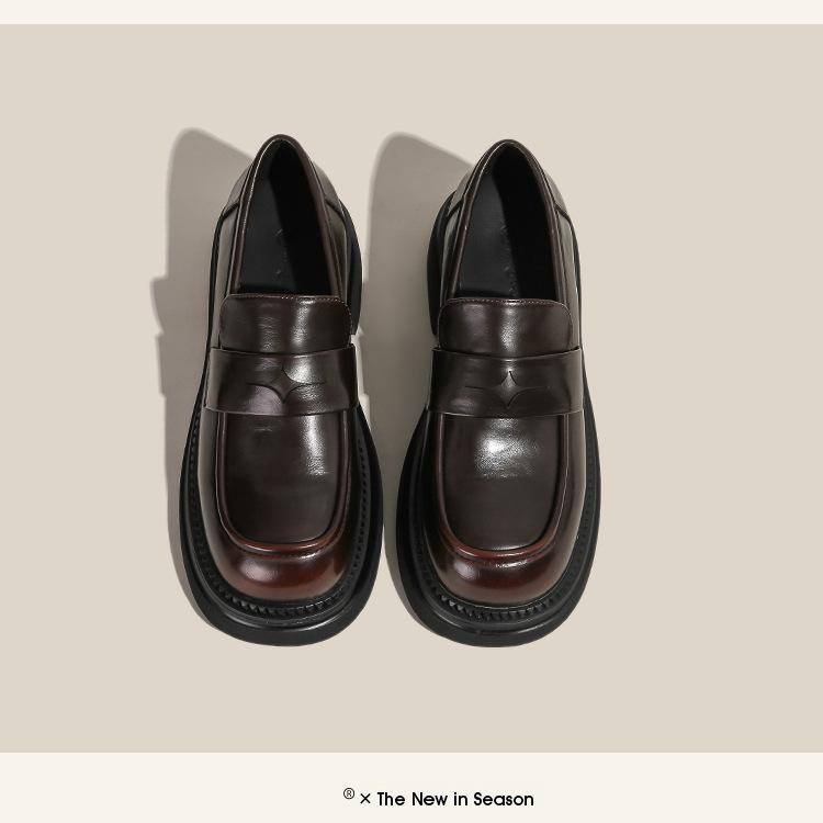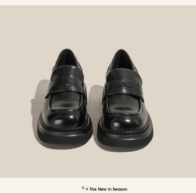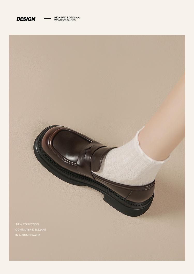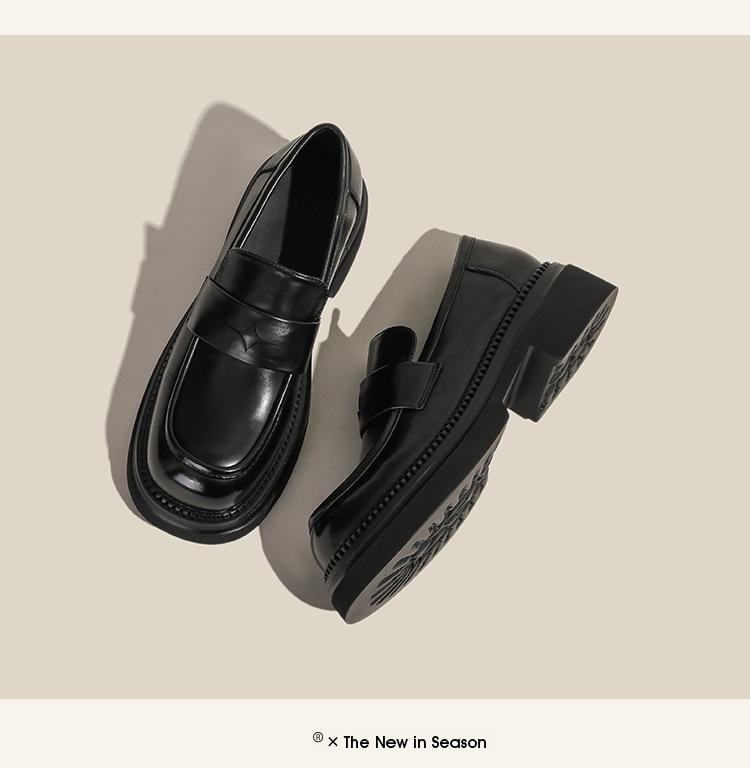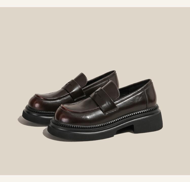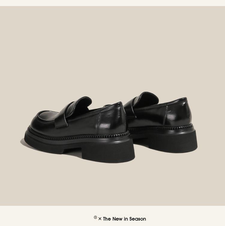 Zapatos de cuero estilo británico, nuevos zapatos de punta redonda y boca baja, mocasines de estilo universitario, sin cordones, de moda para mujer, primavera 2024