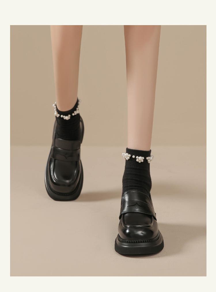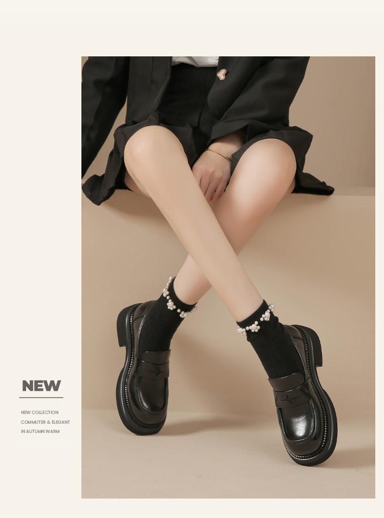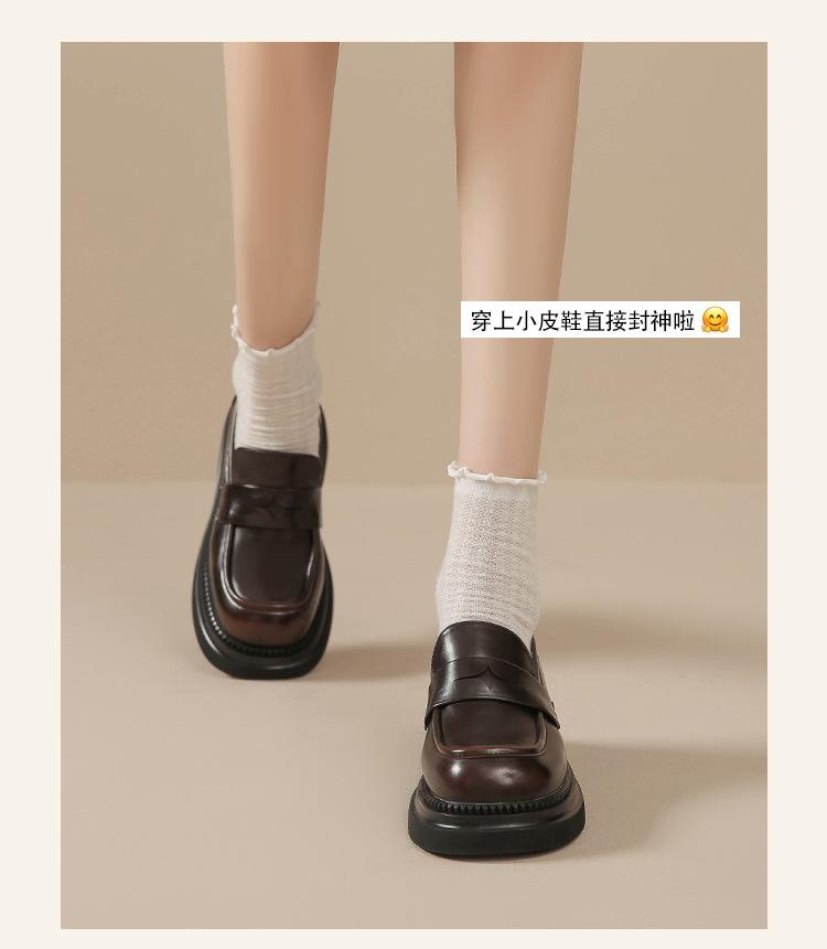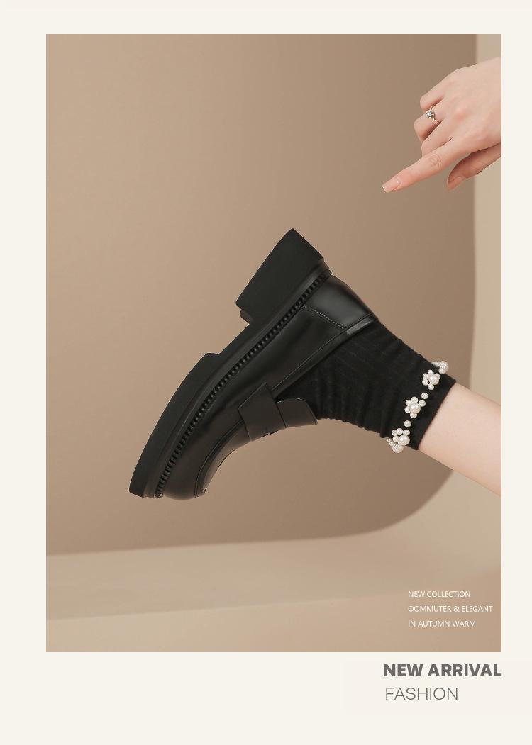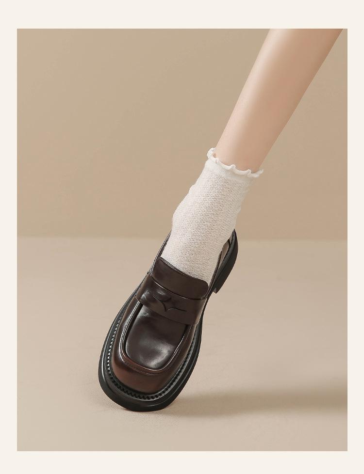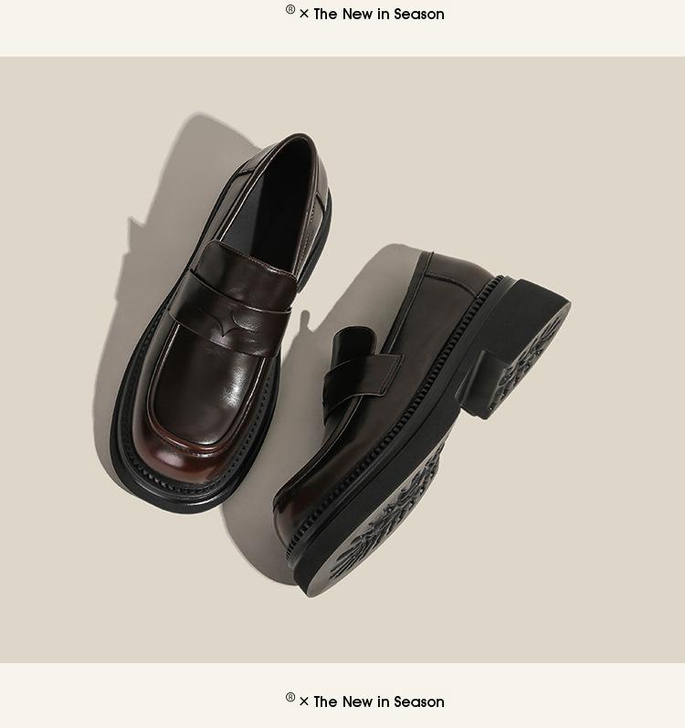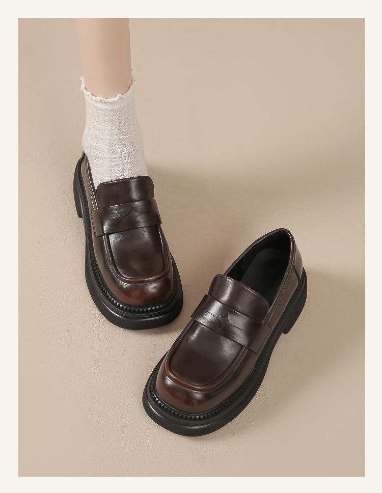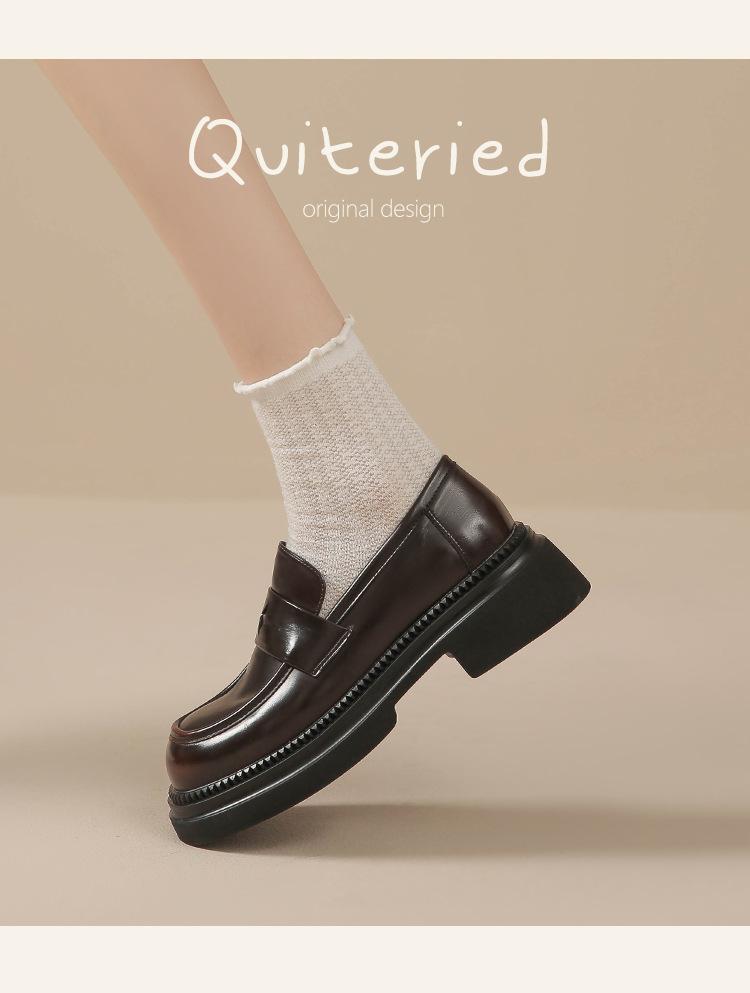 Zapatos de cuero estilo británico, nuevos zapatos de punta redonda y boca baja, mocasines de estilo universitario, sin cordones, de moda para mujer, primavera 2024