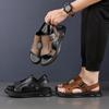 | Zapatillas de verano de piel de vaca para hombre, sandalias de exterior de piel auténtica, chanclas transpirables con punta abierta, zapatos de moda para hombre, comercio |