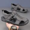 | Zapatos de playa de verano de piel de vaca para hombre, sandalias de cuero genuino, sandalias casuales, zapatillas antideslizantes, zapatos de hombre transpirables de moda |