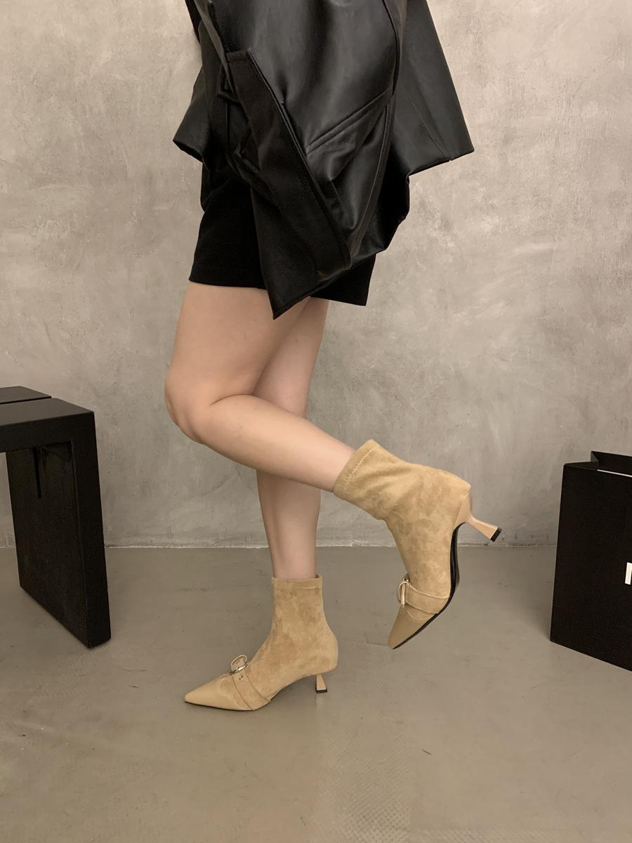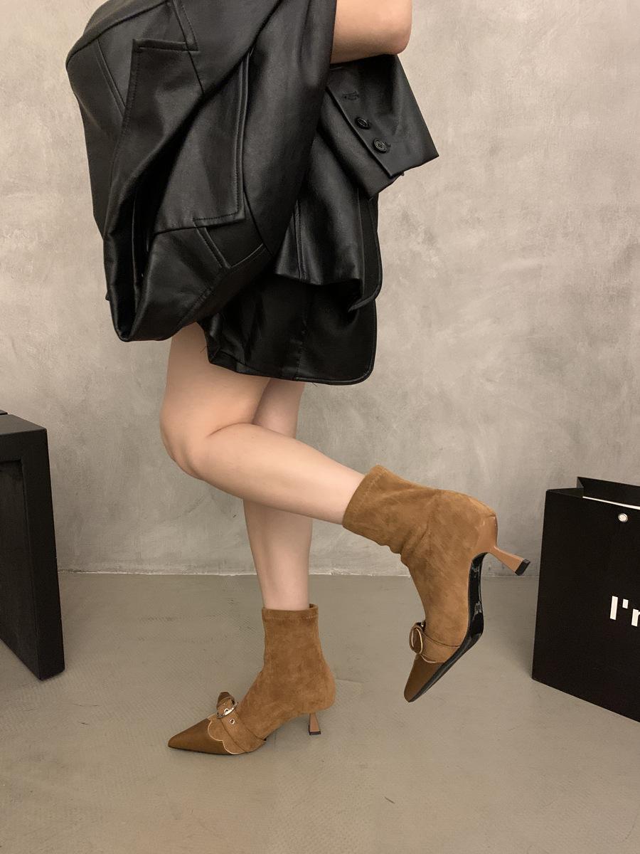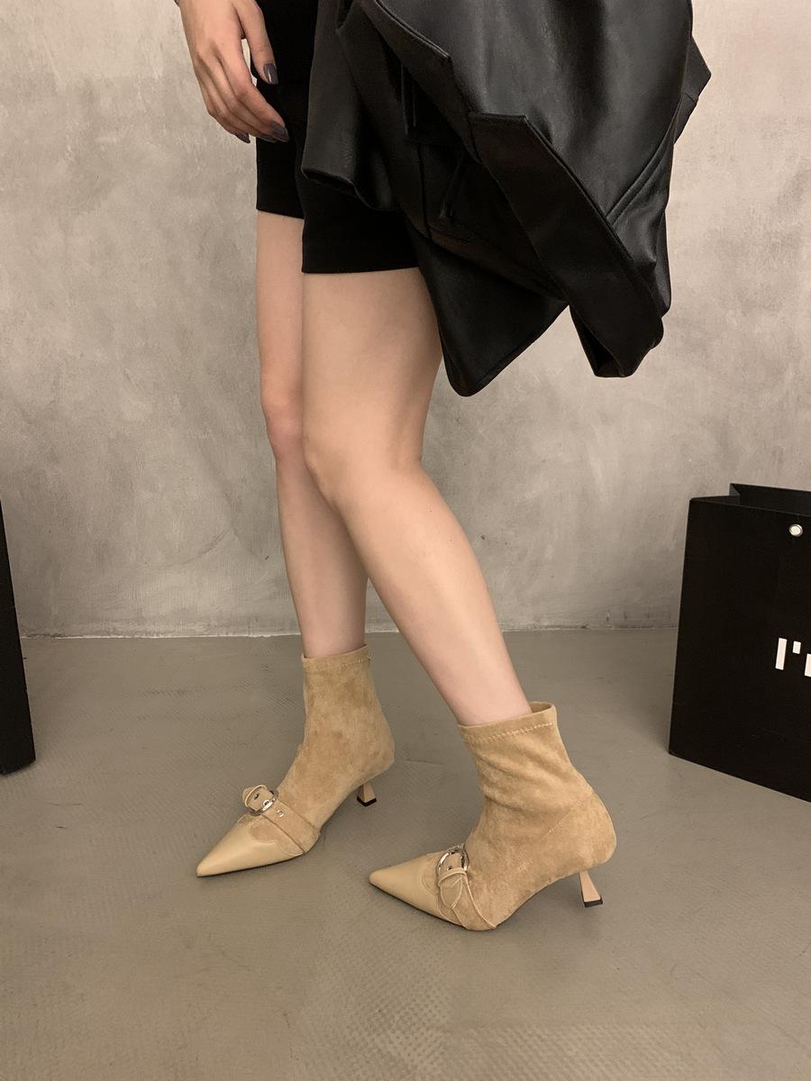 Botines finos y puntiagudos de tacón de gatito francés para mujer, zapatos de 2023, nuevos, retro, elegantes, de tacón alto, para primavera y otoño