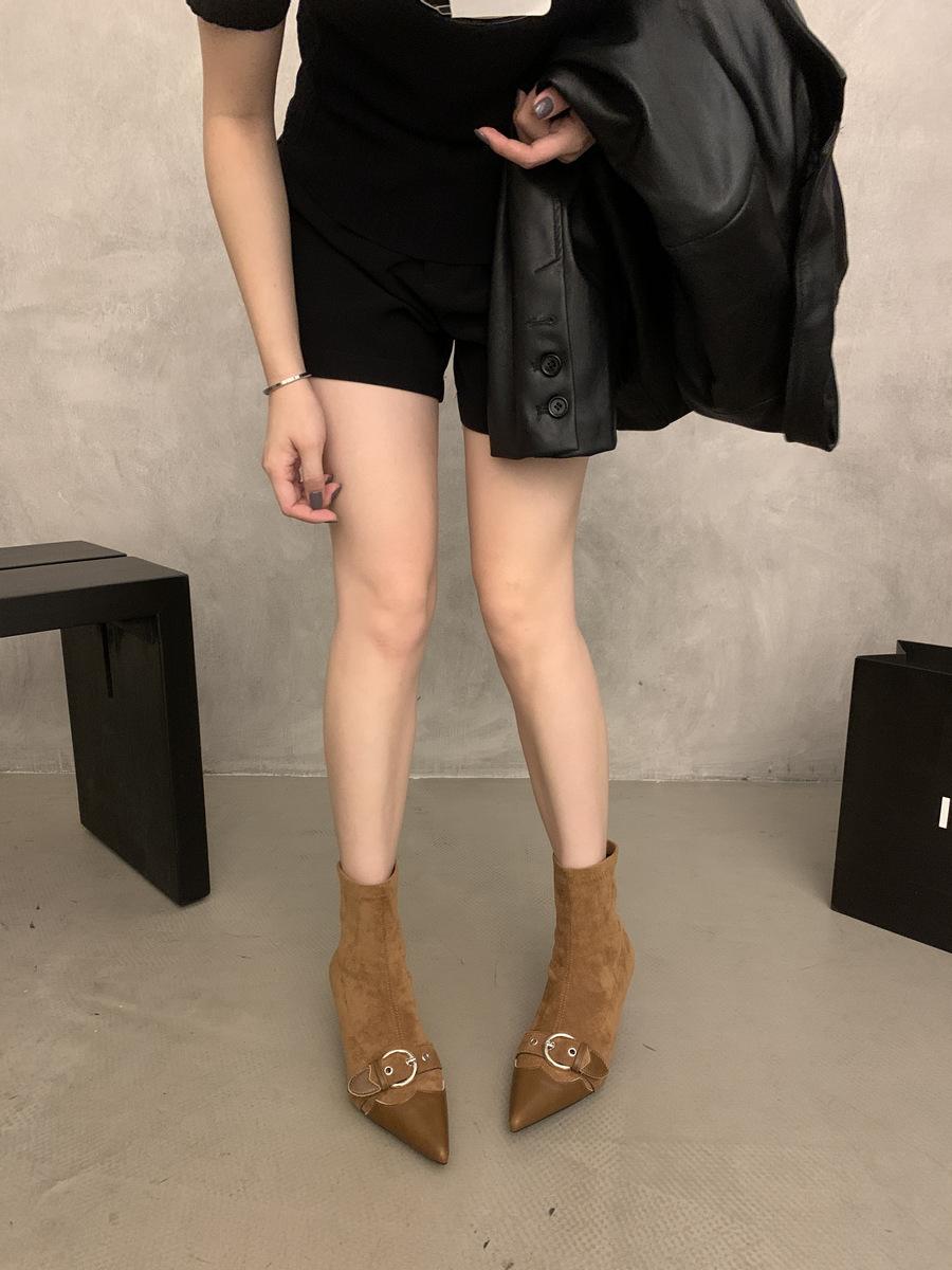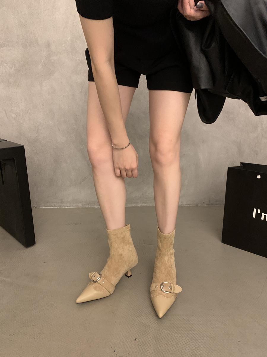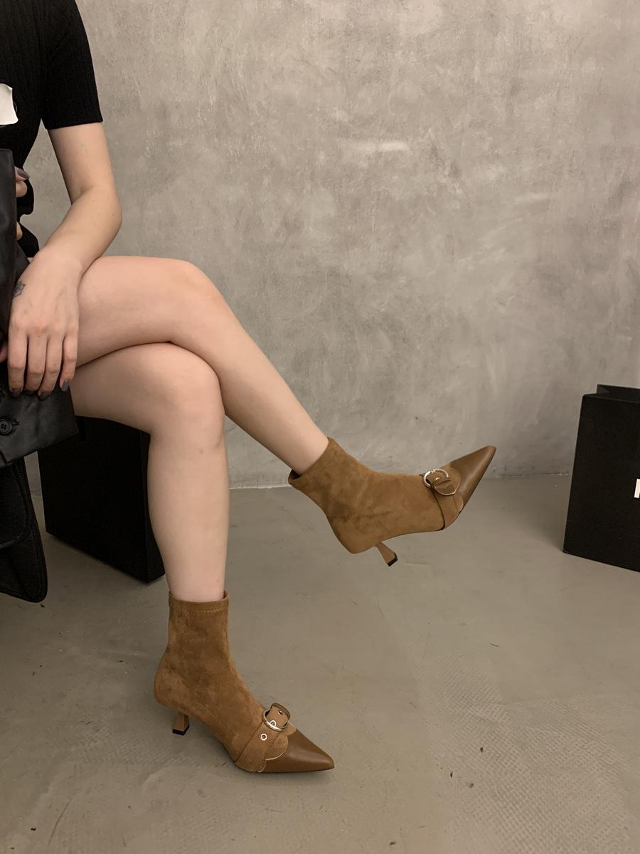 Botines finos y puntiagudos de tacón de gatito francés para mujer, zapatos de 2023, nuevos, retro, elegantes, de tacón alto, para primavera y otoño