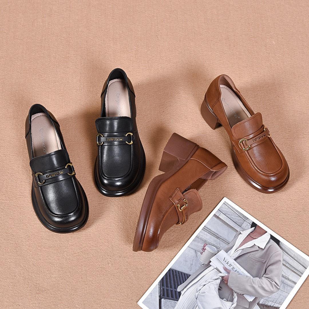 Mocasines de moda 2023 Color: Negro. Marrón Material: primera capa de piel de vacuno Suela: Suela de goma Talla: 34-40 Altura del tacón: 5 cm