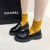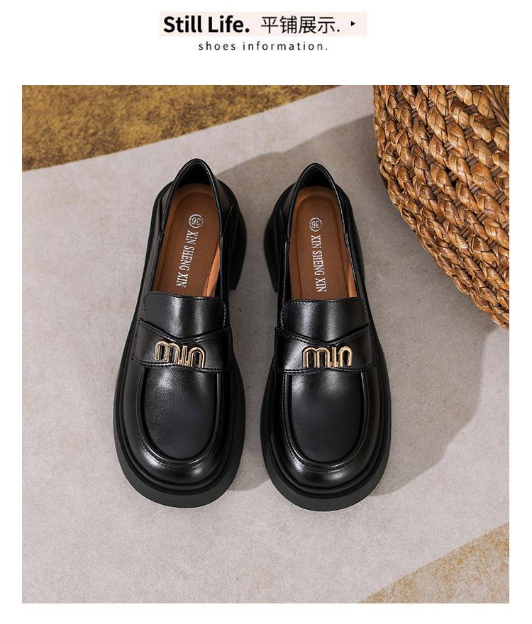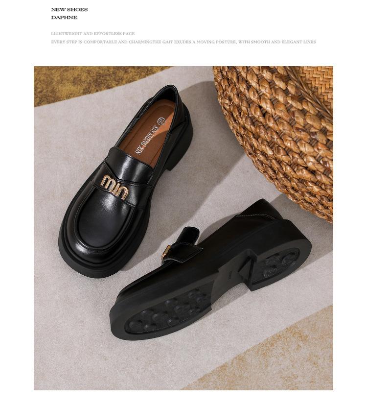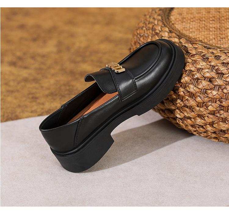 Mocasines Negros para Mujer Otoño Suela Gruesa 2025 Nuevos Zapatos Versátiles de Primavera y Otoño Estilo Británico Zapatos de Cuero Pequeños Planos
