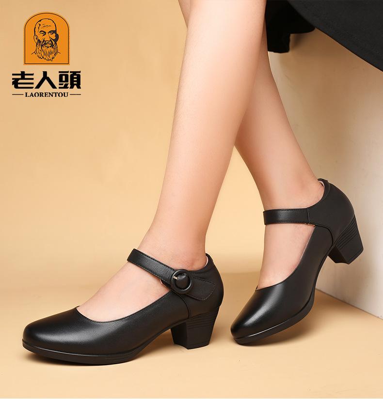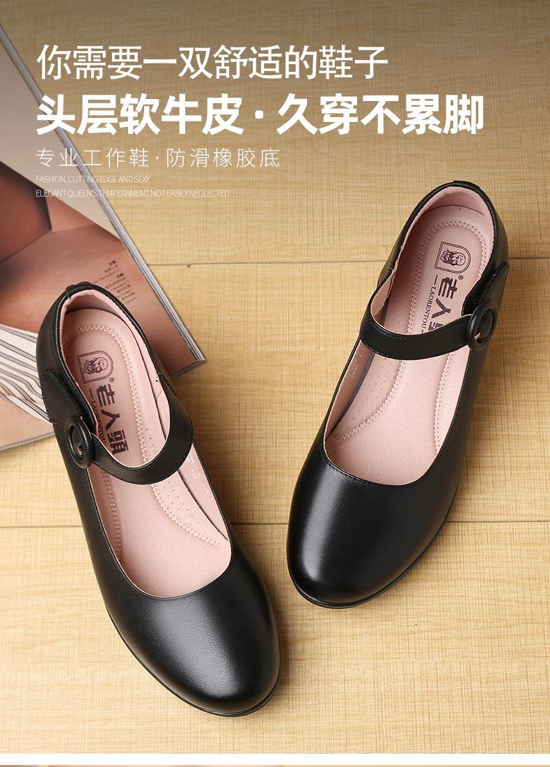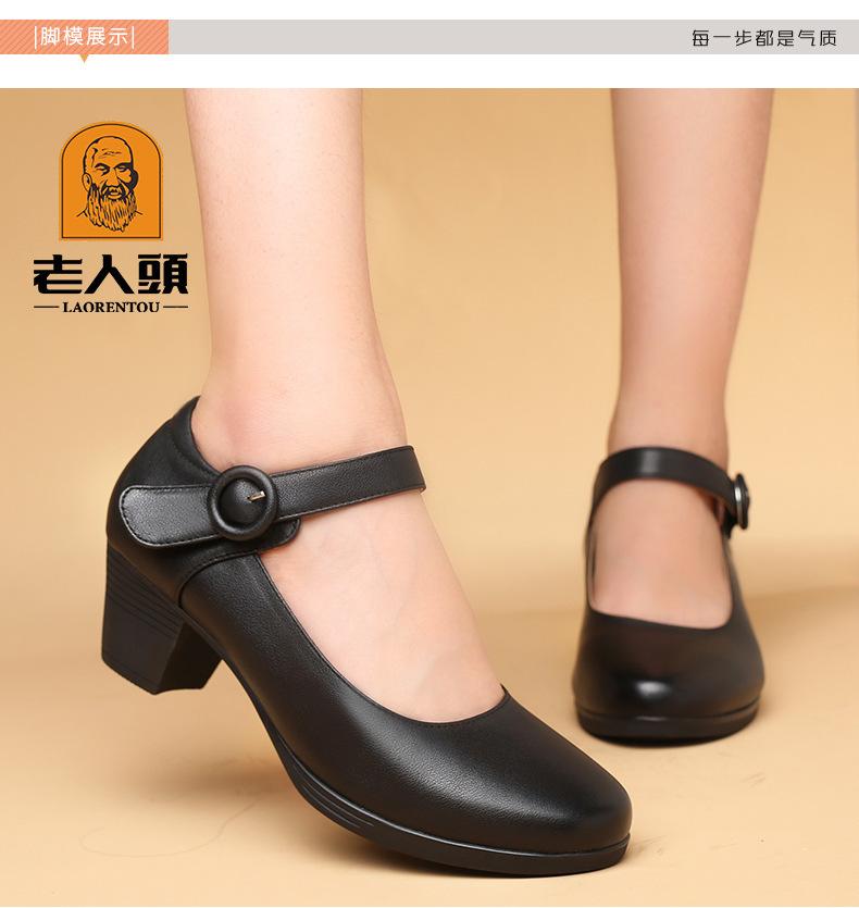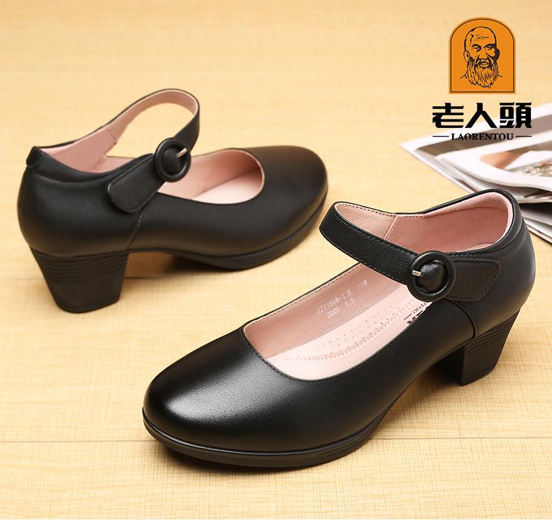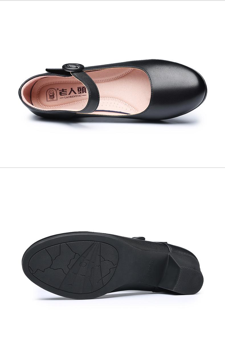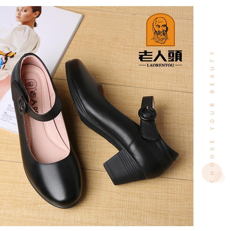 Zapatos Individuales de Mujer Cabeza de Hombre Viejo Nuevos Zapatos de Cuero de Otoño Zapatos Planos de Mujer Antideslizantes con Hebilla Cuero Vacuno Profesional Suela Suave J71506