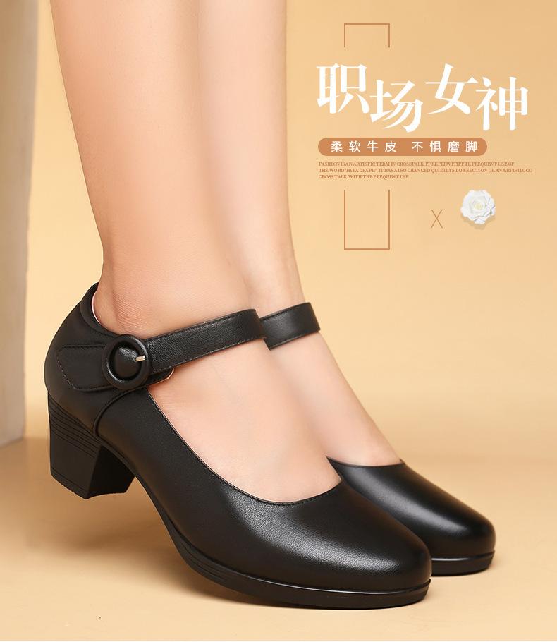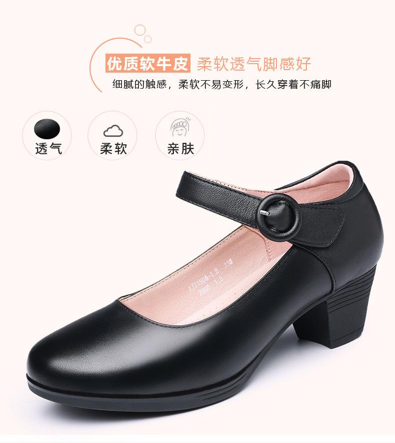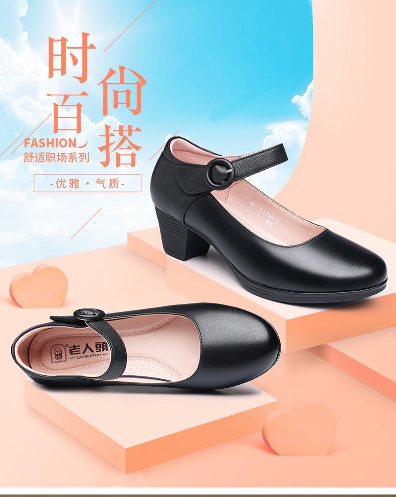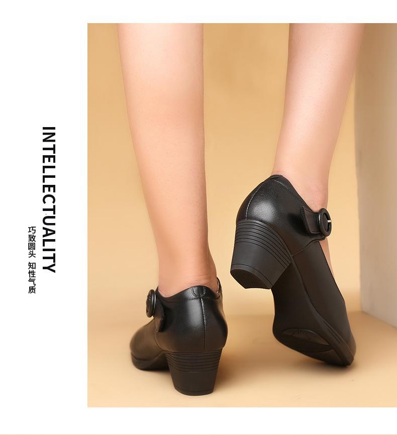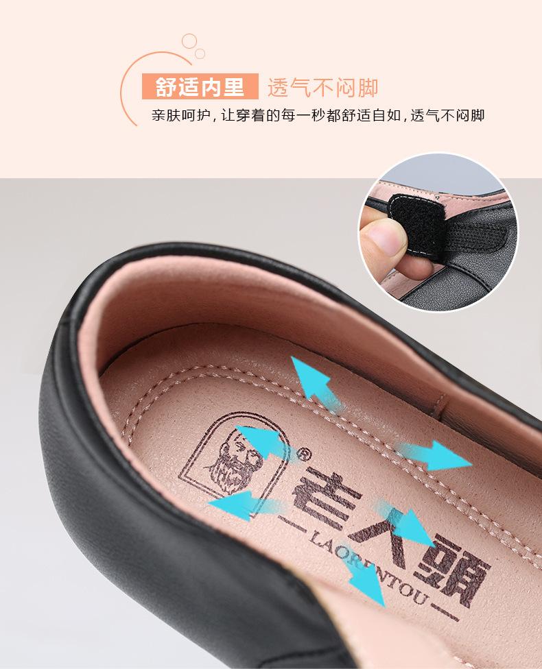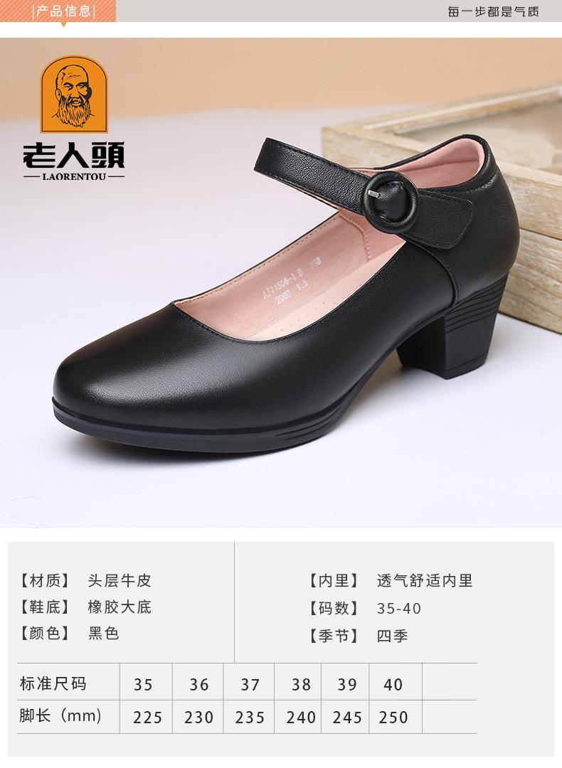 Zapatos Individuales de Mujer Cabeza de Hombre Viejo Nuevos Zapatos de Cuero de Otoño Zapatos Planos de Mujer Antideslizantes con Hebilla Cuero Vacuno Profesional Suela Suave J71506