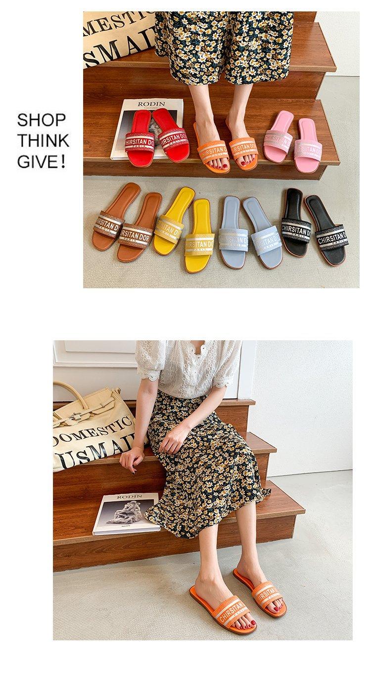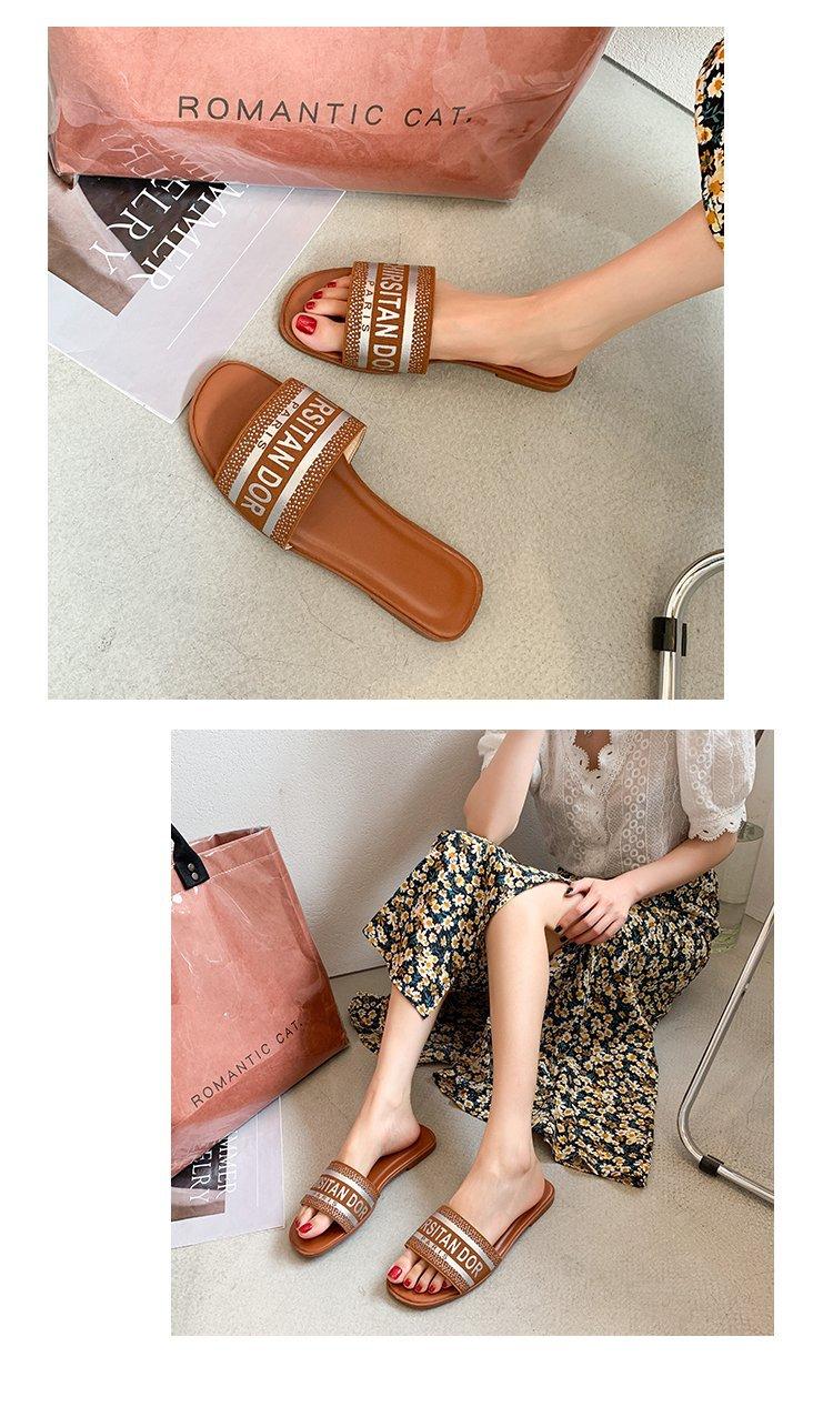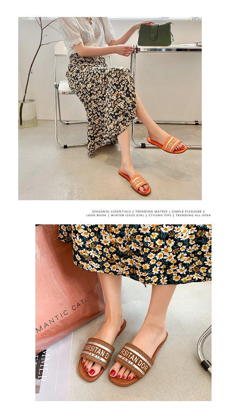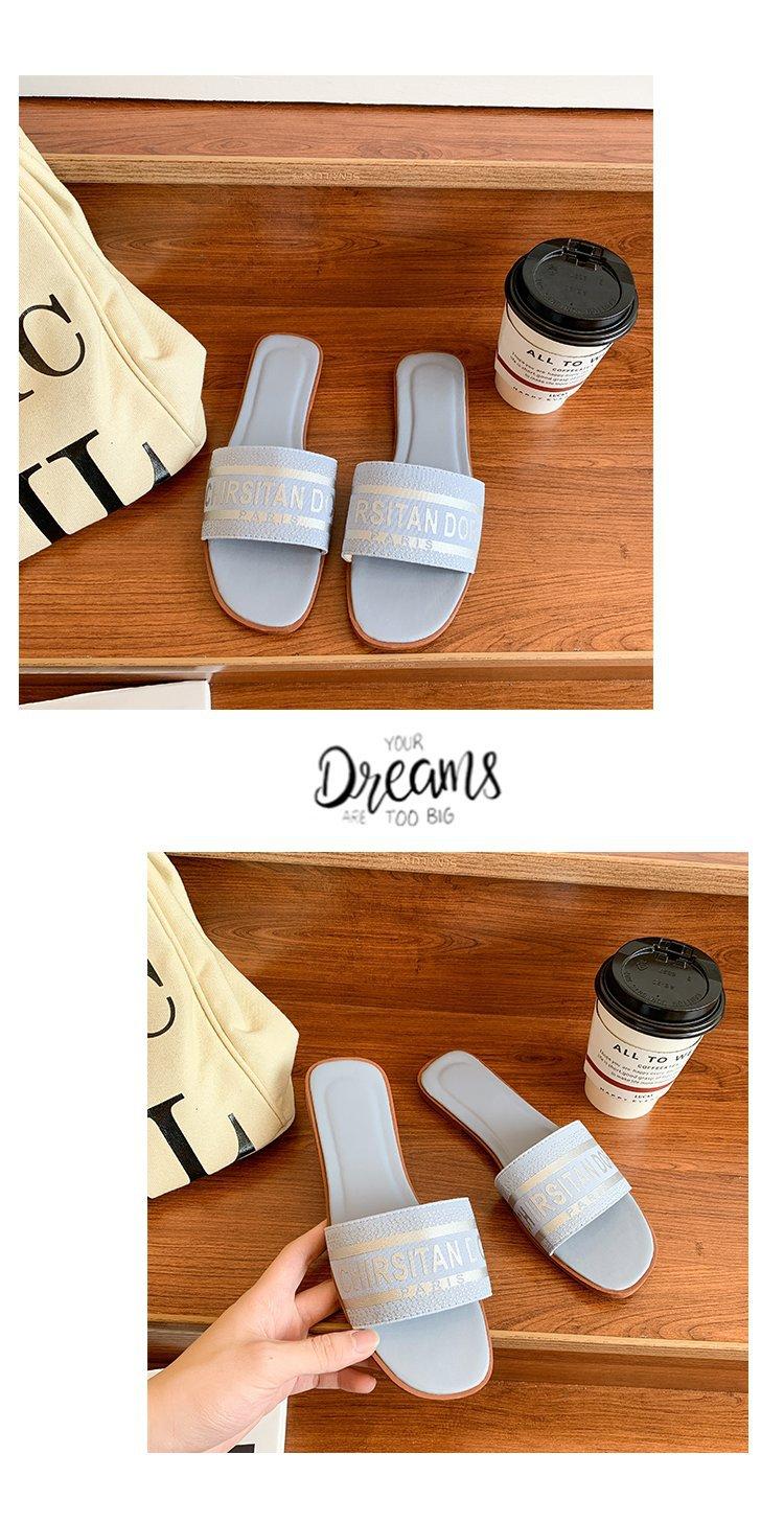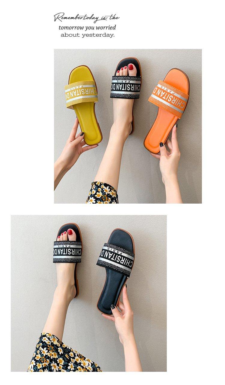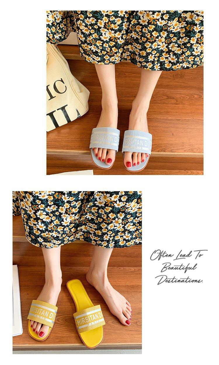 Verano Ropa Exterior Planas Viaje Playa Casual Zapatos de Mujer Ins Suela Versátil Pantuflas Sandalias de Letras Bordadas