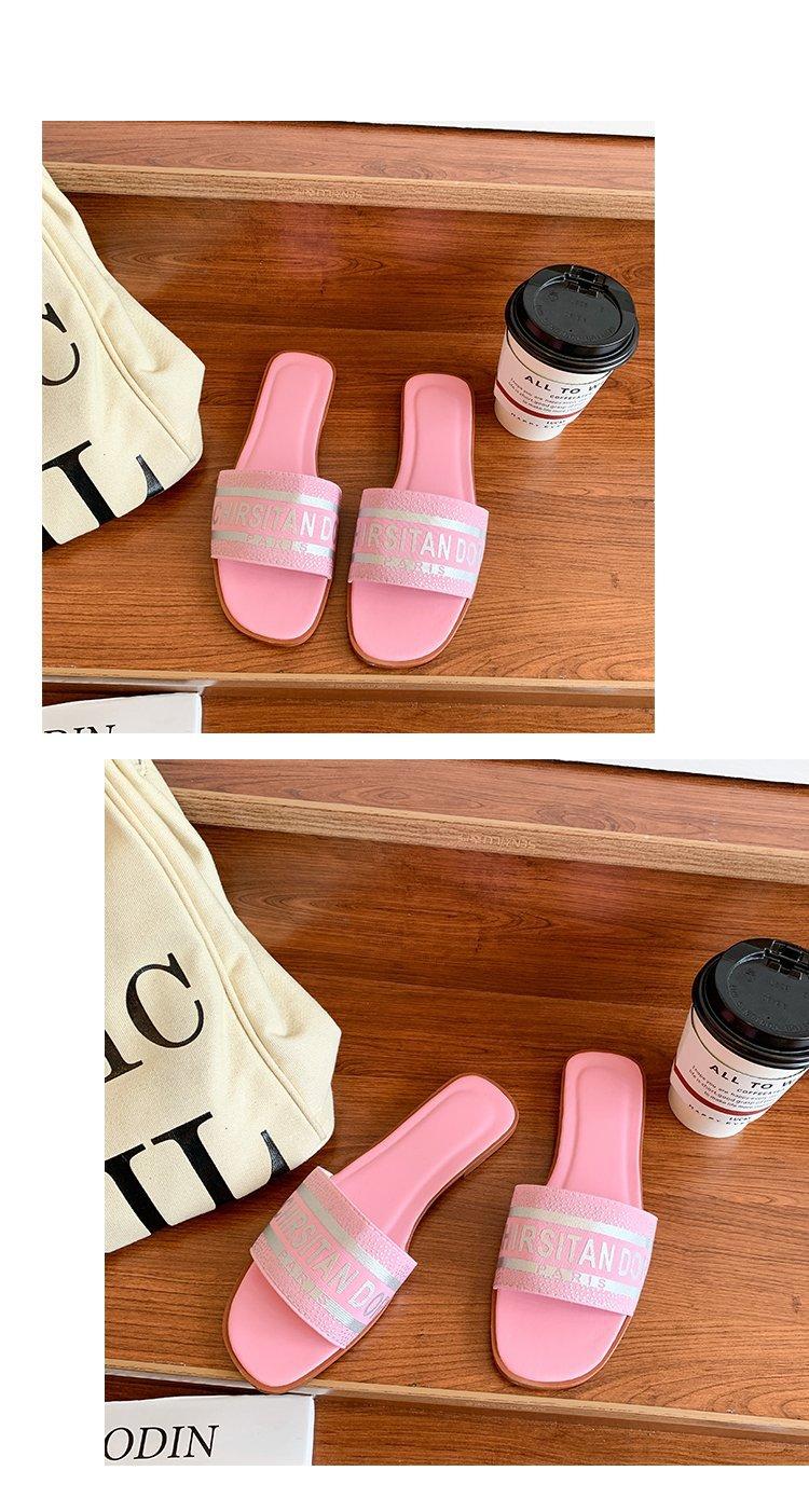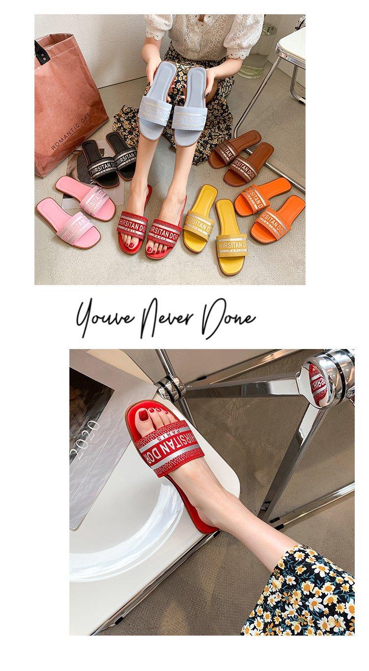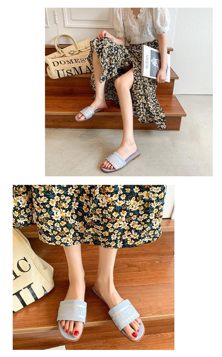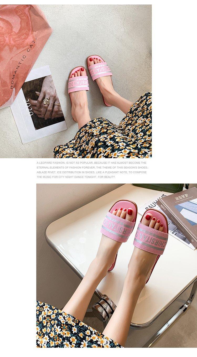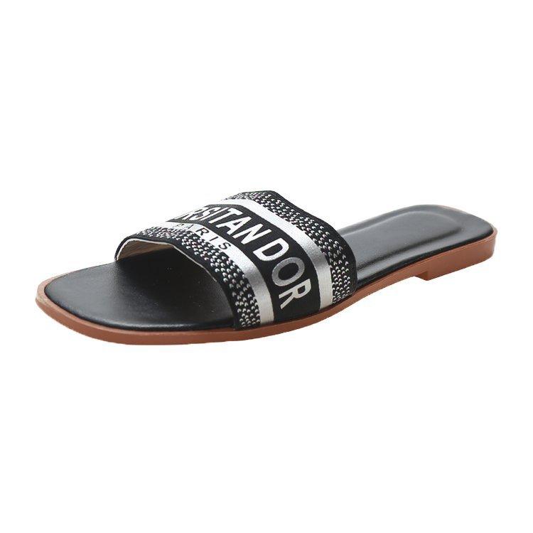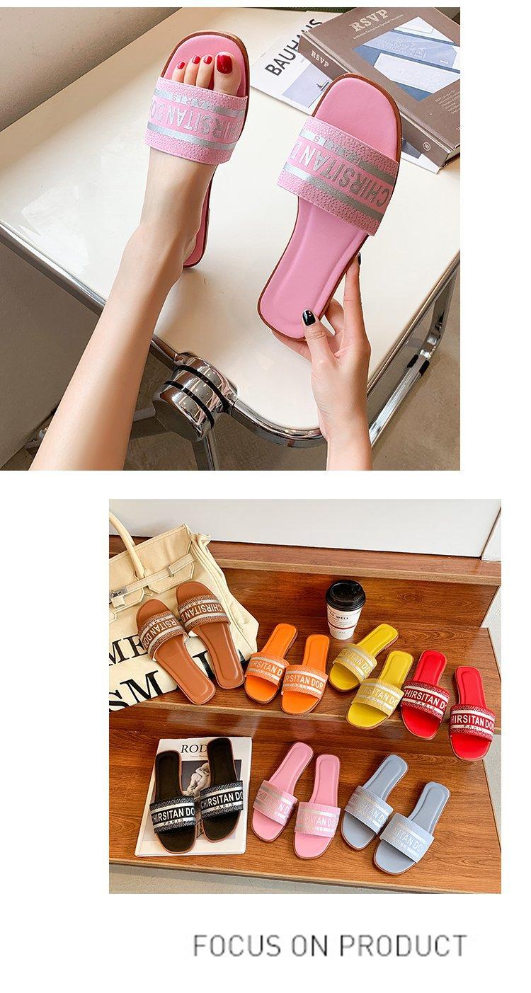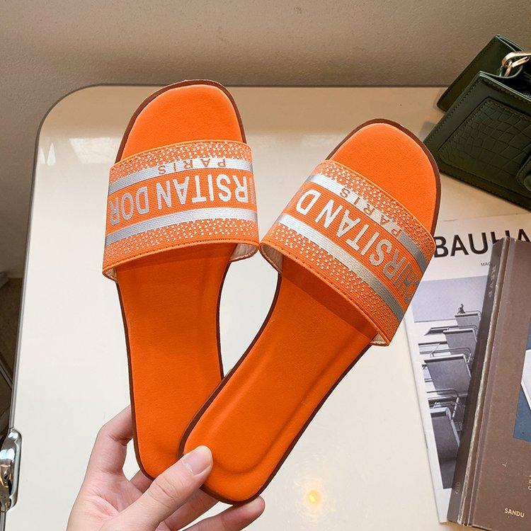Verano Ropa Exterior Planas Viaje Playa Casual Zapatos de Mujer Ins Suela Versátil Pantuflas Sandalias de Letras Bordadas