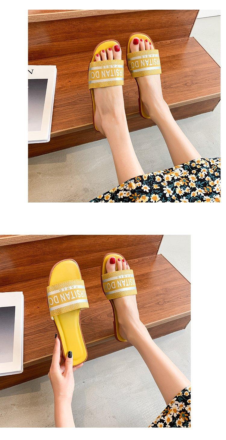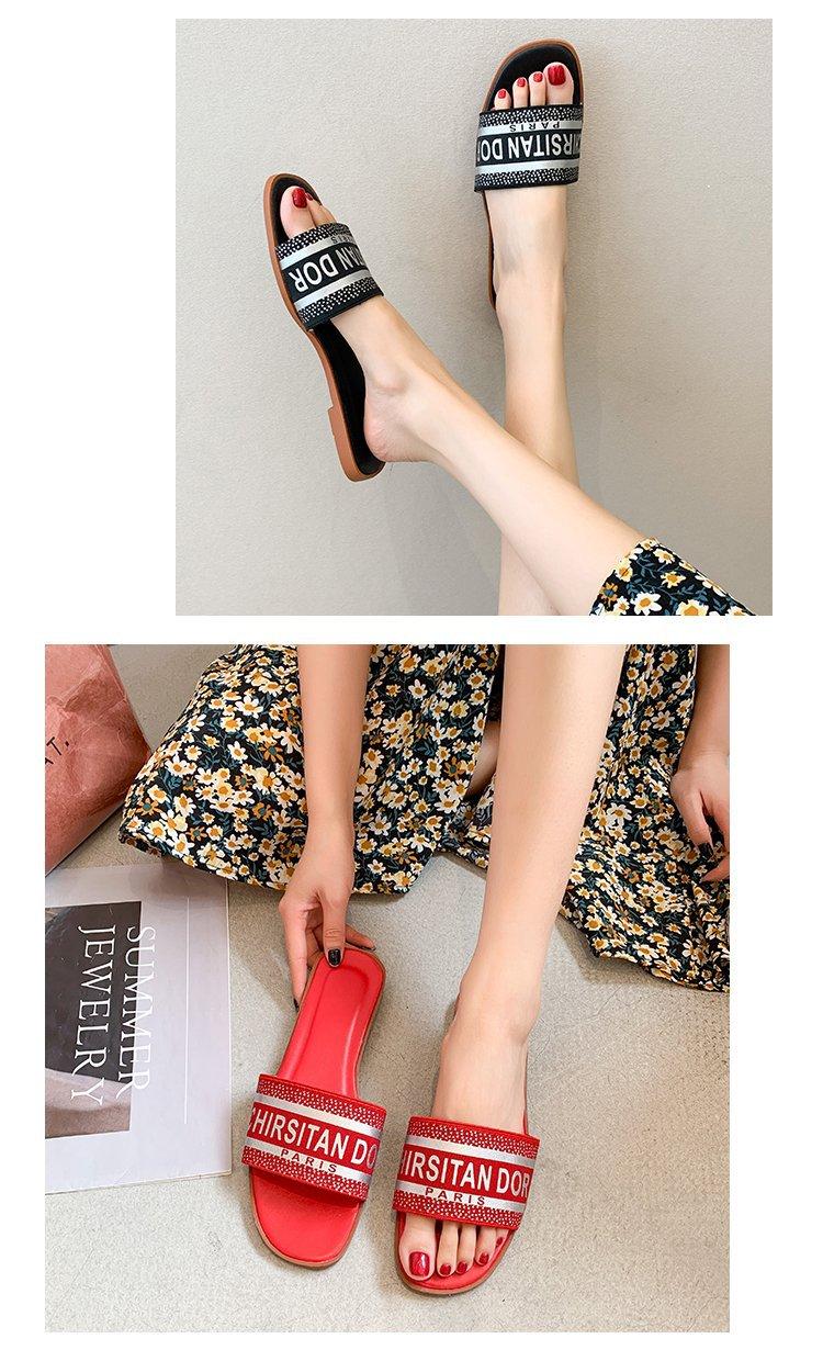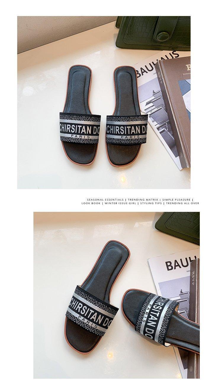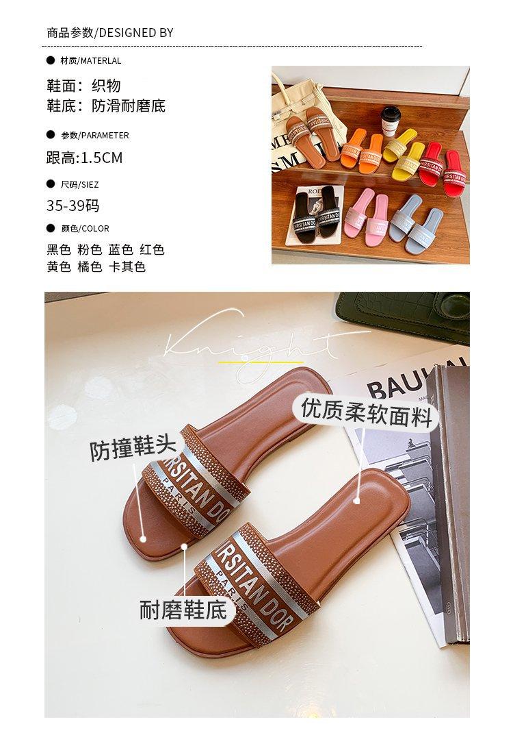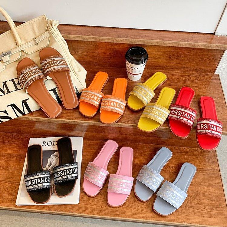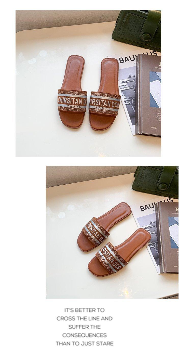 Verano Ropa Exterior Planas Viaje Playa Casual Zapatos de Mujer Ins Suela Versátil Pantuflas Sandalias de Letras Bordadas