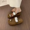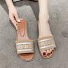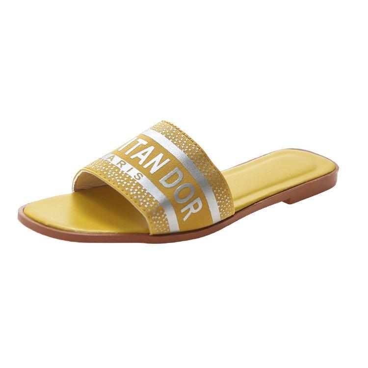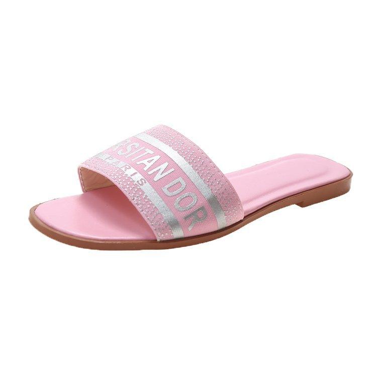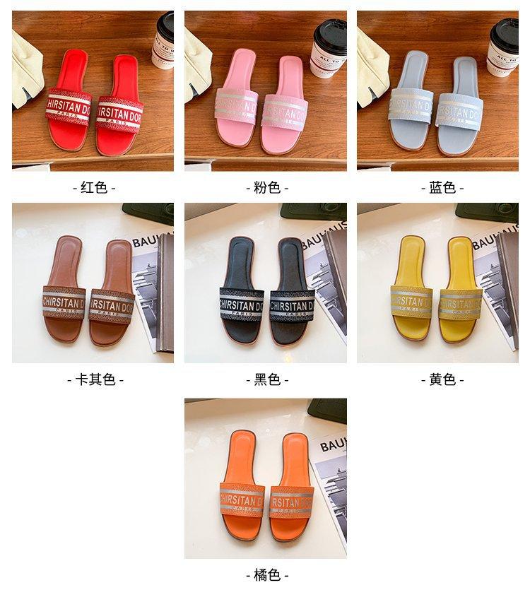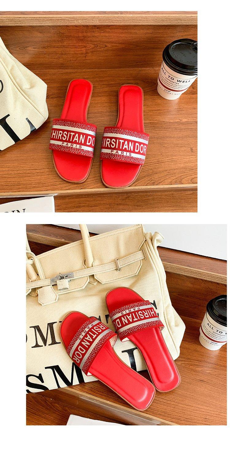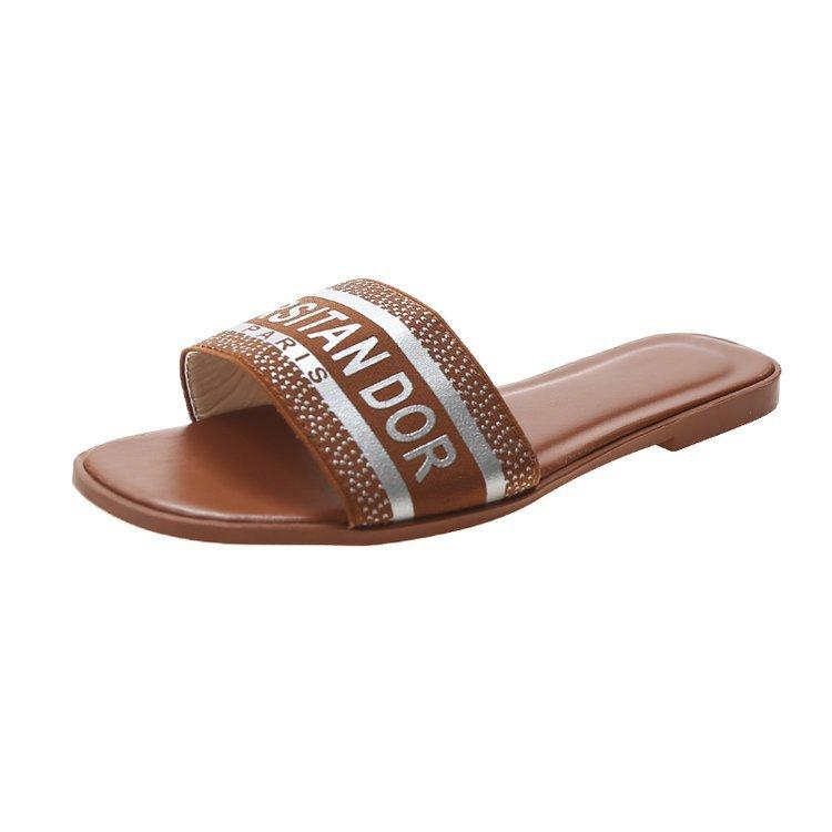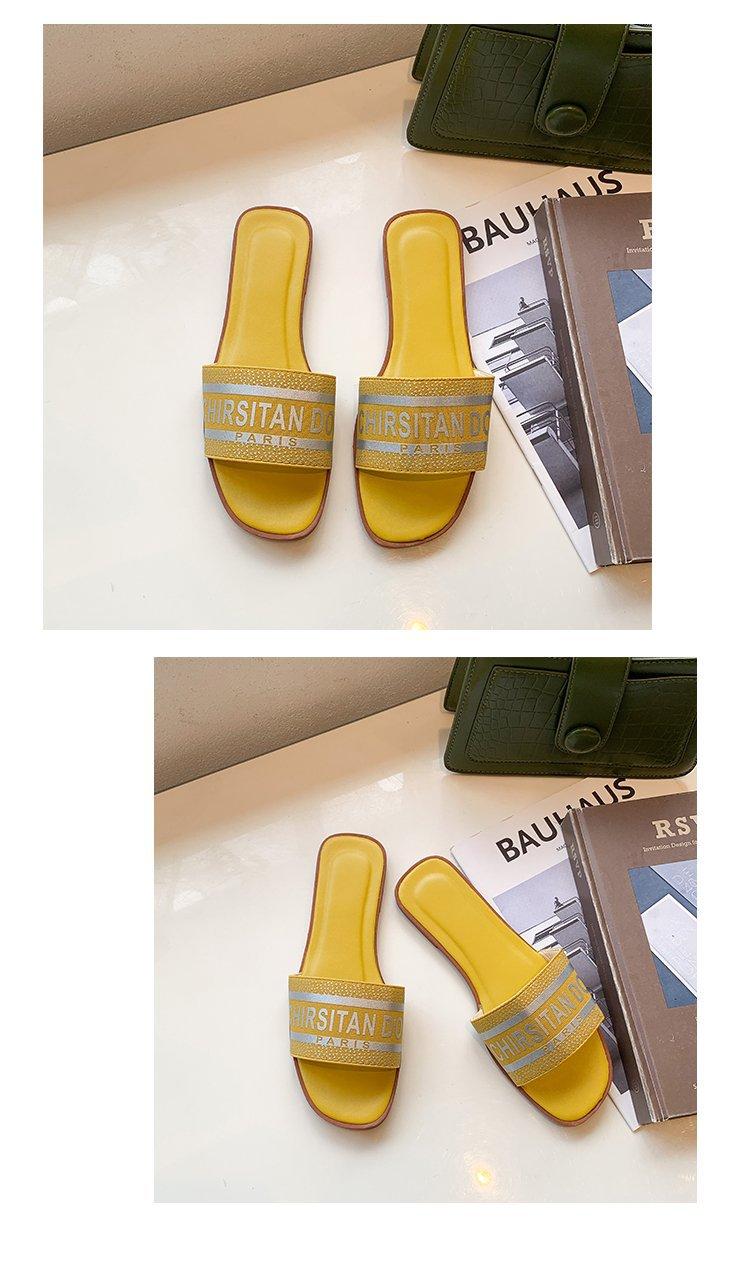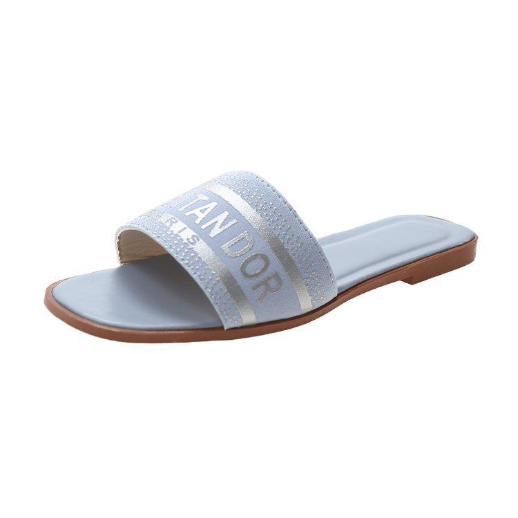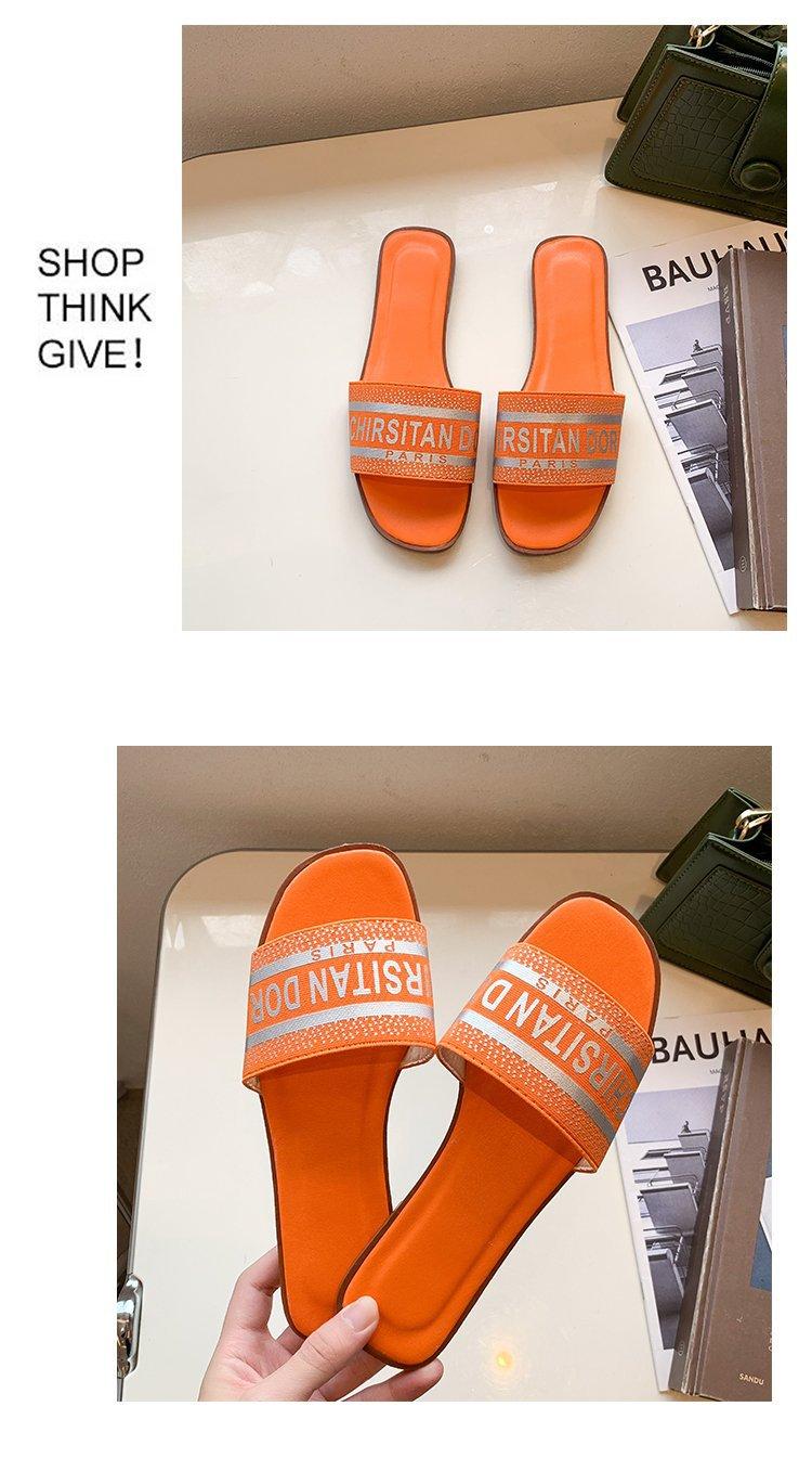 Verano Ropa Exterior Planas Viaje Playa Casual Zapatos de Mujer Ins Suela Versátil Pantuflas Sandalias de Letras Bordadas