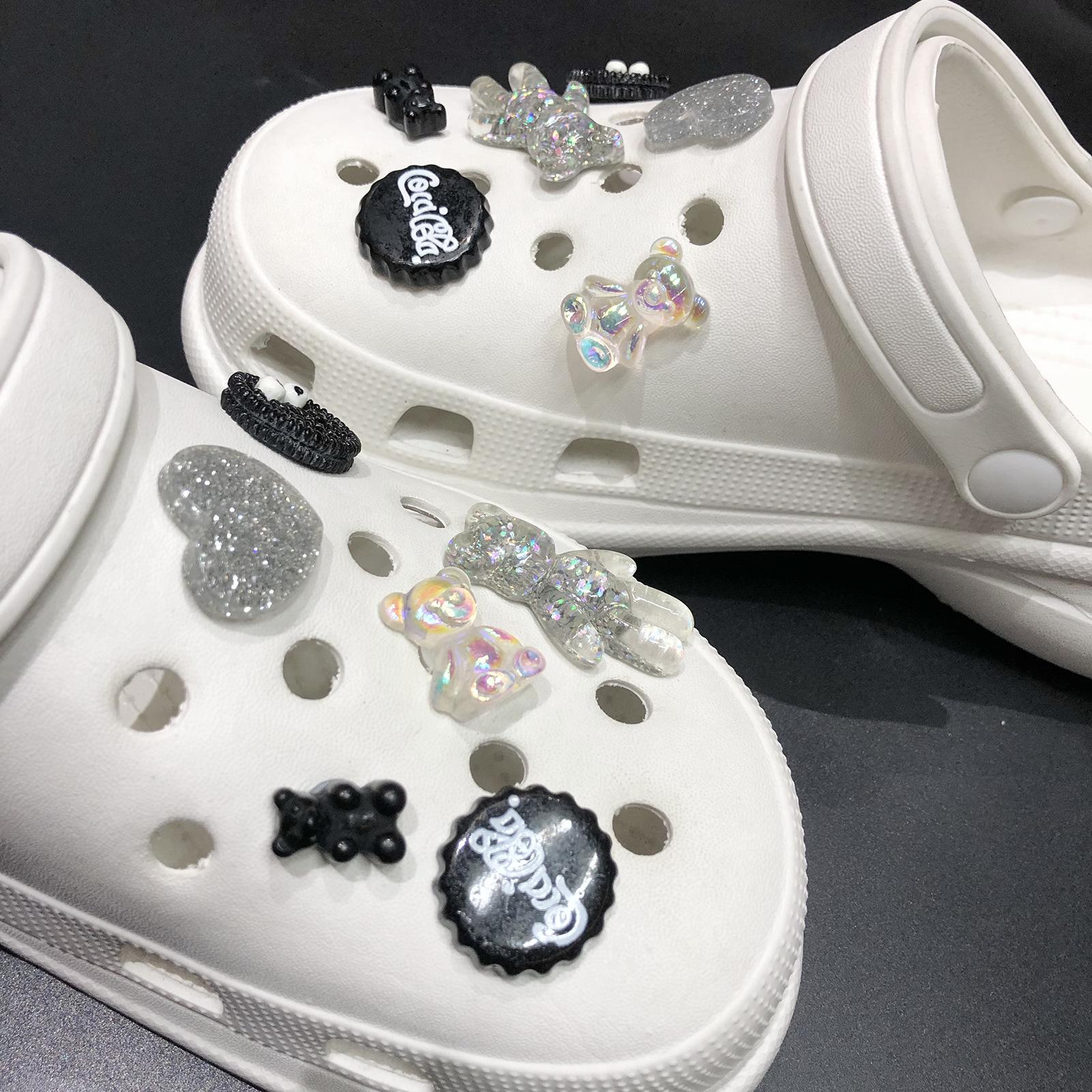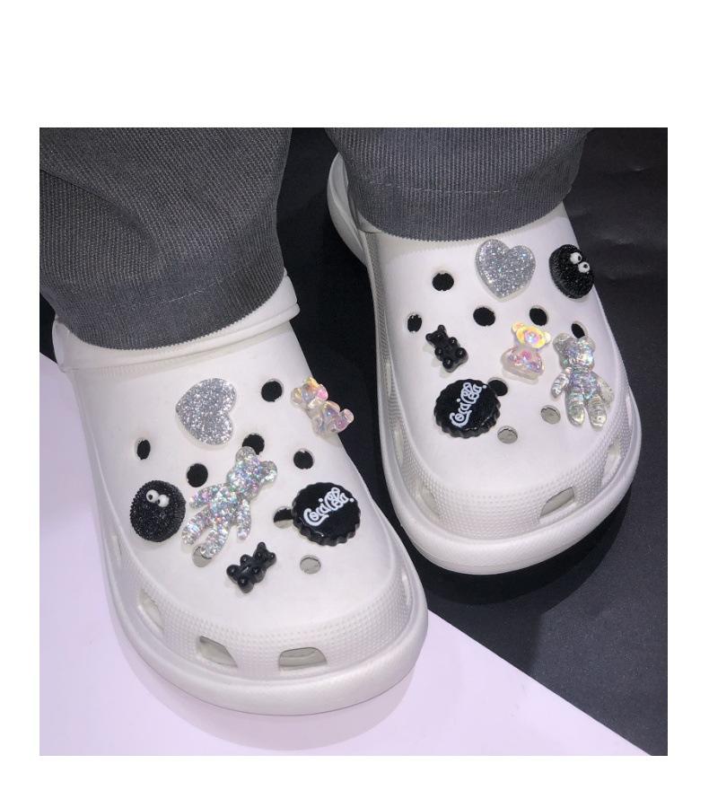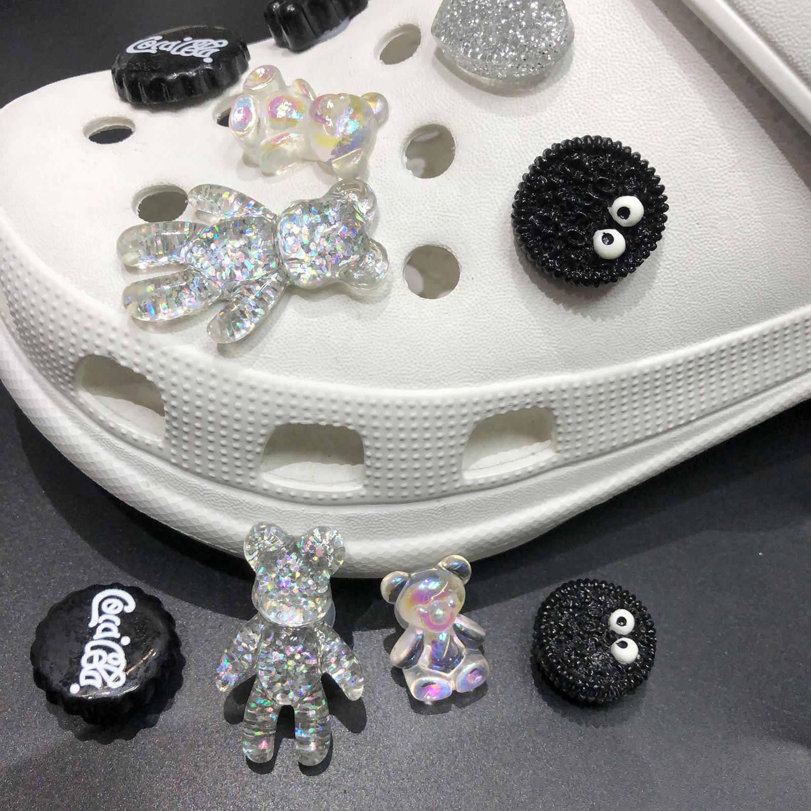 Hebilla de zapato DIY con agujero cruzado, diseño de oso colorido, flor de zapato, hebilla decorativa extraíble, traje
