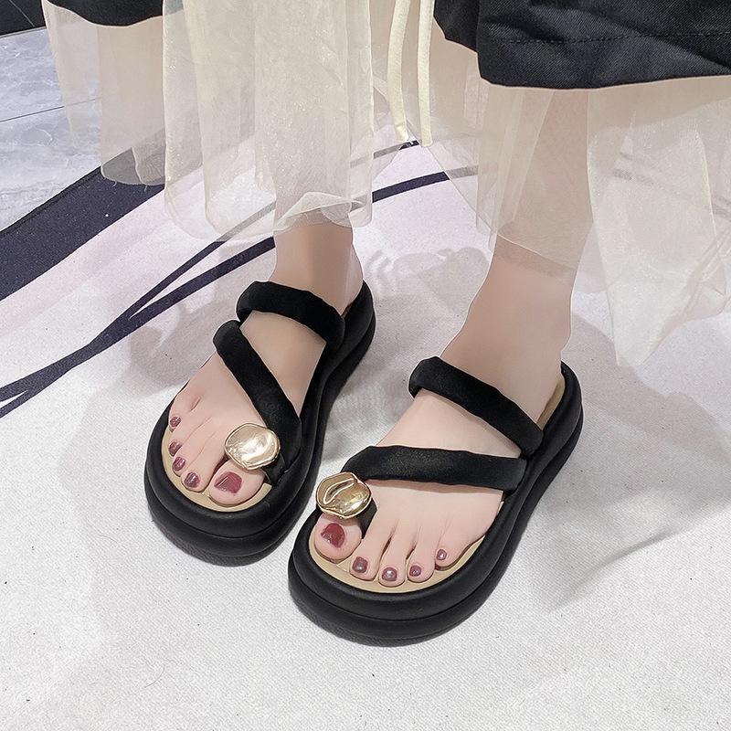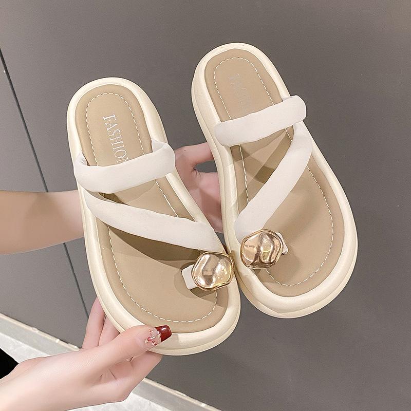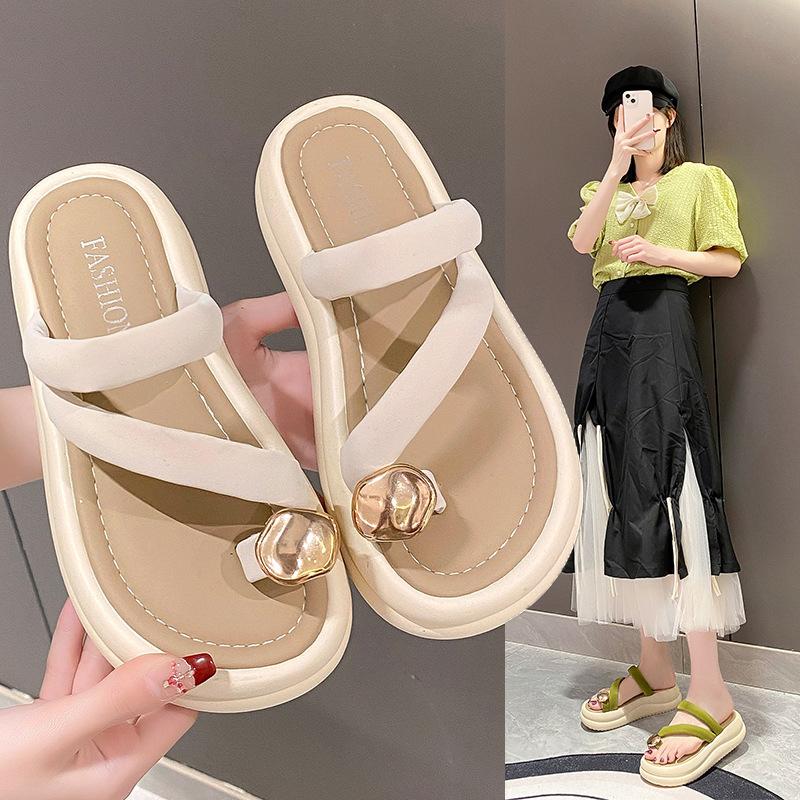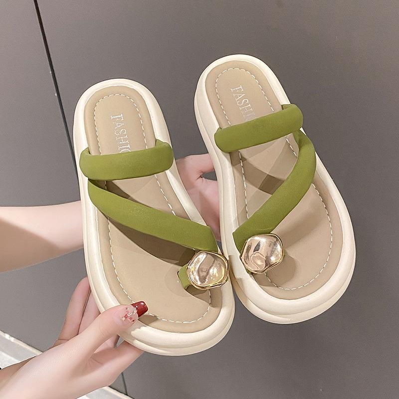 Pantuflas de punta para mujer, novedad de verano 2024, de metal, con suela gruesa, pequeñas, cómodas y casuales, para playa, de moda para mujer.