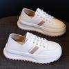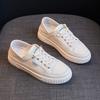 Tenis de Suela Gruesa de Cuero Genuino, Zapatos Blancos para Mujer, Primavera 2025 Nuevo Versátil con Cordones Punta Redonda Suela Blanda Zapatos Deportivos Casuales