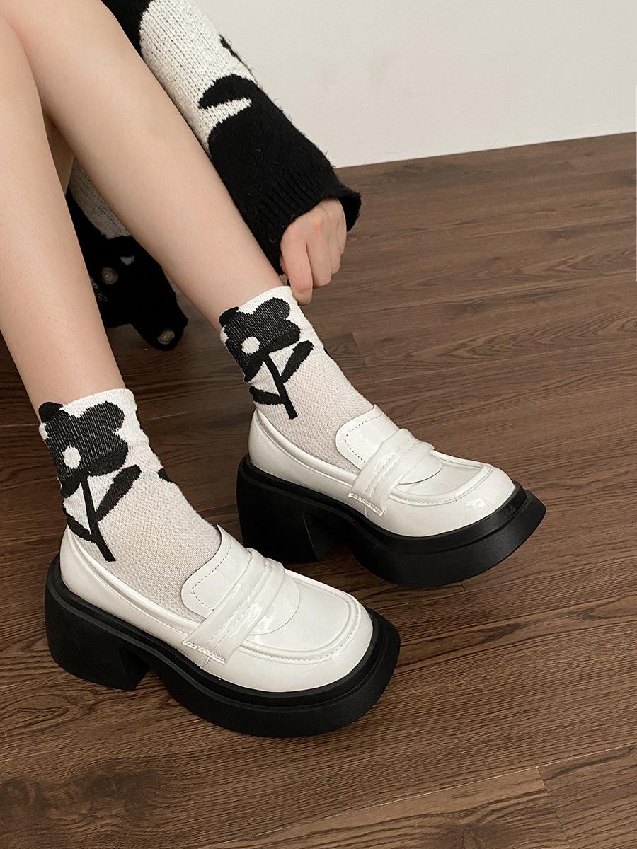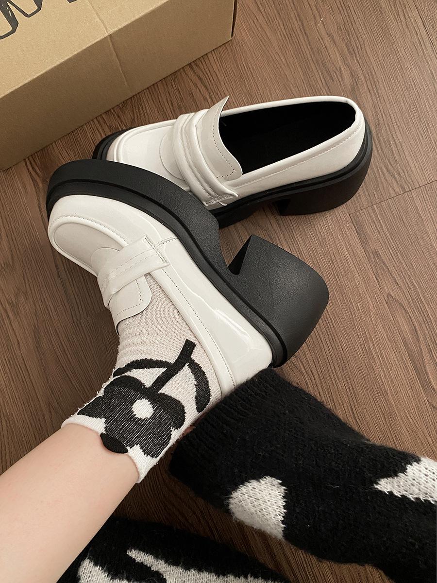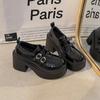 Zapatos Pequeños de Cuero Estilo Francés para Mujer, Nuevos Modelos Primavera y Otoño 2025, Tacón Grueso, Punta Cuadrada, Mocasines de Alta Gama, Zapatos Individuales, Artículos de Venta Caliente