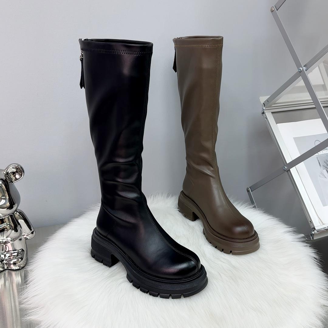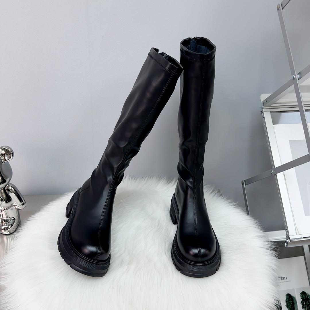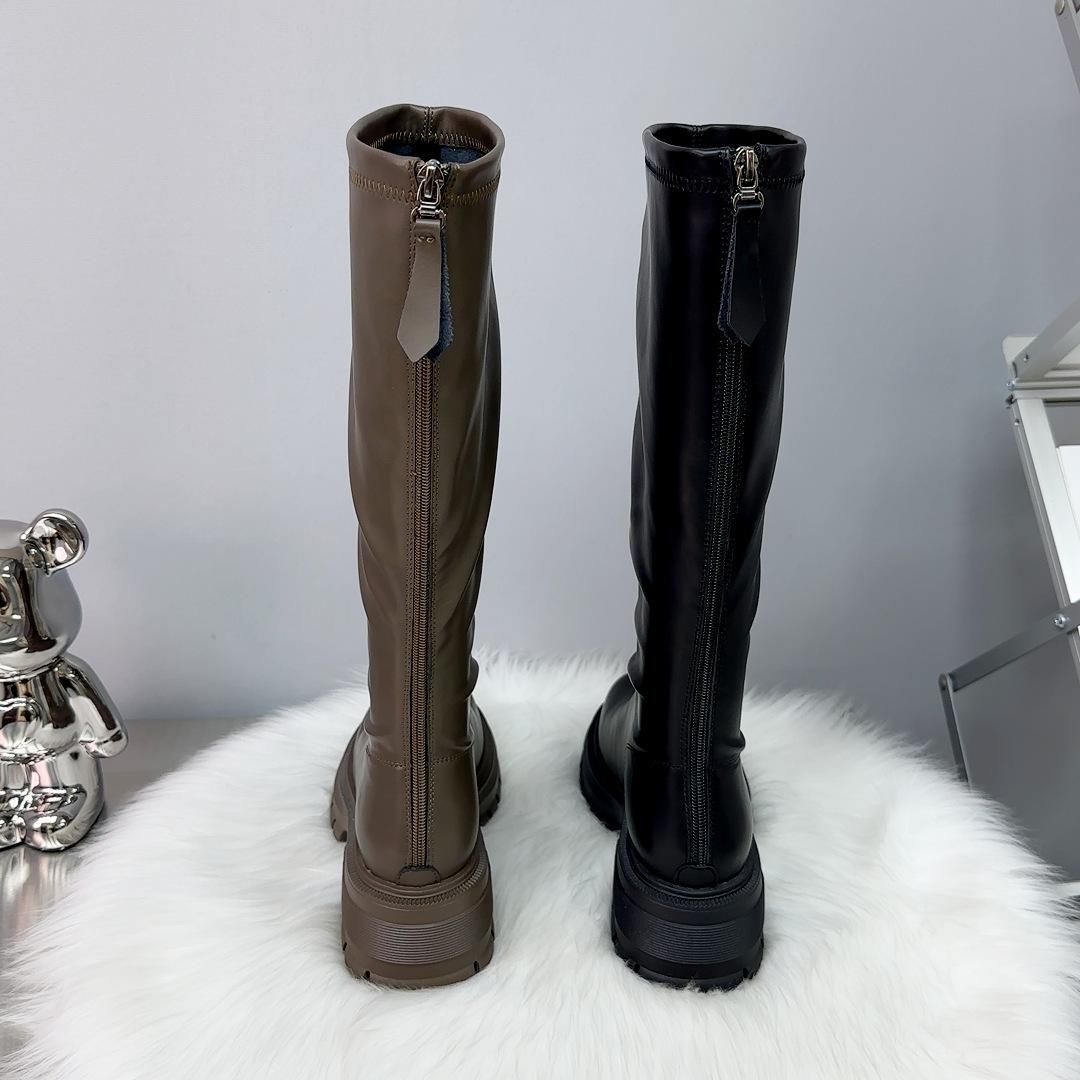 Botas Largas Otoño 2023 Botas Altas de Caballero Suela Gruesa Aumento de Altura Botas de Mujer Cremallera Trasera Botas Finas Botas de Cuero para Mujer