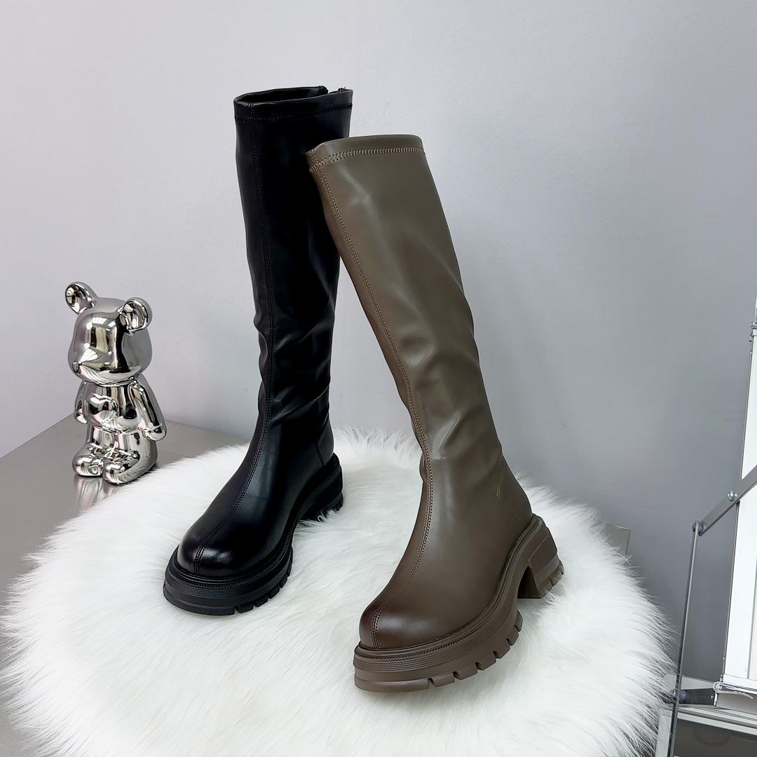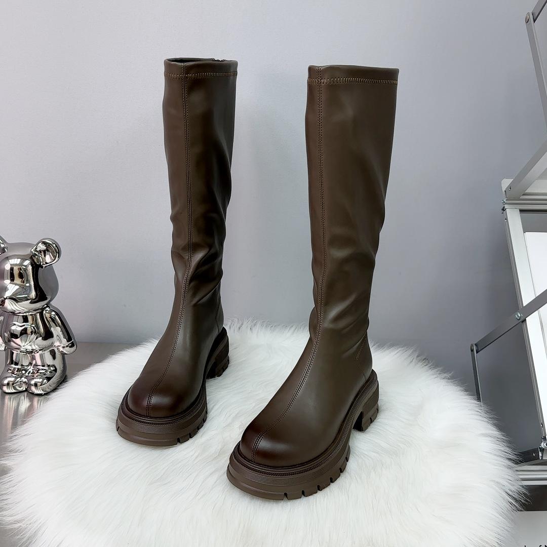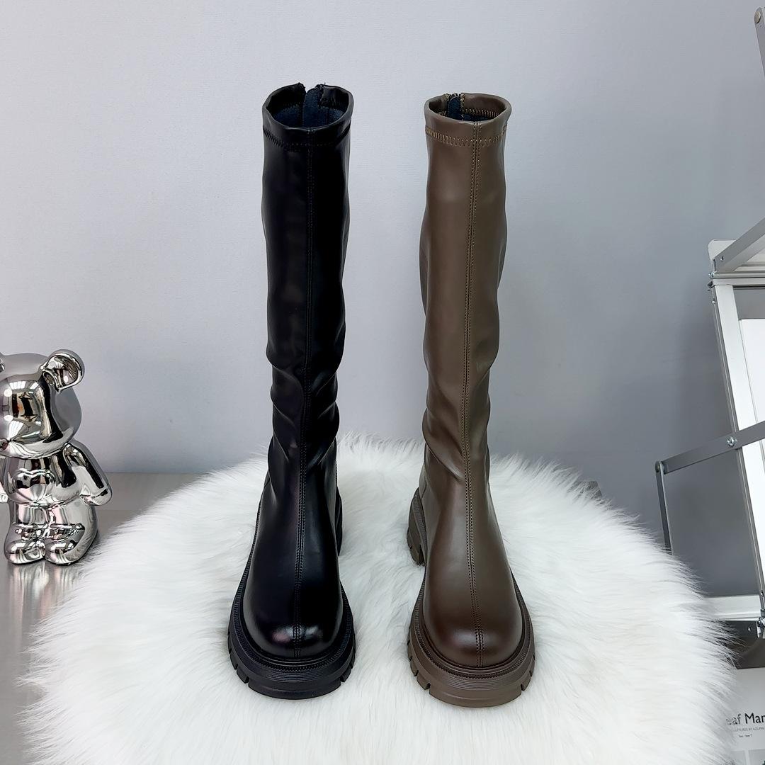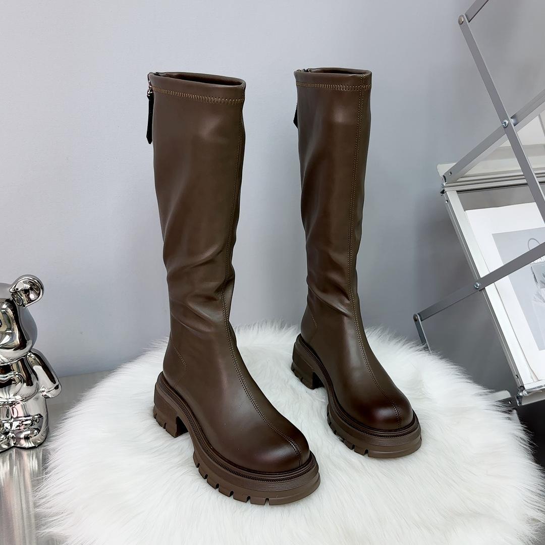 Botas Largas Otoño 2023 Botas Altas de Caballero Suela Gruesa Aumento de Altura Botas de Mujer Cremallera Trasera Botas Finas Botas de Cuero para Mujer
