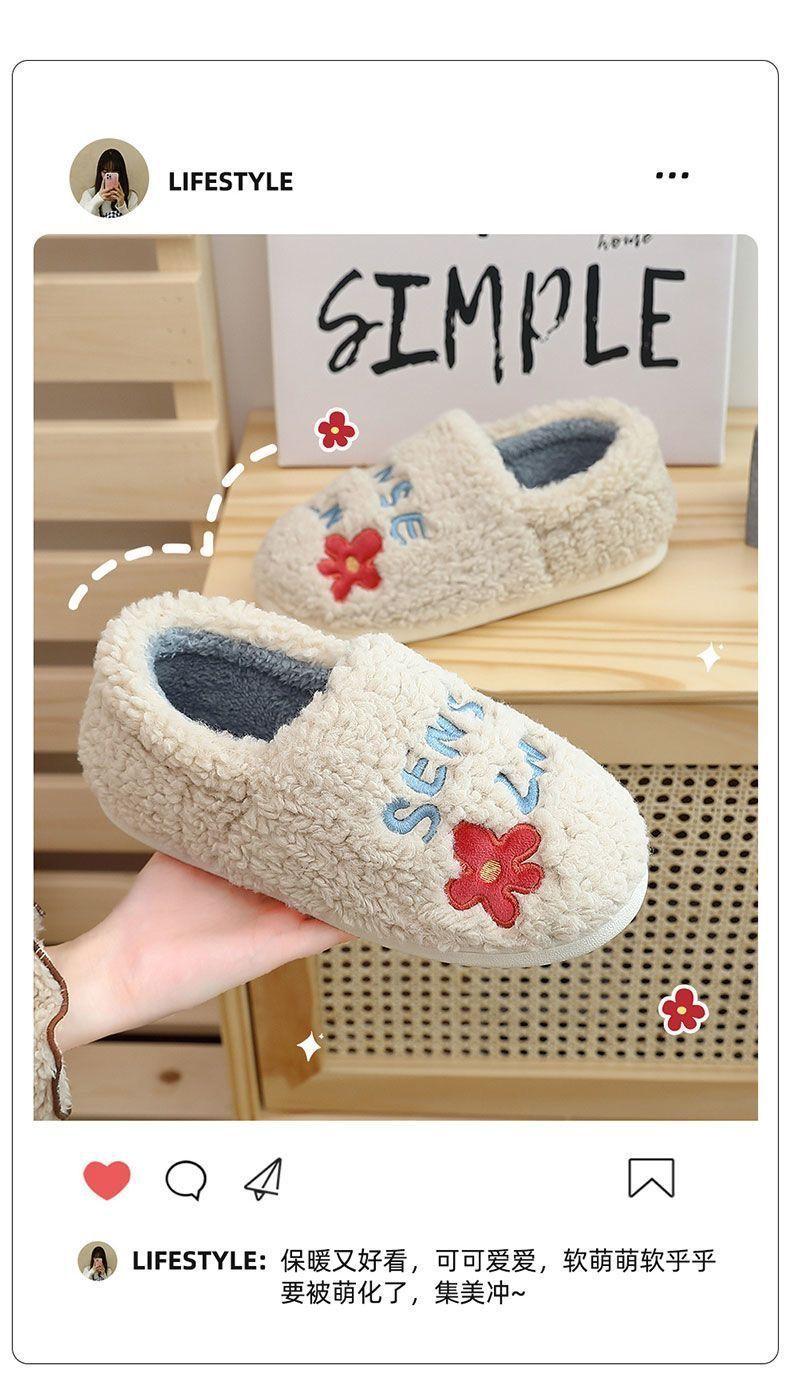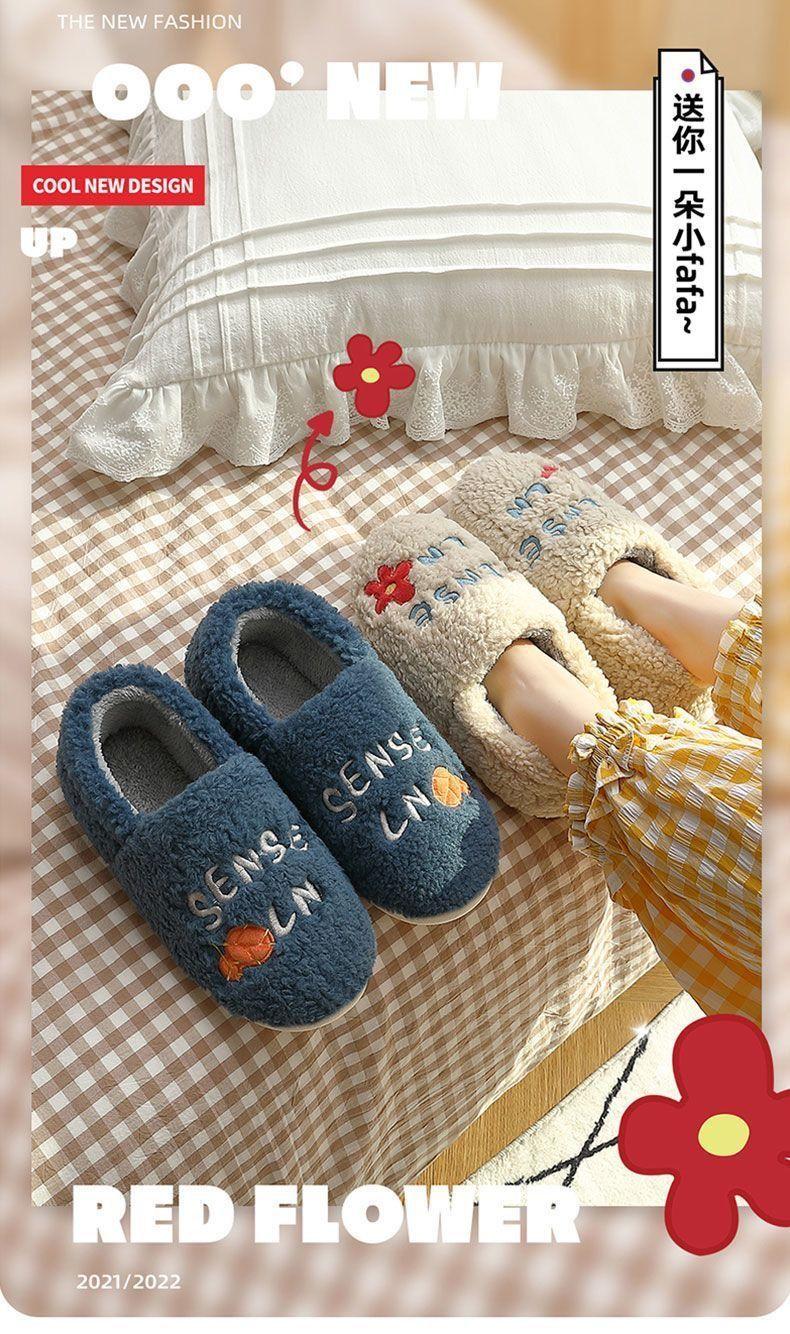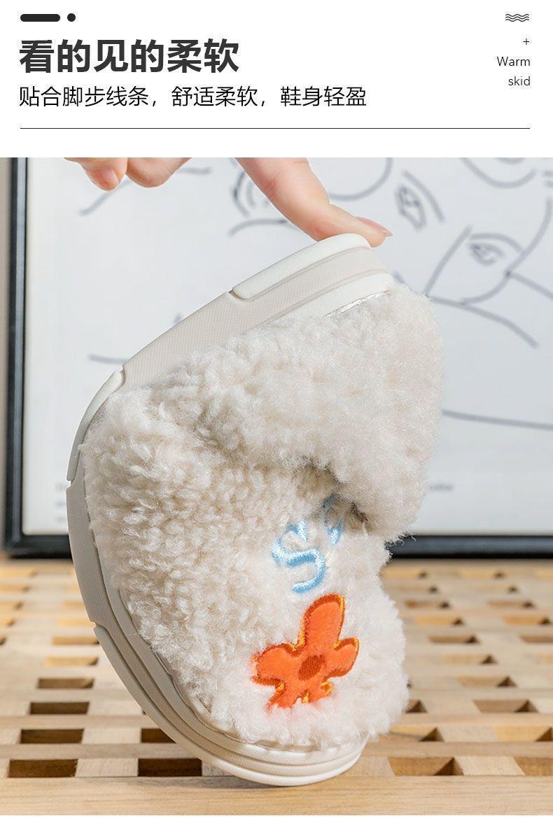 Pantuflas de algodón de felpa cálidas para otoño e invierno, para el hogar, para parejas, gruesas, antideslizantes, con tacón de luna, zapatos Mao Mao para mujer