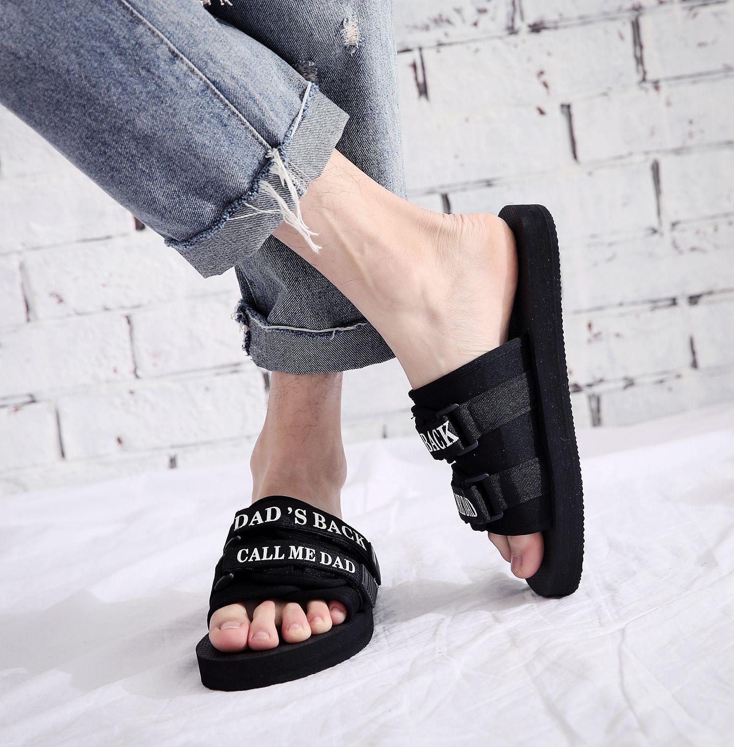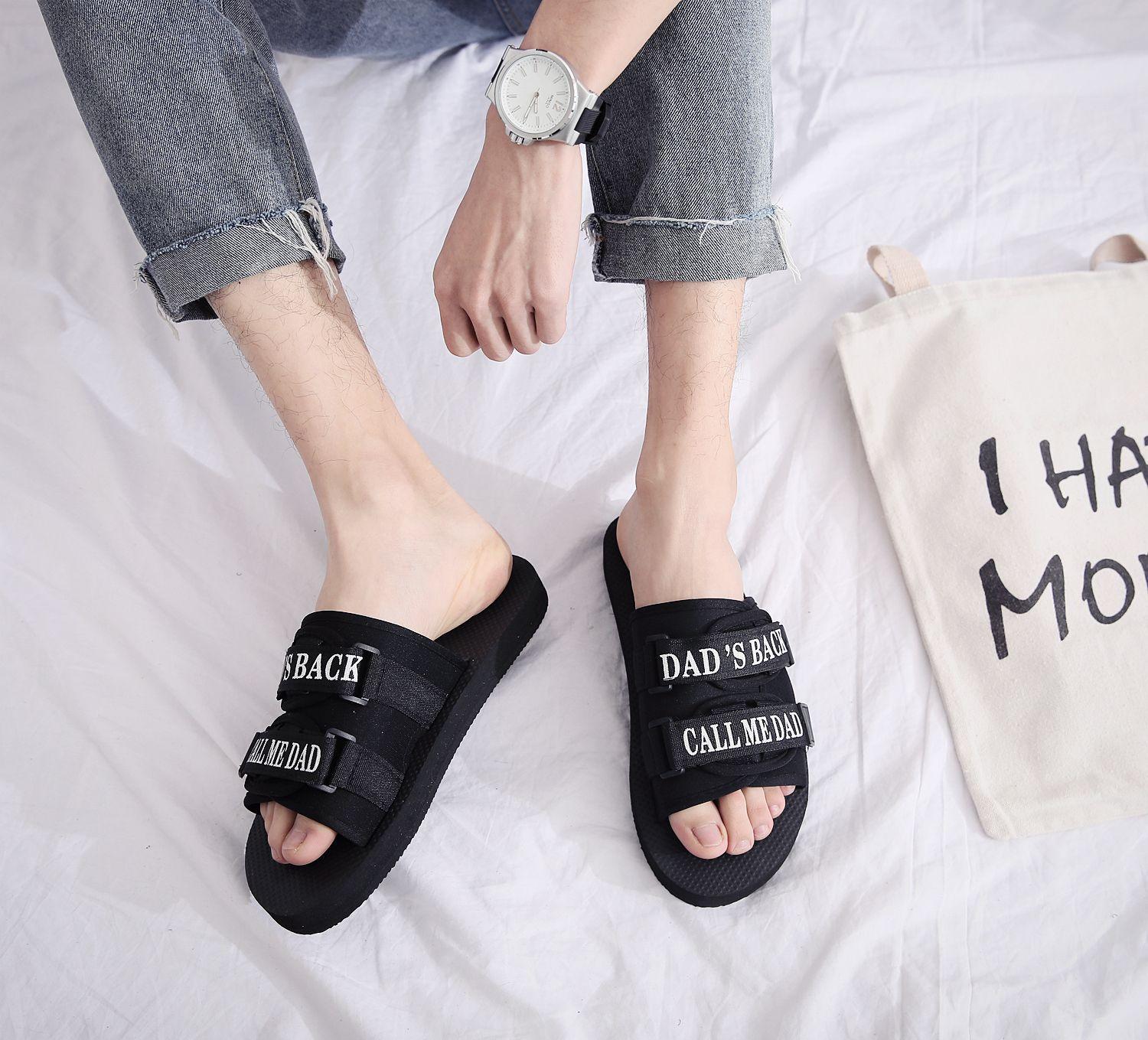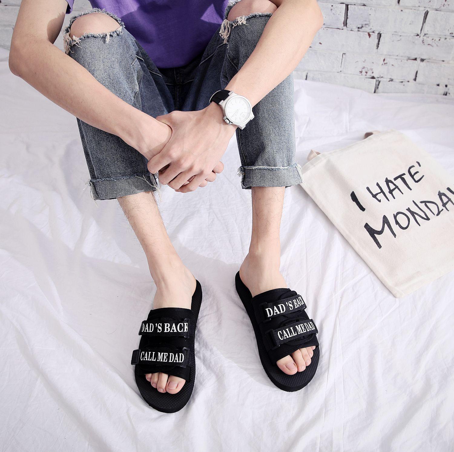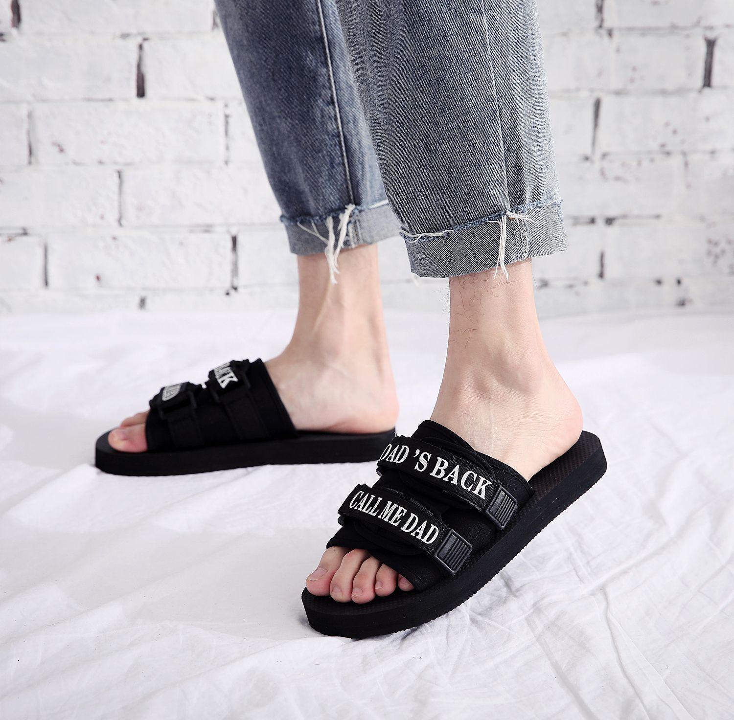 Zapatillas Nuevas Transfronterizas Celebridad de Internet Pareja Moda Estudiante Trendy Estilo Coreano Zapatos de Playa para Exterior Carta Zapatillas Vietnam