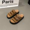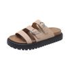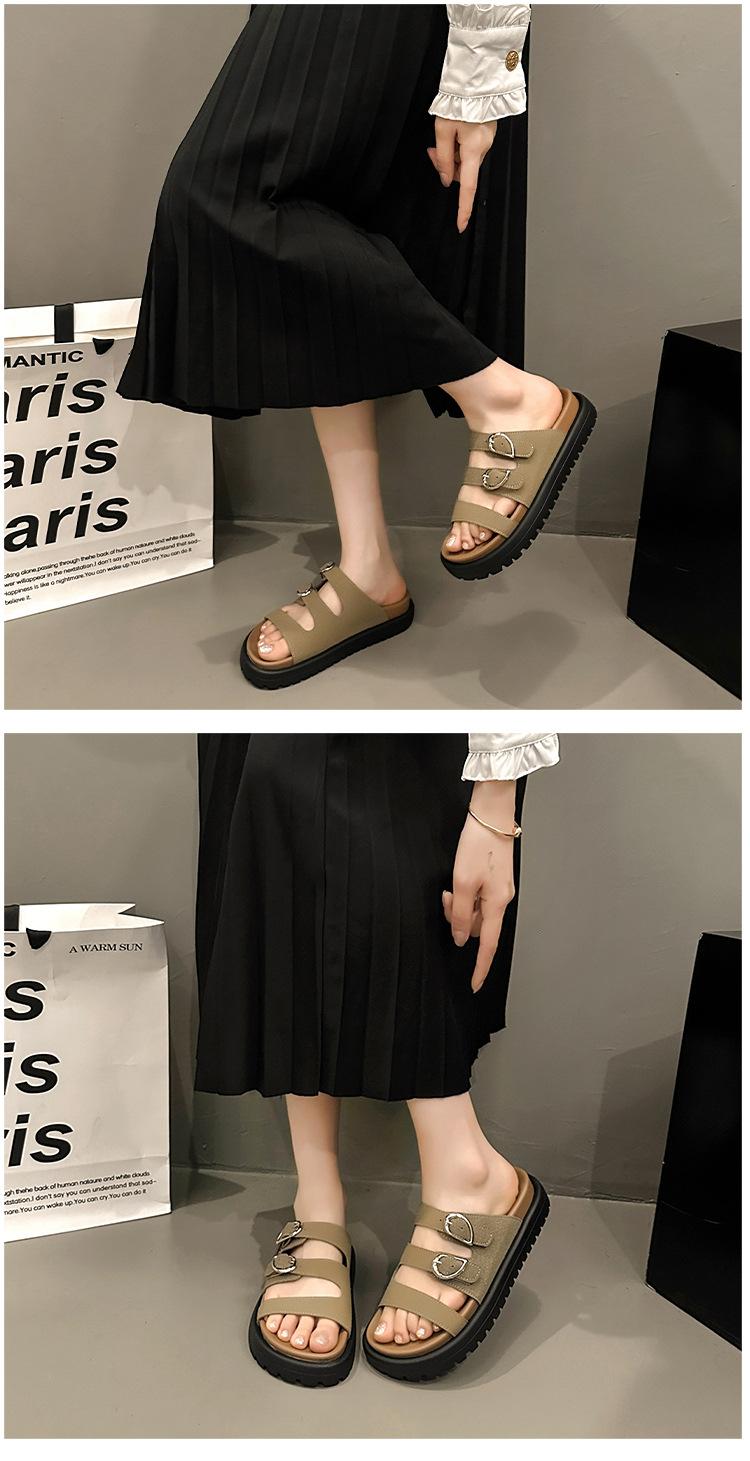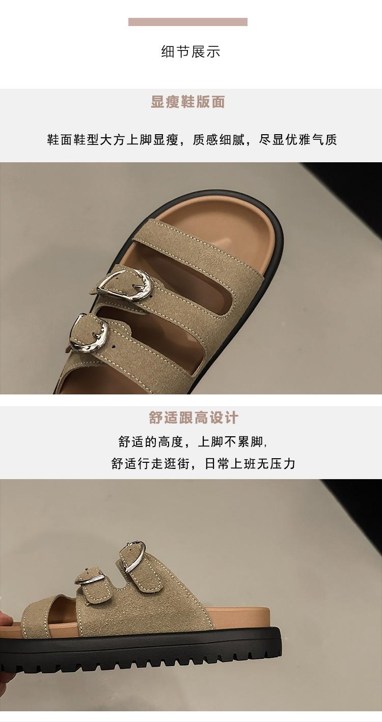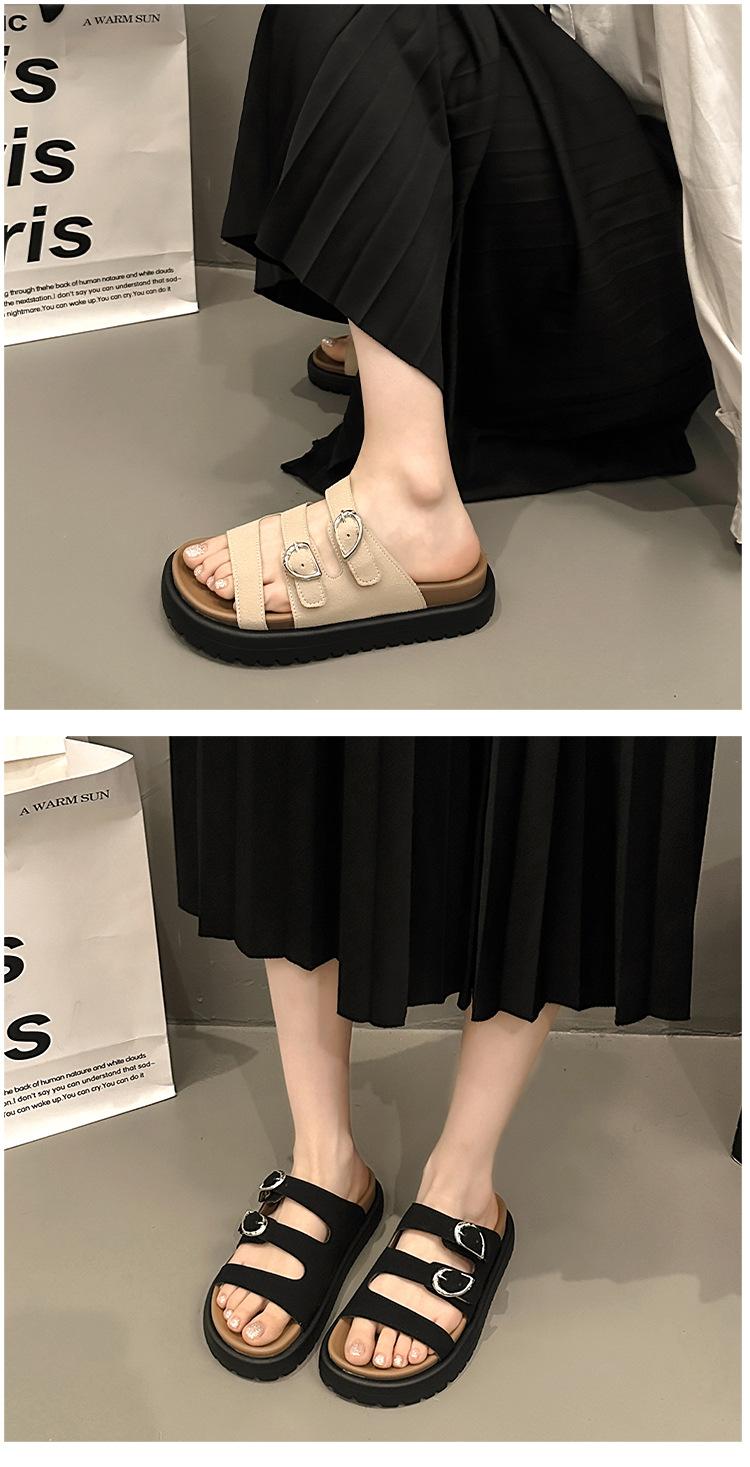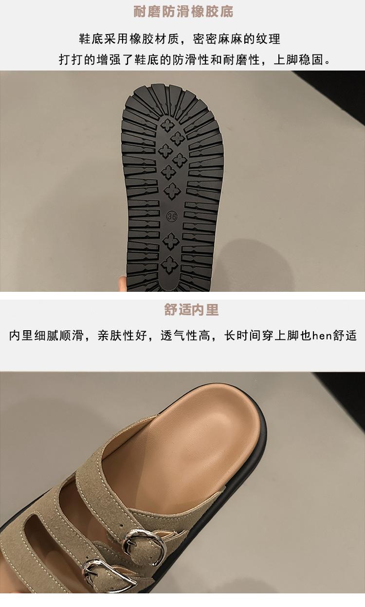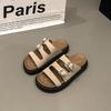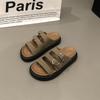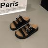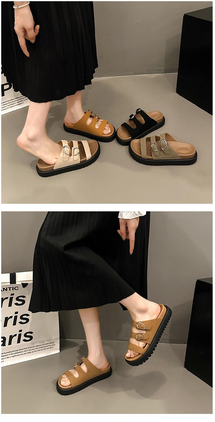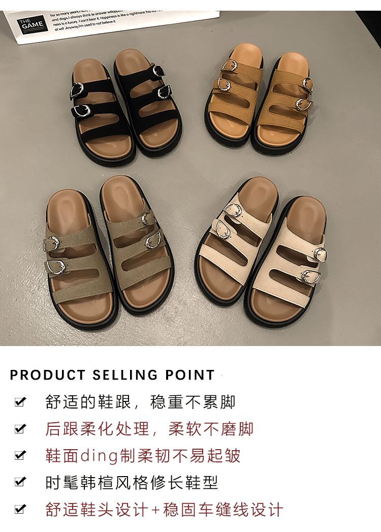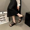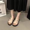 Sandalias de playa con hebilla de una palabra para mujer, estilo retro artístico de verano 2024, suela gruesa de goma con punta abierta
