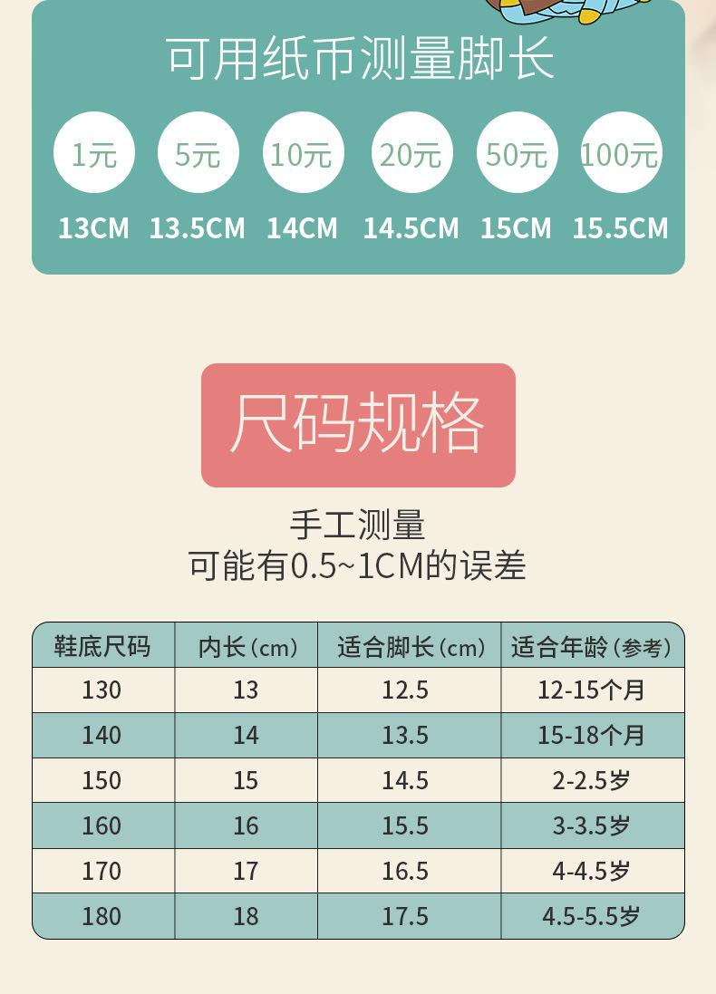 130 (inner length 13cm for about 12-15 months), 140 (14cm in length for 15-18 months), 150 (inner length 15cm ...