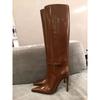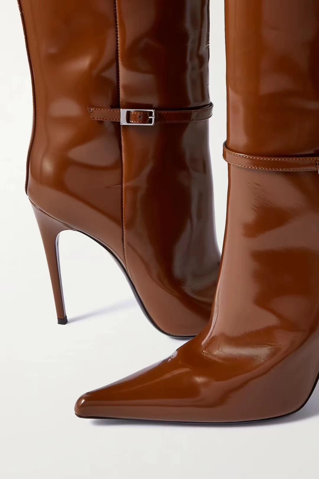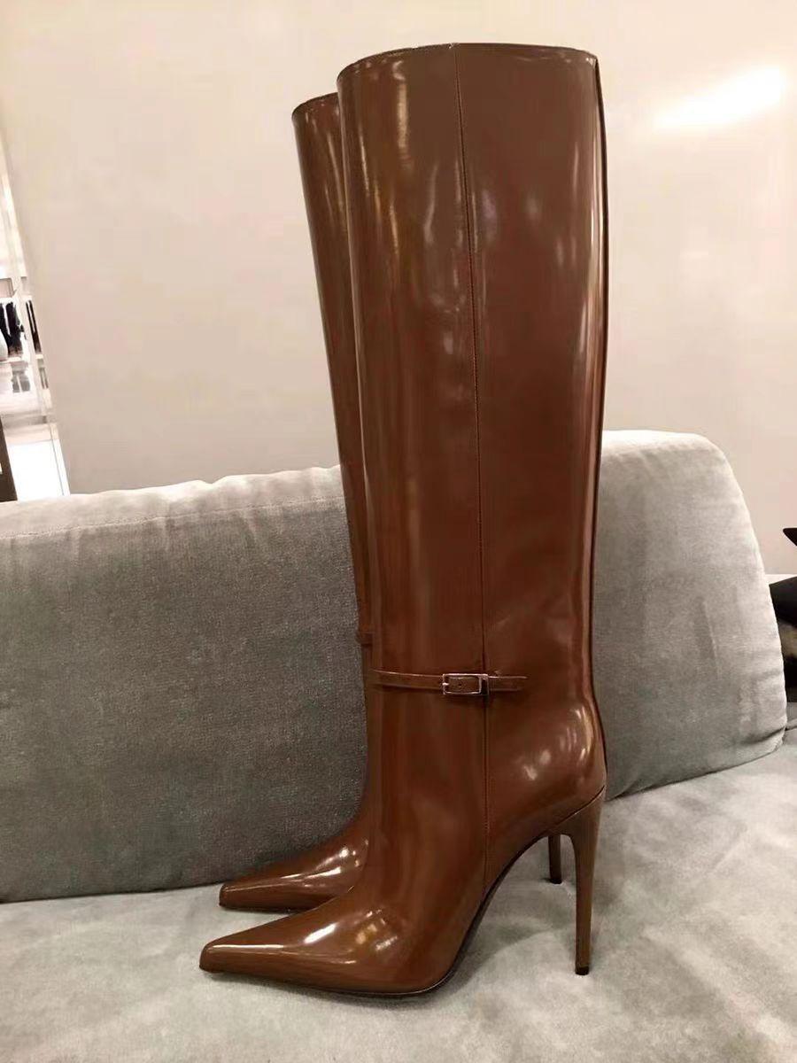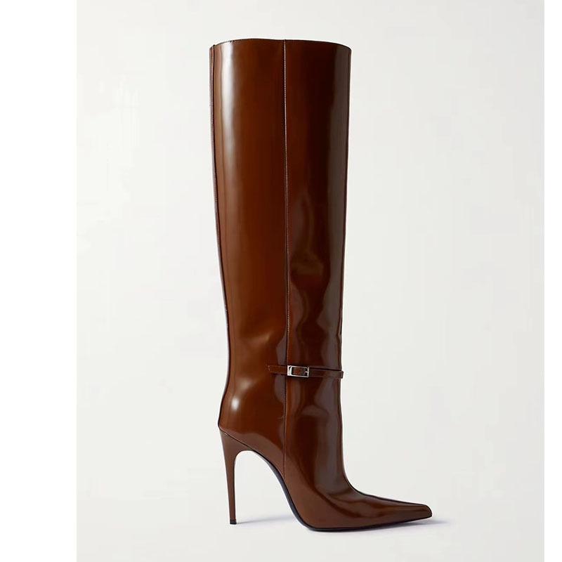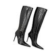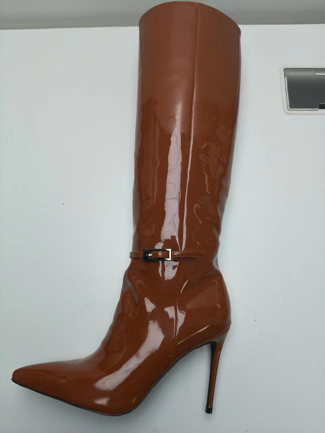 Botas de tacón alto de charol de comercio exterior 2024, nuevas, para mujer, puntiagudas, sexys, hasta la rodilla, botas largas de moda que combinan con todo.