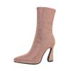 2024 comercio exterior nuevo tacón de herradura puntiagudo tacón alto impermeable mesa pedrería talla grande cremallera lateral botas de mujer