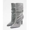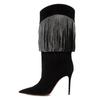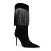 Botas de mujer de talla grande con borlas de diamantes de imitación y tacón fino puntiagudo de invierno de 2024