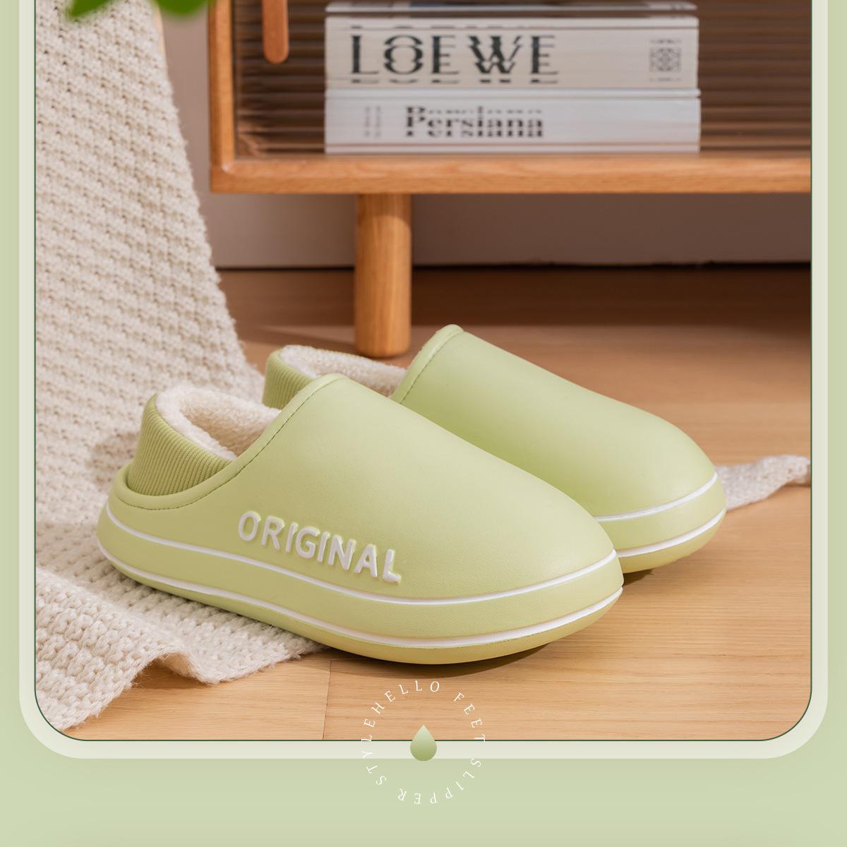 Pantuflas de Algodón Impermeables para Mujer Otoño e Invierno 2025 Nuevo Par Interior Hogar Antideslizante Bolsa de Felpa con Zapatos de Algodón para Hombre
