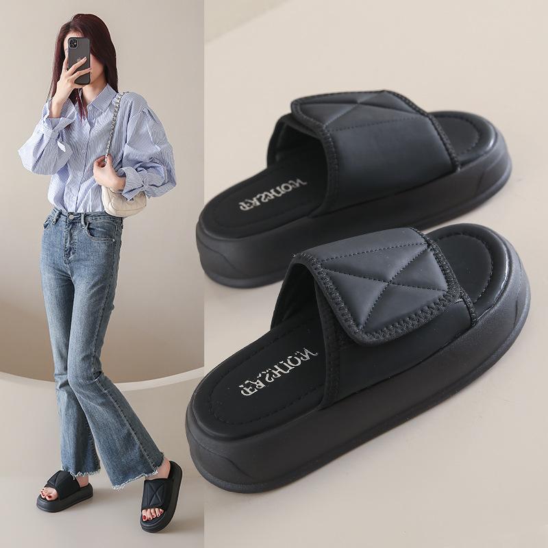 2024 Nuevas Pantuflas de Verano de Suela Gruesa para Mujer para Usar en la Calle, Sandalias de Moda con Velcro de Celebridad de Internet y Zapatos de Playa Pan
